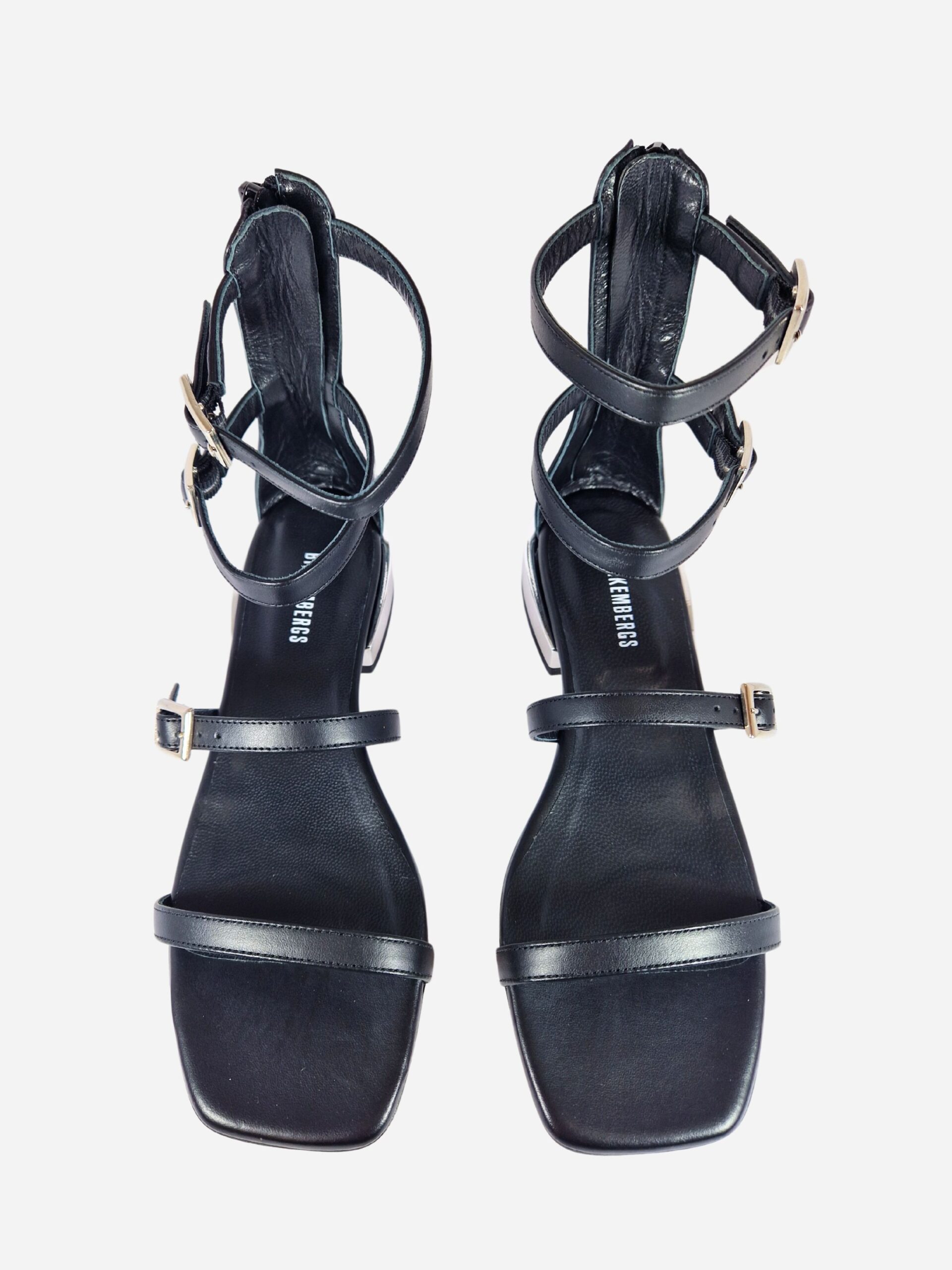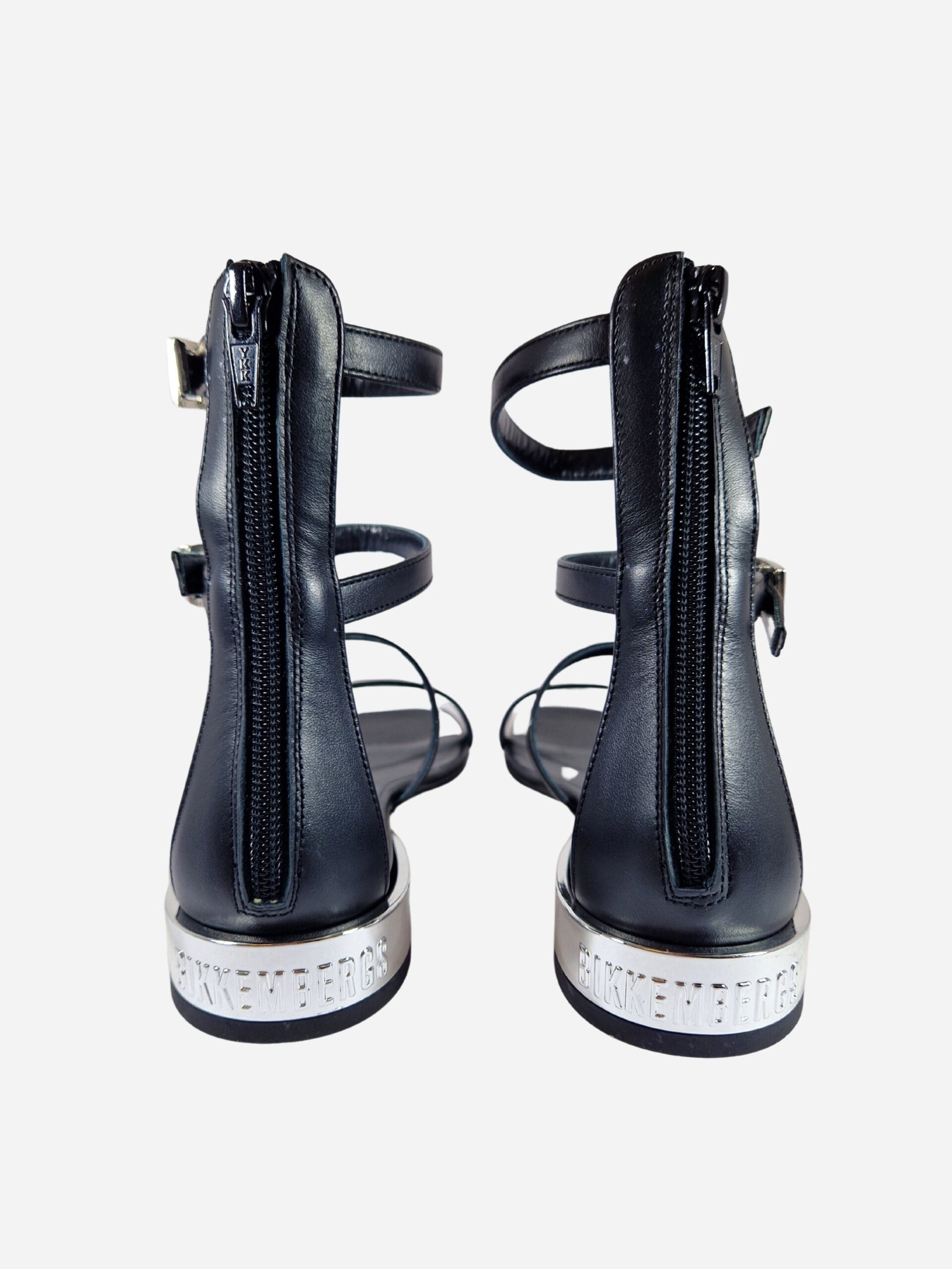 Sandali con cinturini alla schiava Bikkembergs. Calzature realizzate in vera pelle con interno in morbido cuoio. Tacchetto effetto specchio con logo.