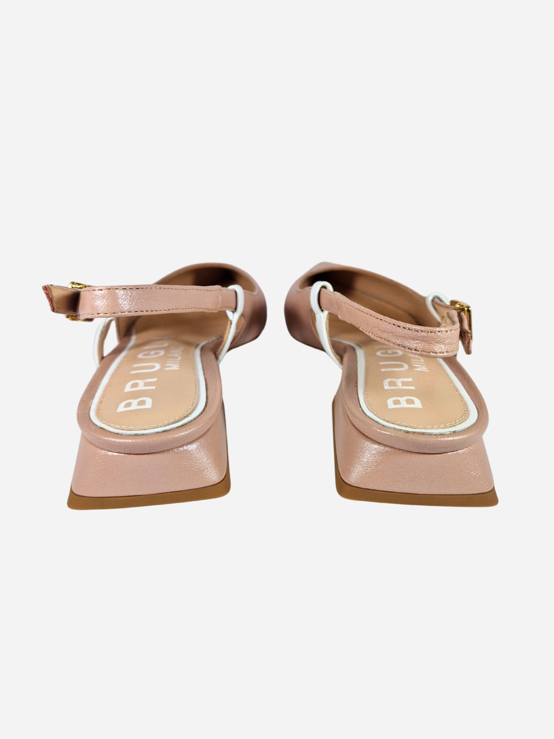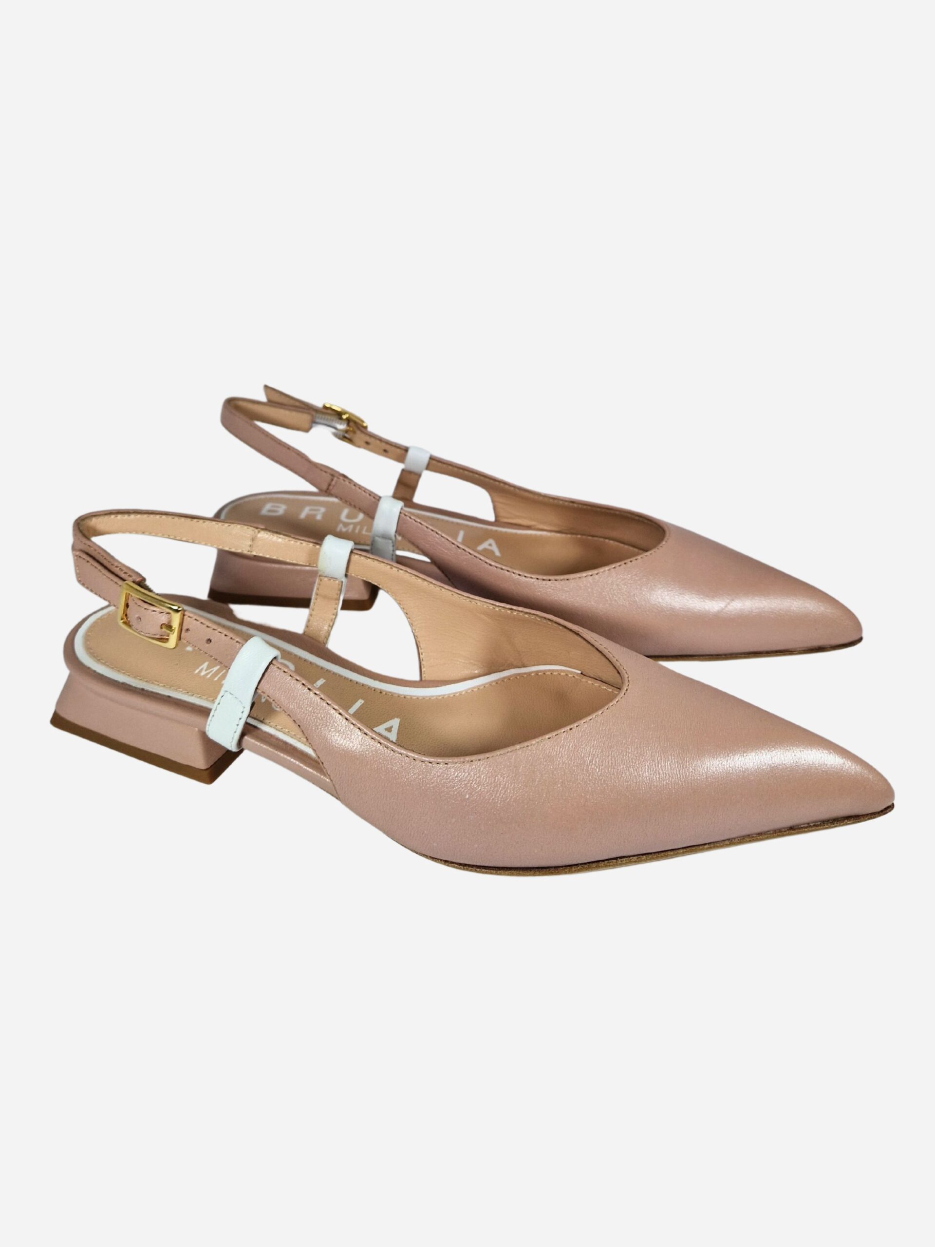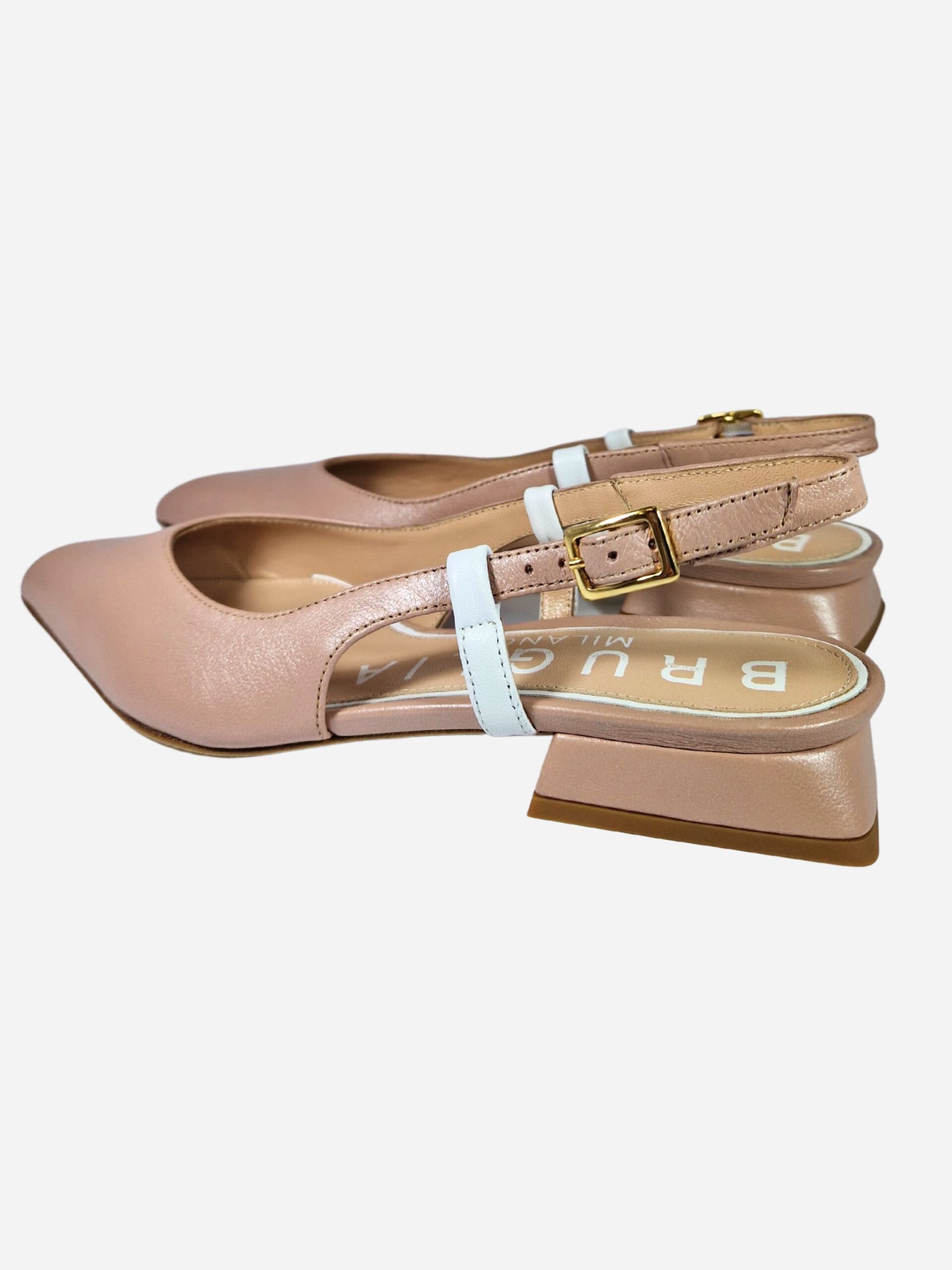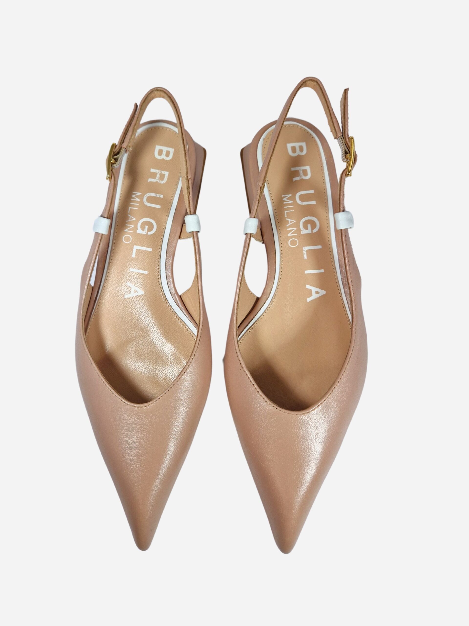 Slingback by Bruglia. Calzature realizzate in morbida nappa con fondo in cuoio e suola in materiale sintetico. Chiusura con cinturino al tallone. Made in Italy