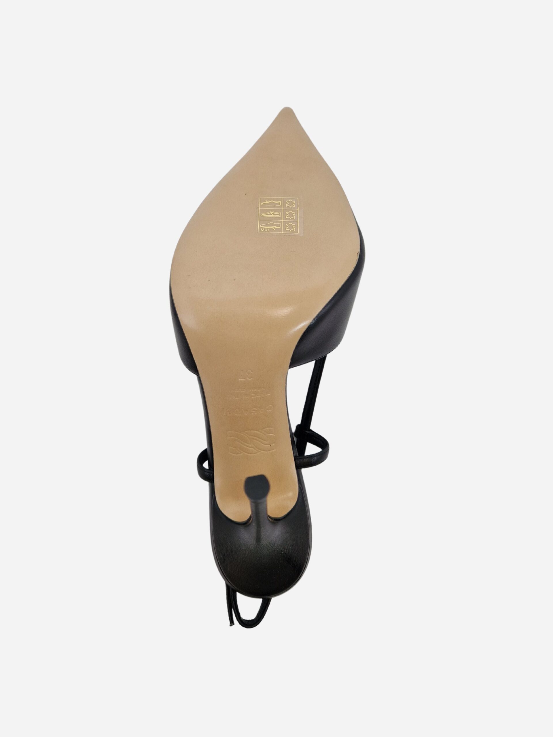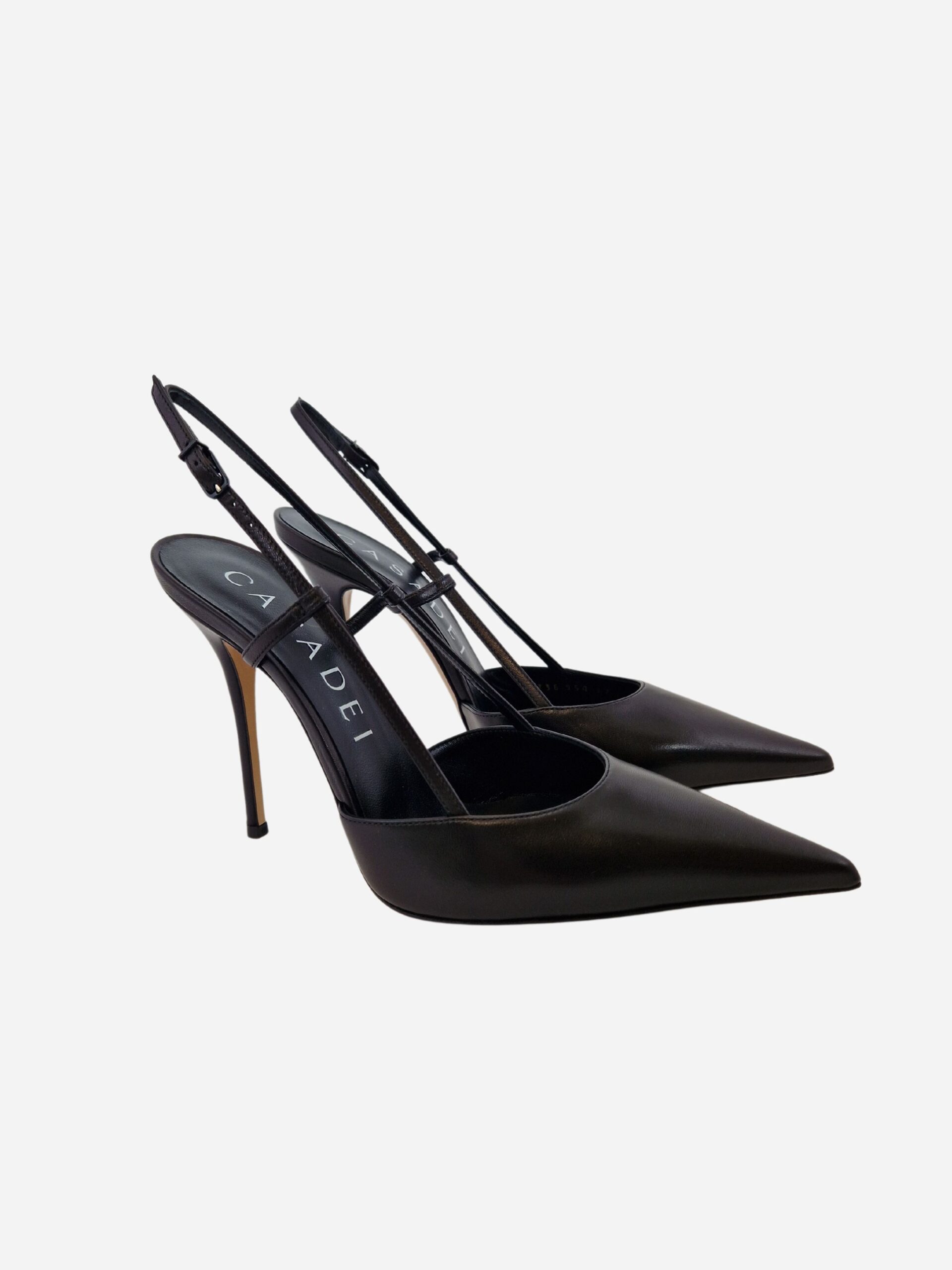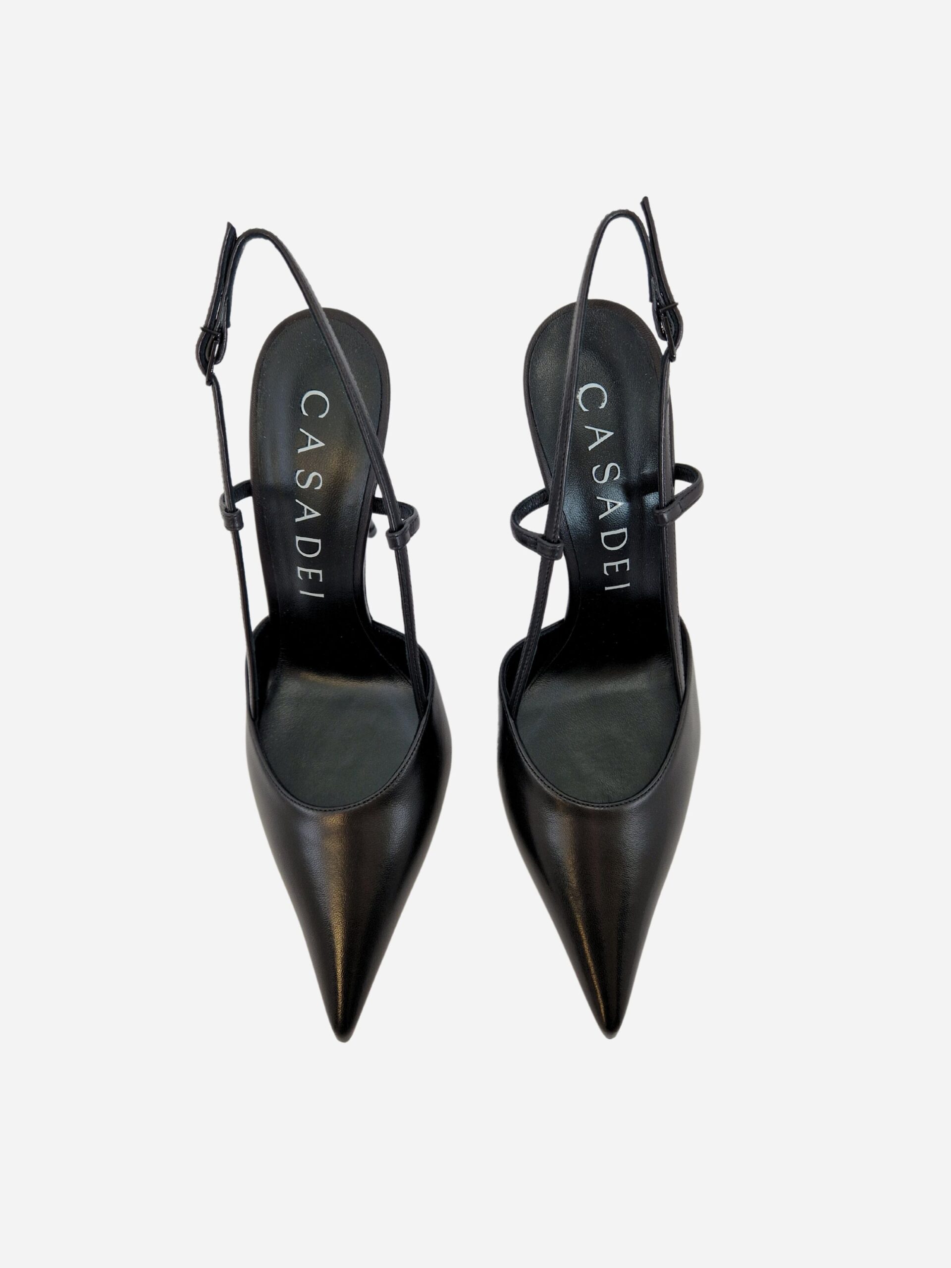 Slingback by Casadei. Scarpe realizzate n vera pelle di capretto con morbido fondo in cuoio. Chiusura con cinturino al tallone. Piccole fascette laterali che favoriscono l’aderenza alla scarpa e la comodità della calzata. Disponibile in due varianti: nero, arancione.