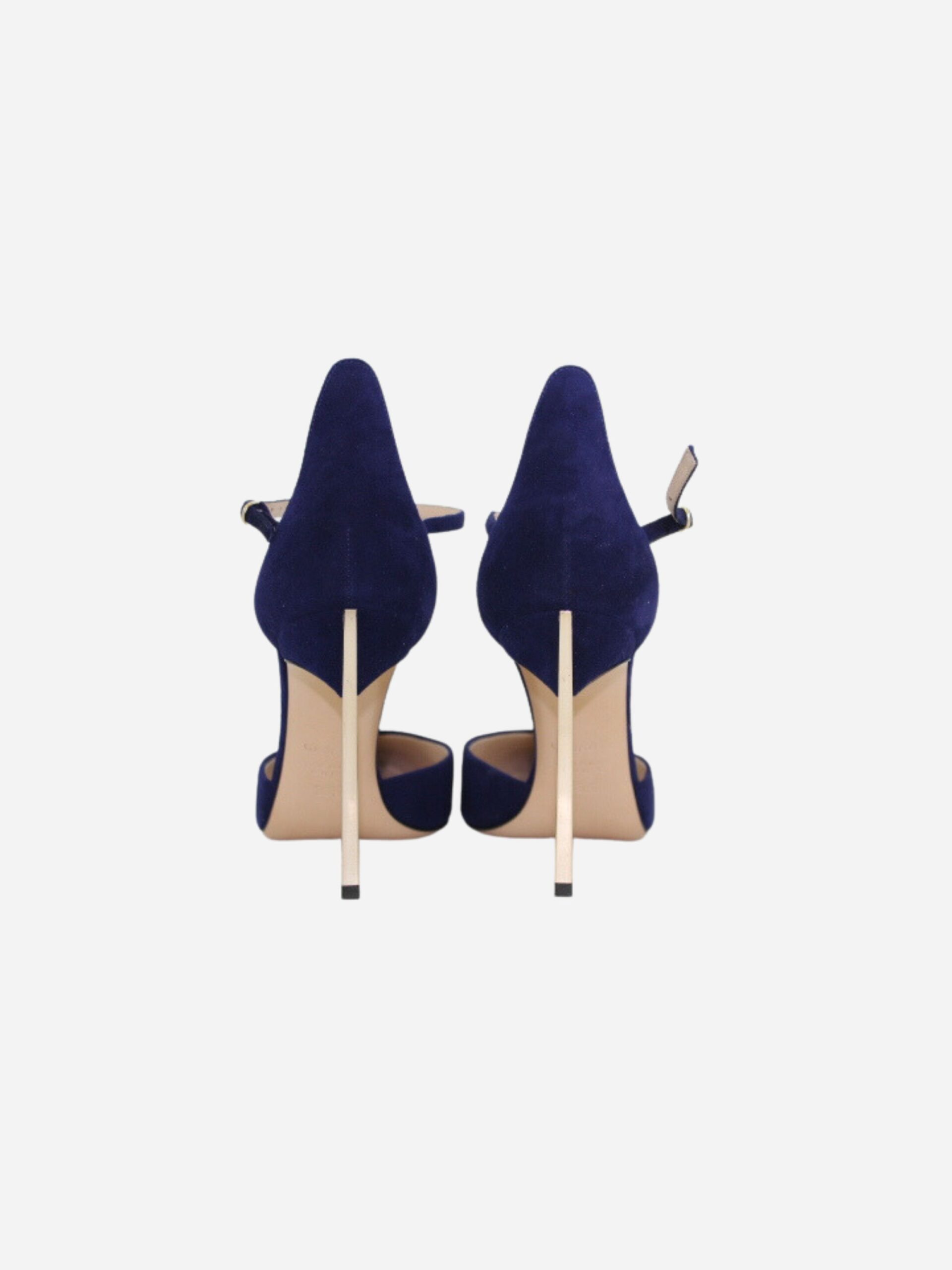 Scarpe in camoscio bluette by Casadei. Scarpe realizzate in vera pelle scamosciata con suola in cuoio. Chiusura con cinturino. Iconico tacco Blade dorato di 10 cm.