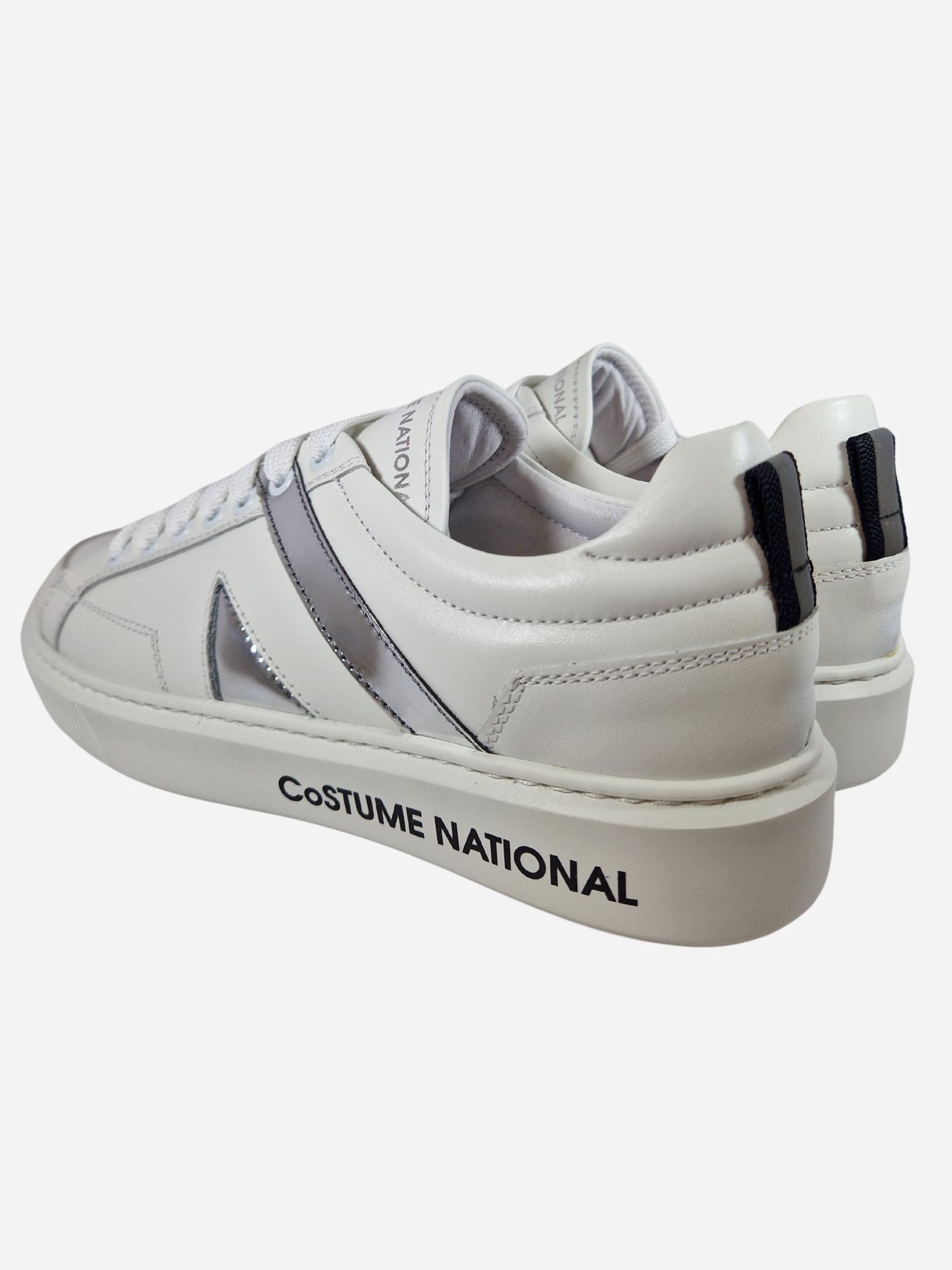 Sneakers 16045 by Costume National. Scarpe dalla linee classiche e versatili, realizzate in pelle con suola in gomma e caratterizzate da decorazioni laterale argentate. Chiusura con lacci.