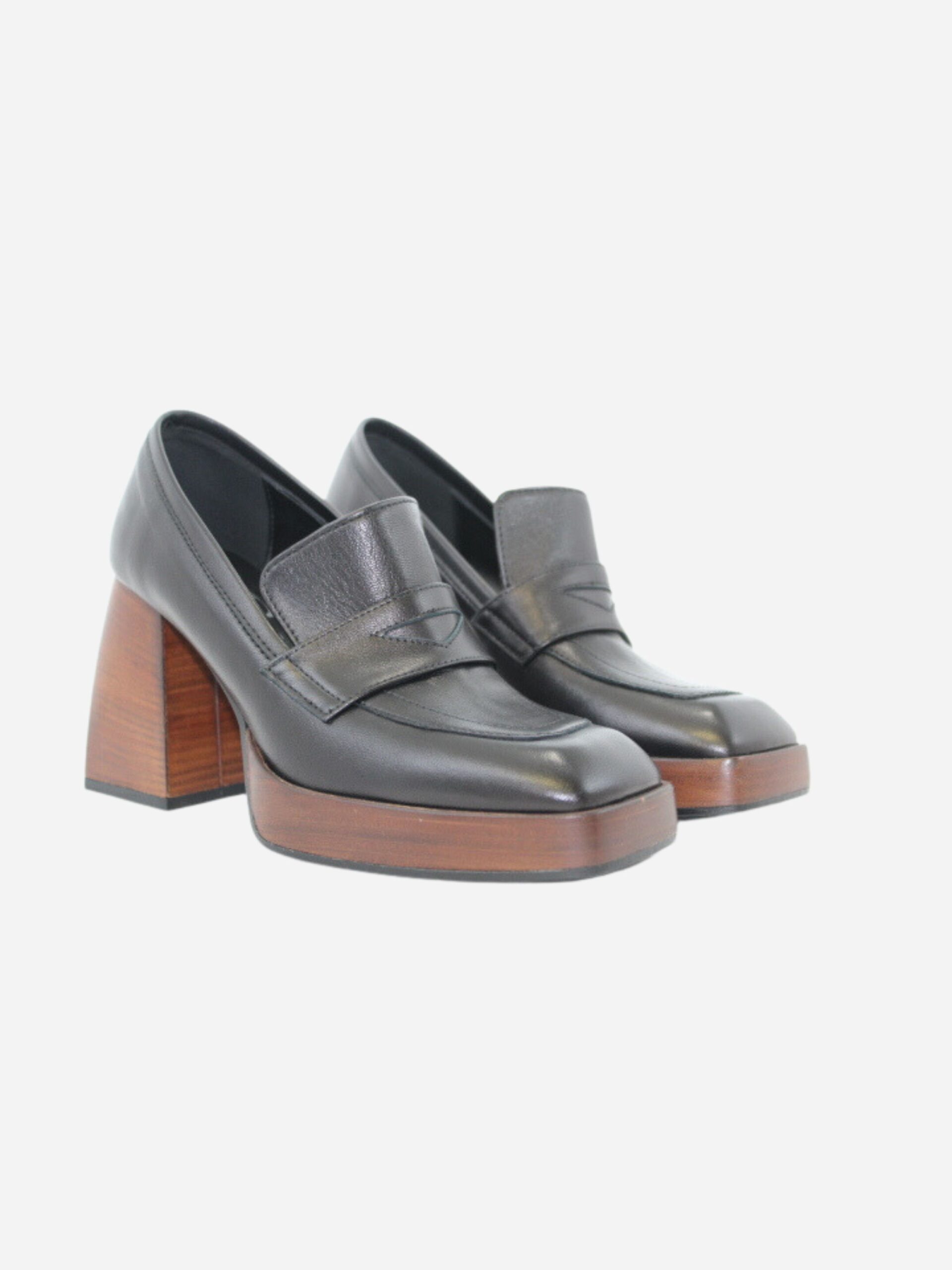 Mocassino con plateau by Divine Follie. Scarpe realizate in vera pelle. Tacco largo di 9 cm e plateau di 2 cm. Suola in materiale sintetico. Made in Italy.