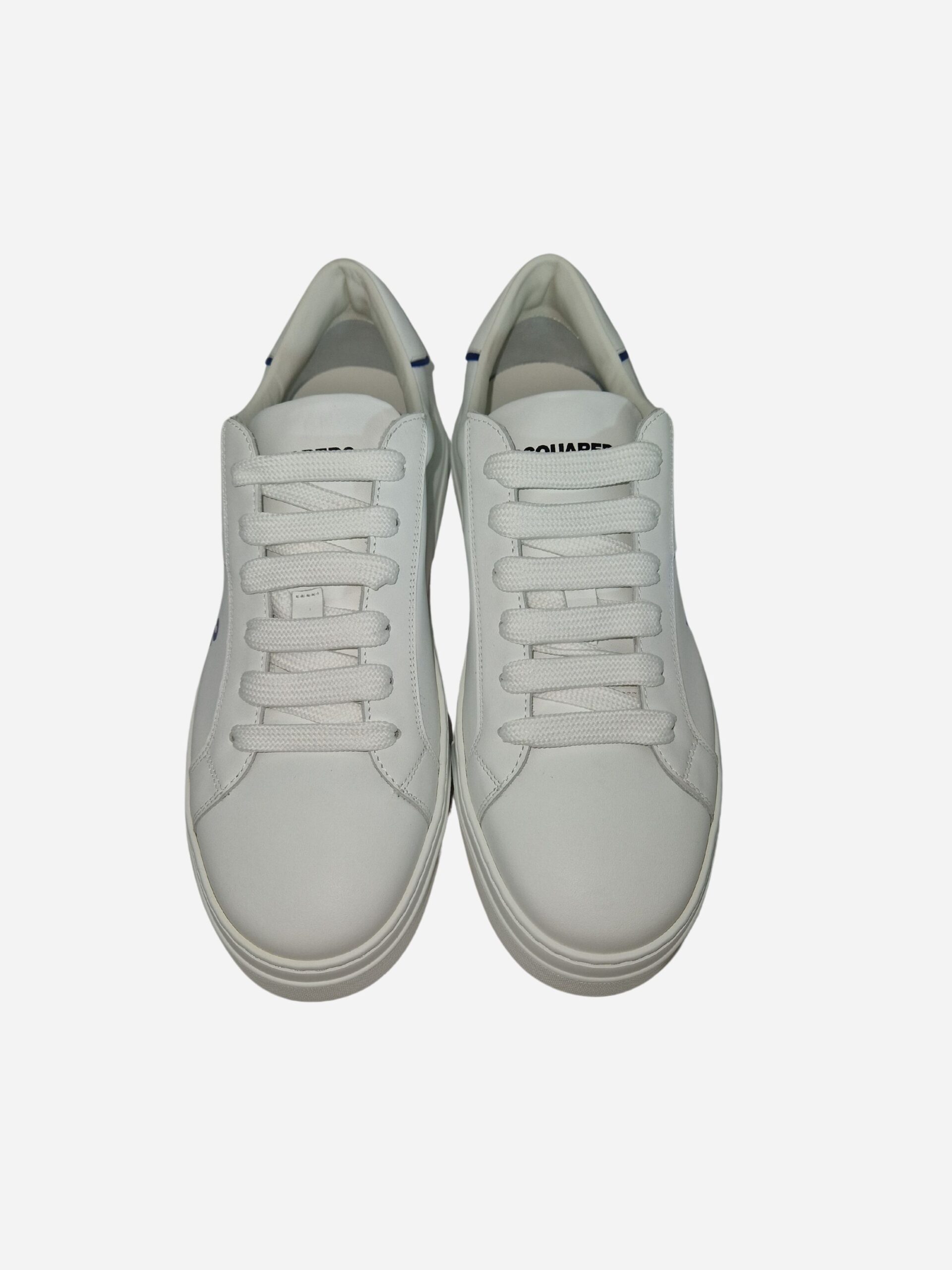 Sneakers Bumper by DSQUARED2. Scarpe realizzate in pelle di vitello con fodera interna misto pelle e poliestere. Suola in gomma con lettering “DSQUARED2” in rilievo sul retro. Dettaglio logo a contrasto blu stampato sul lato. Chiusura con lacci.