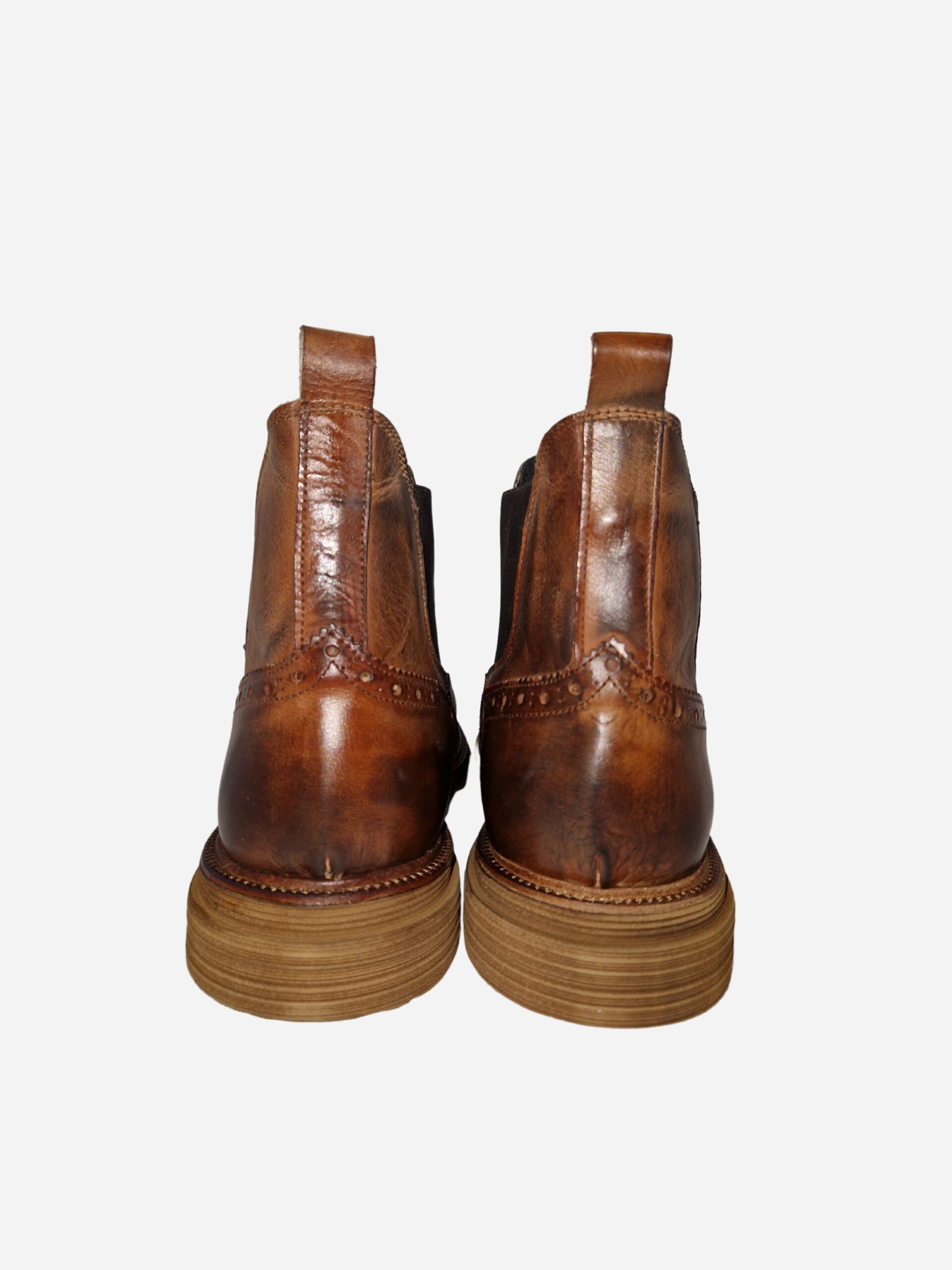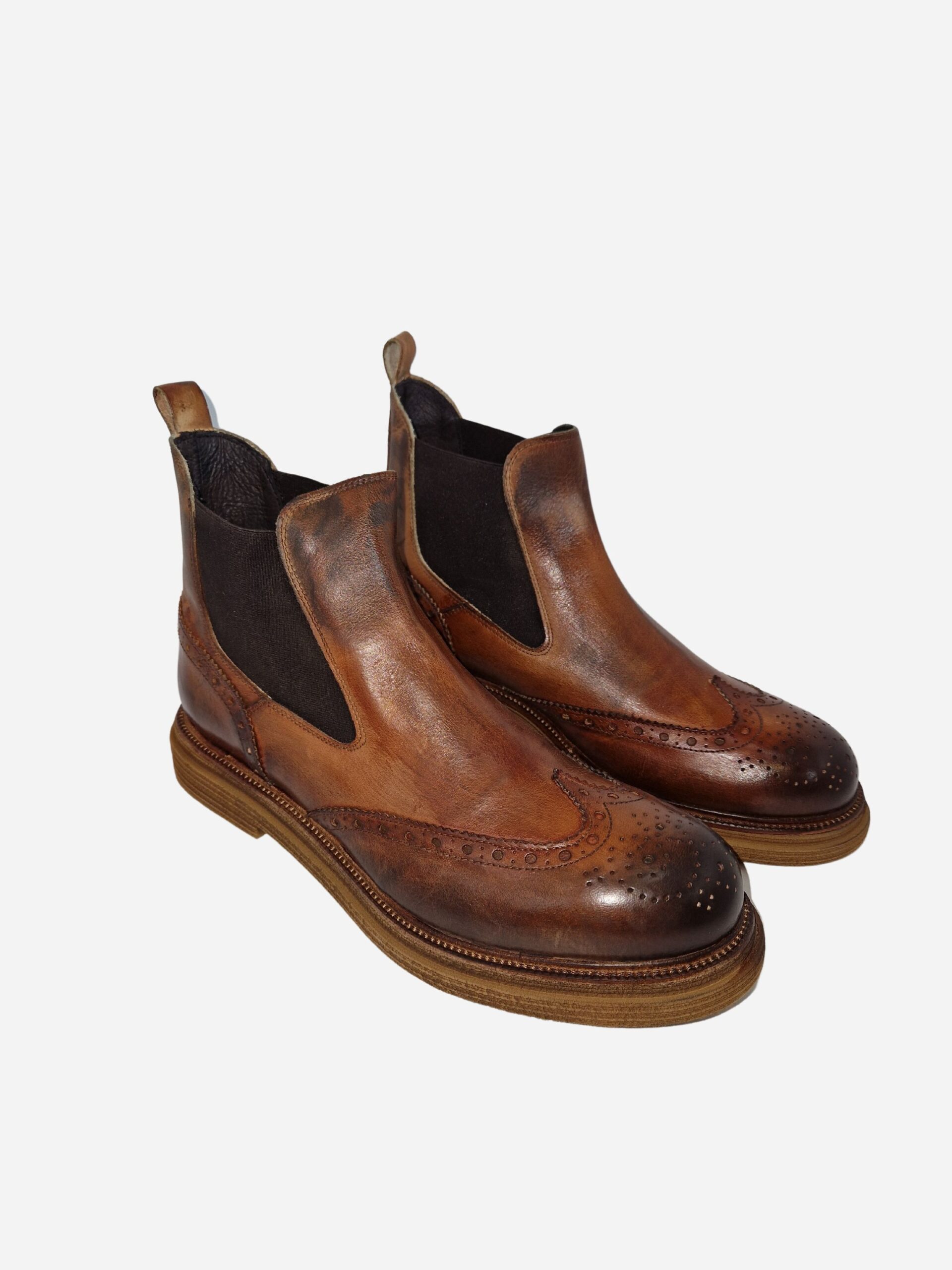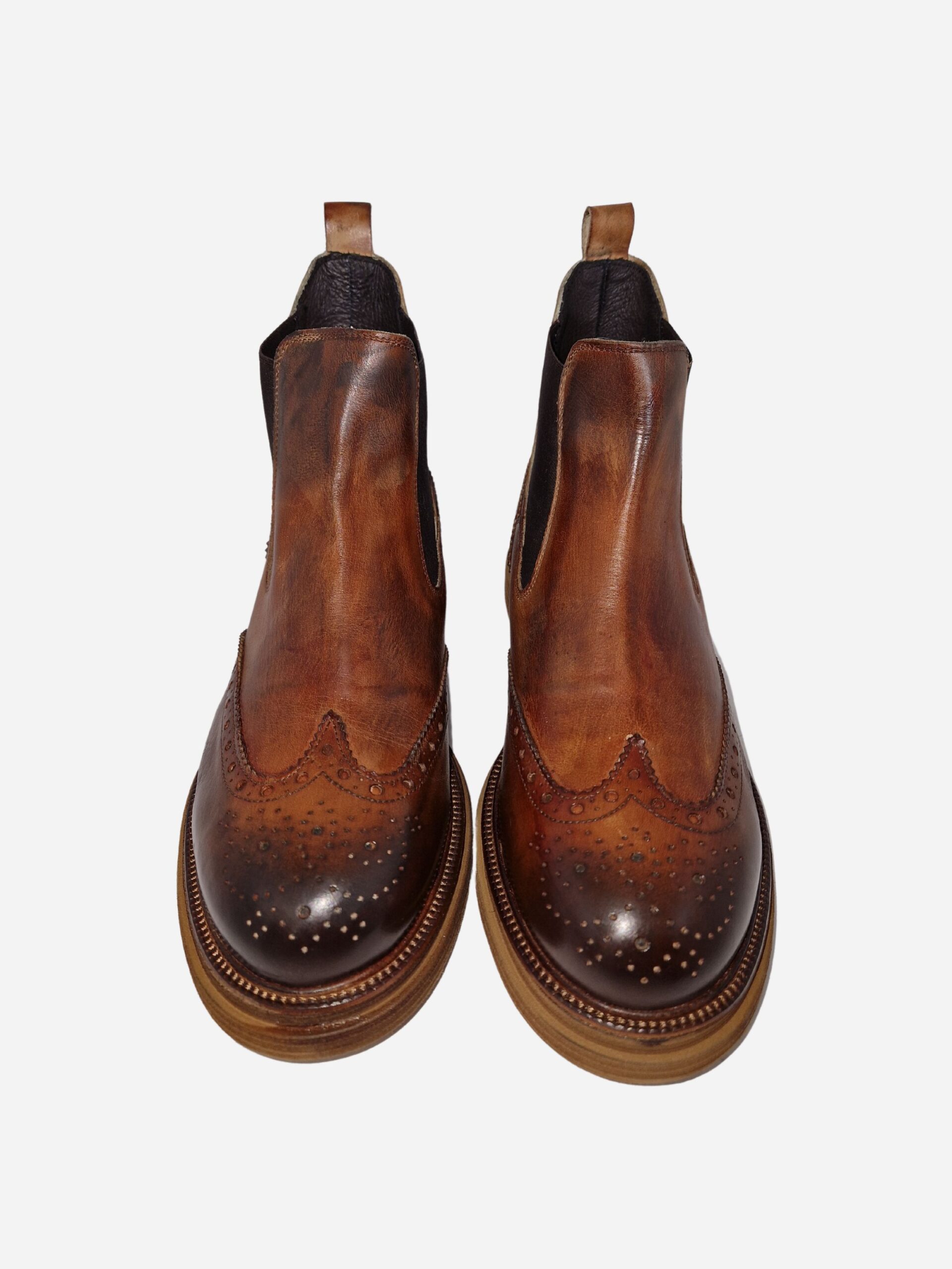 Beatles by Exton. Scarpe realizzate in vera pelle color cuoio con fondo extra-light. Motivo decorativo brogue sulla punta.