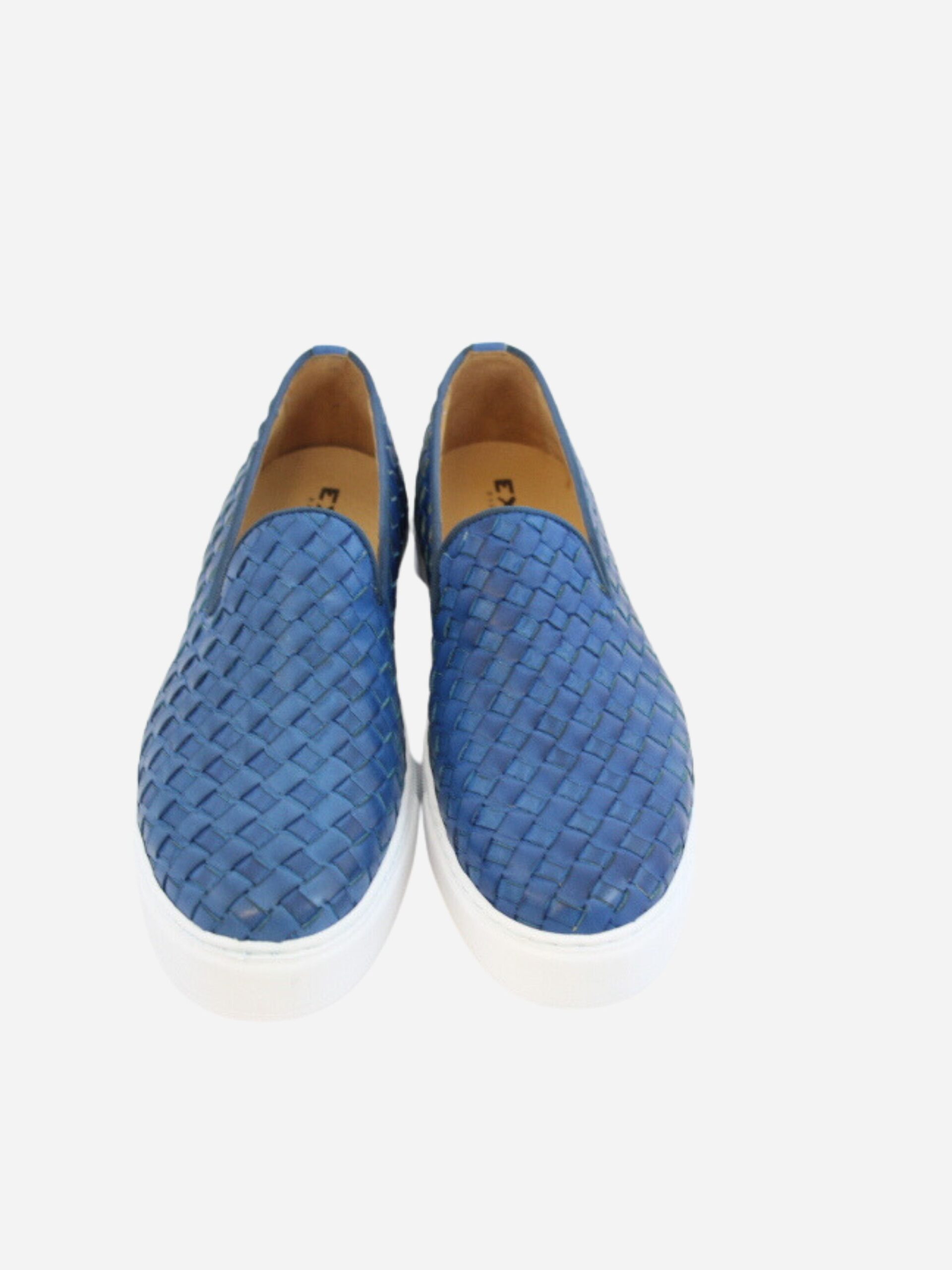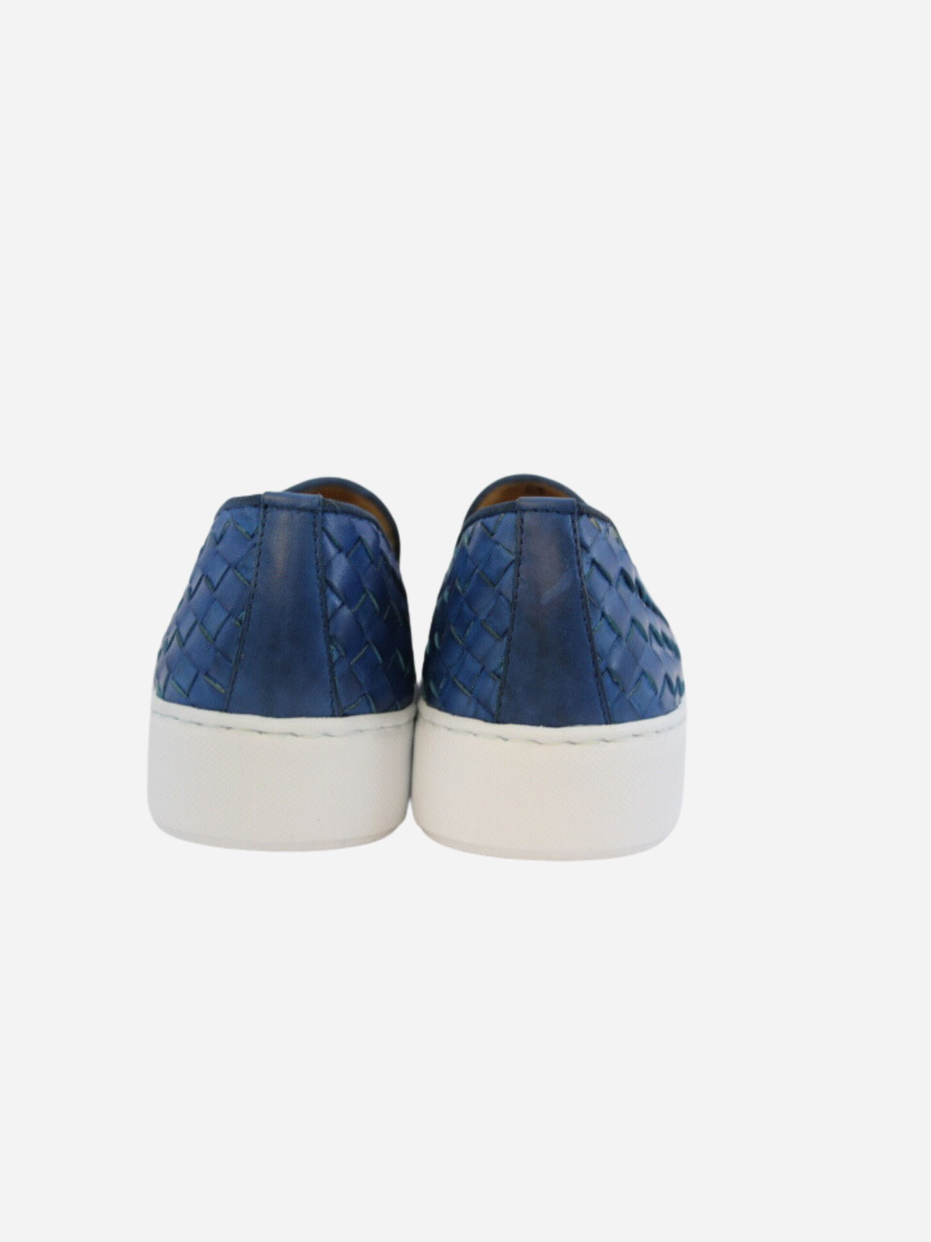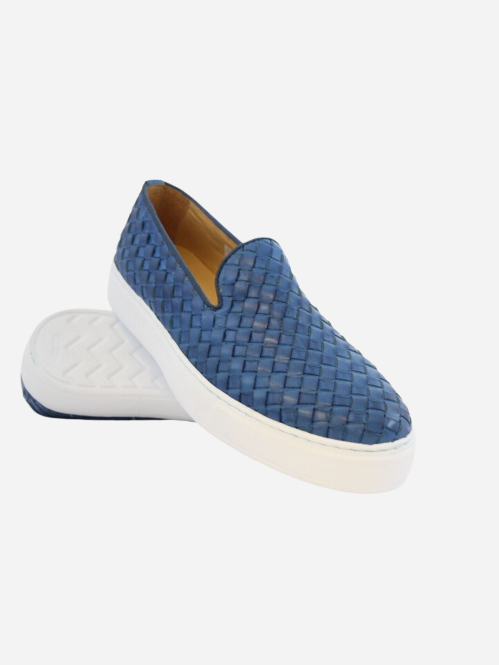 Sneakers slip on in pelle intrecciata blu. Suola in gomma.