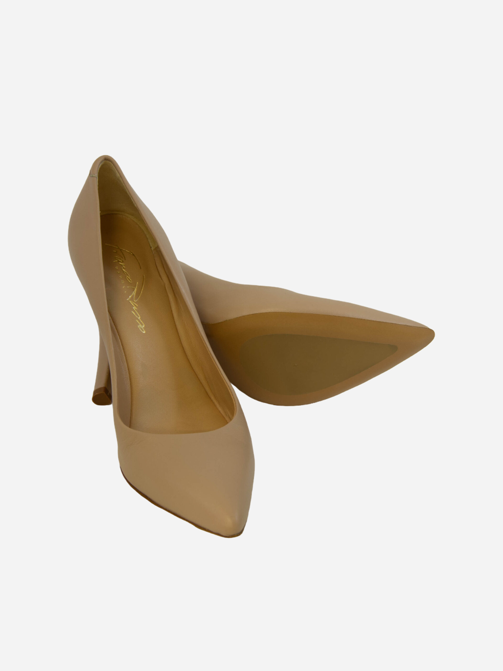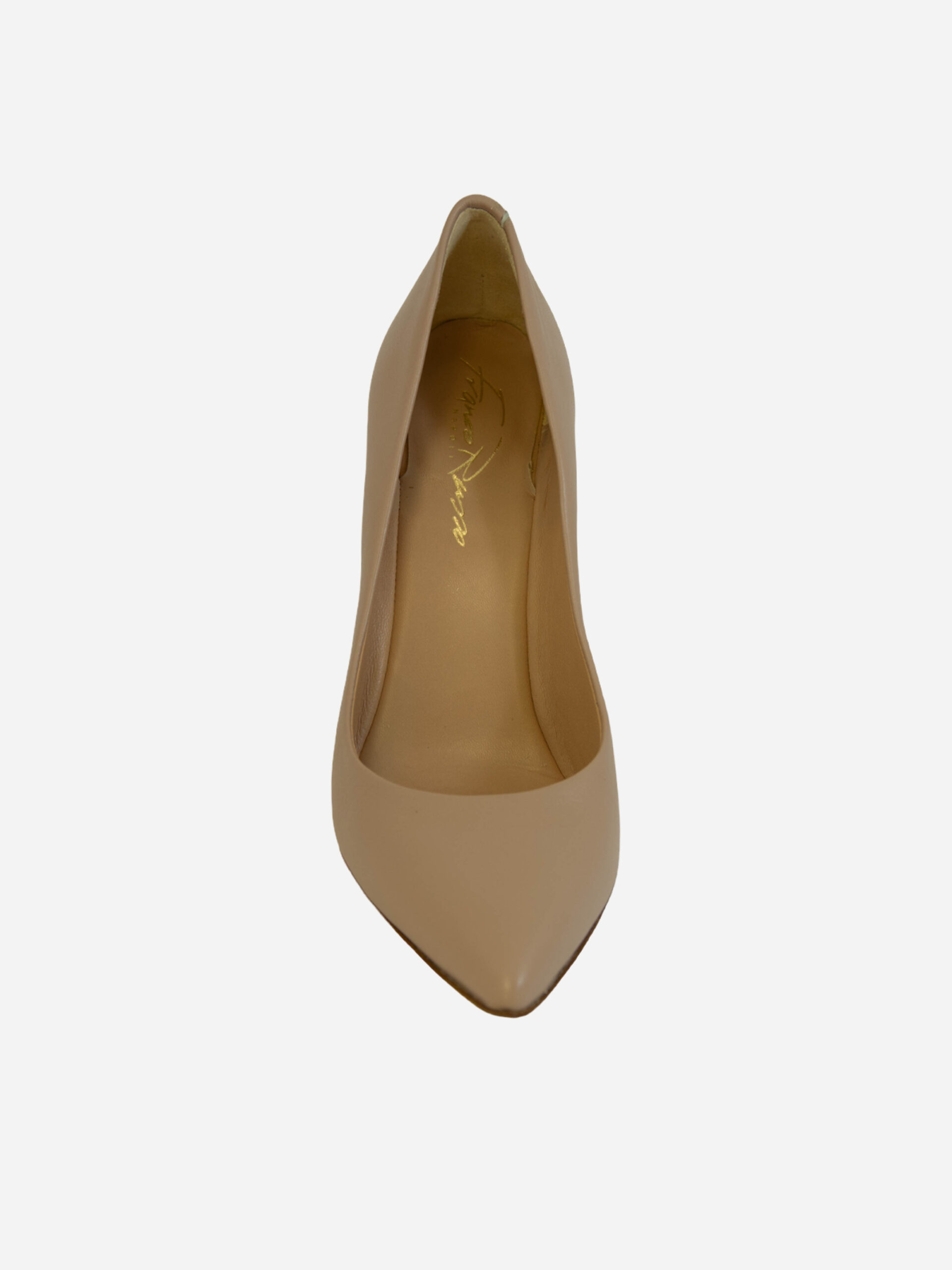 Décolléte 2001SS di Franco Russo. Décolléte in pelle, a punta, con tacco a stiletto color nude che slanciano la silhouette. Modello senza tempo ed elegante, perfette in ogni occasione.