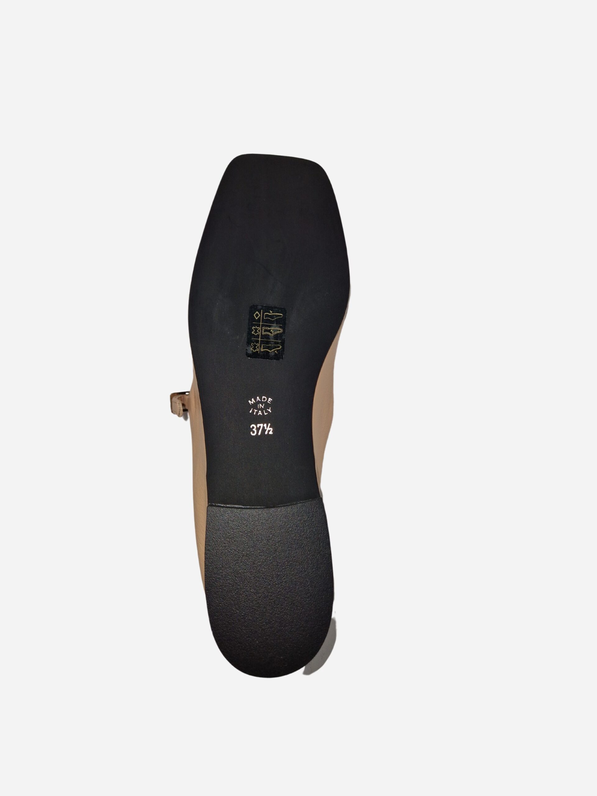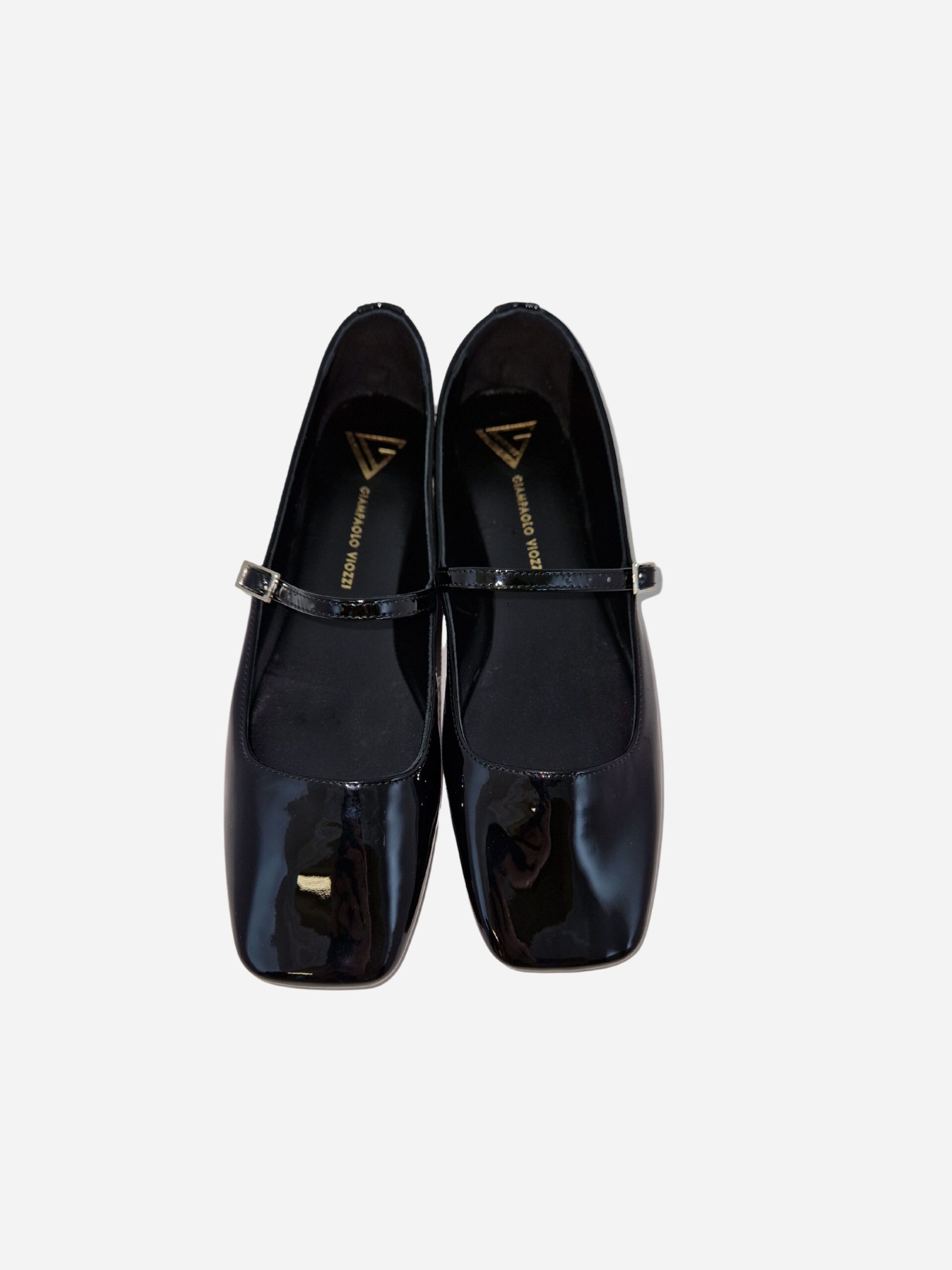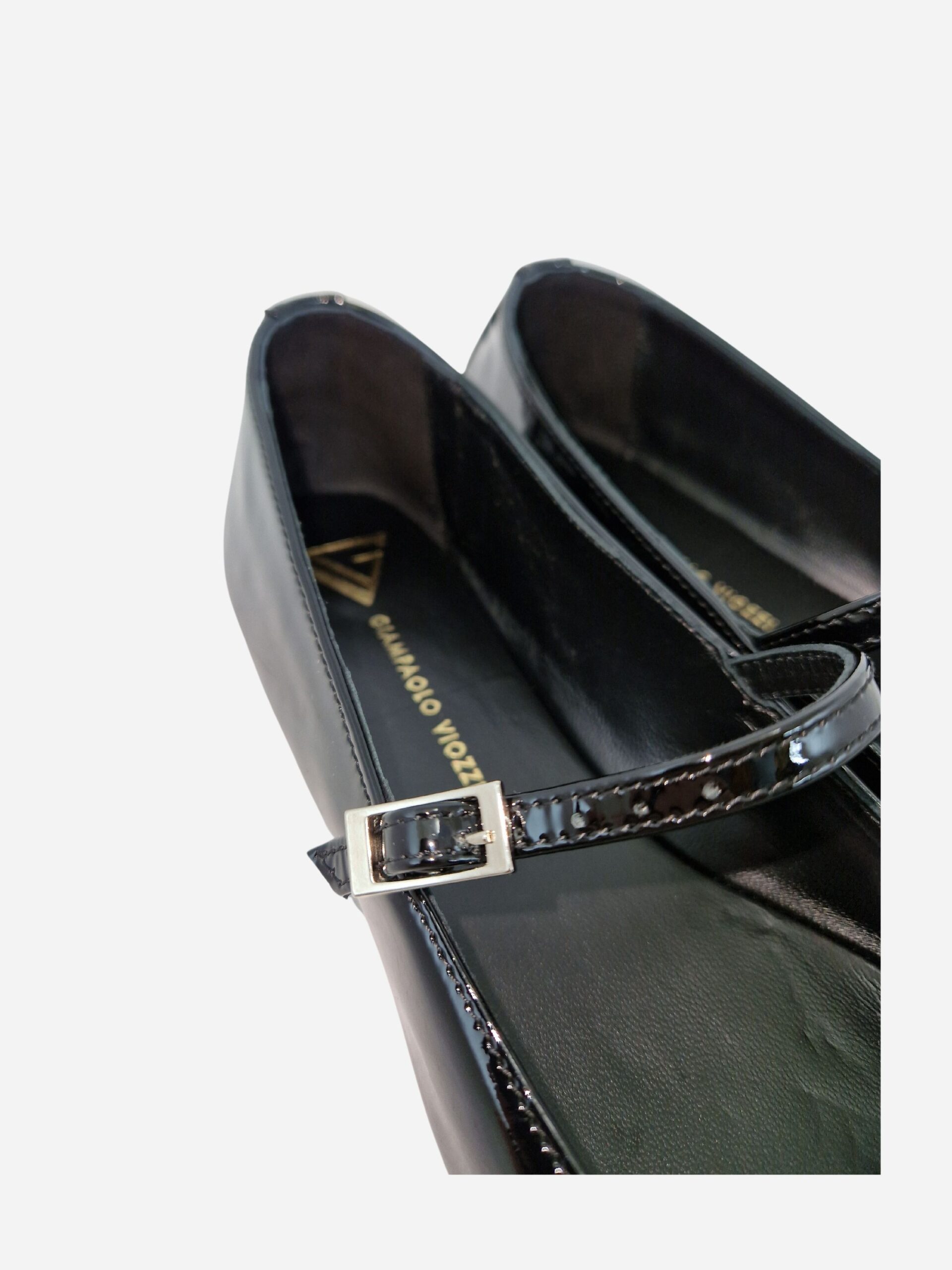 Ballerina flat by Giampaolo Viozzi. Scarpe realizzate in vera pelle e disponibili in tre varianti: pelle nera, pelle nera verniciata e pelle nude. Chiusura con cinturino. Punta squadrata. Suola in materiale sintetico pregiato.