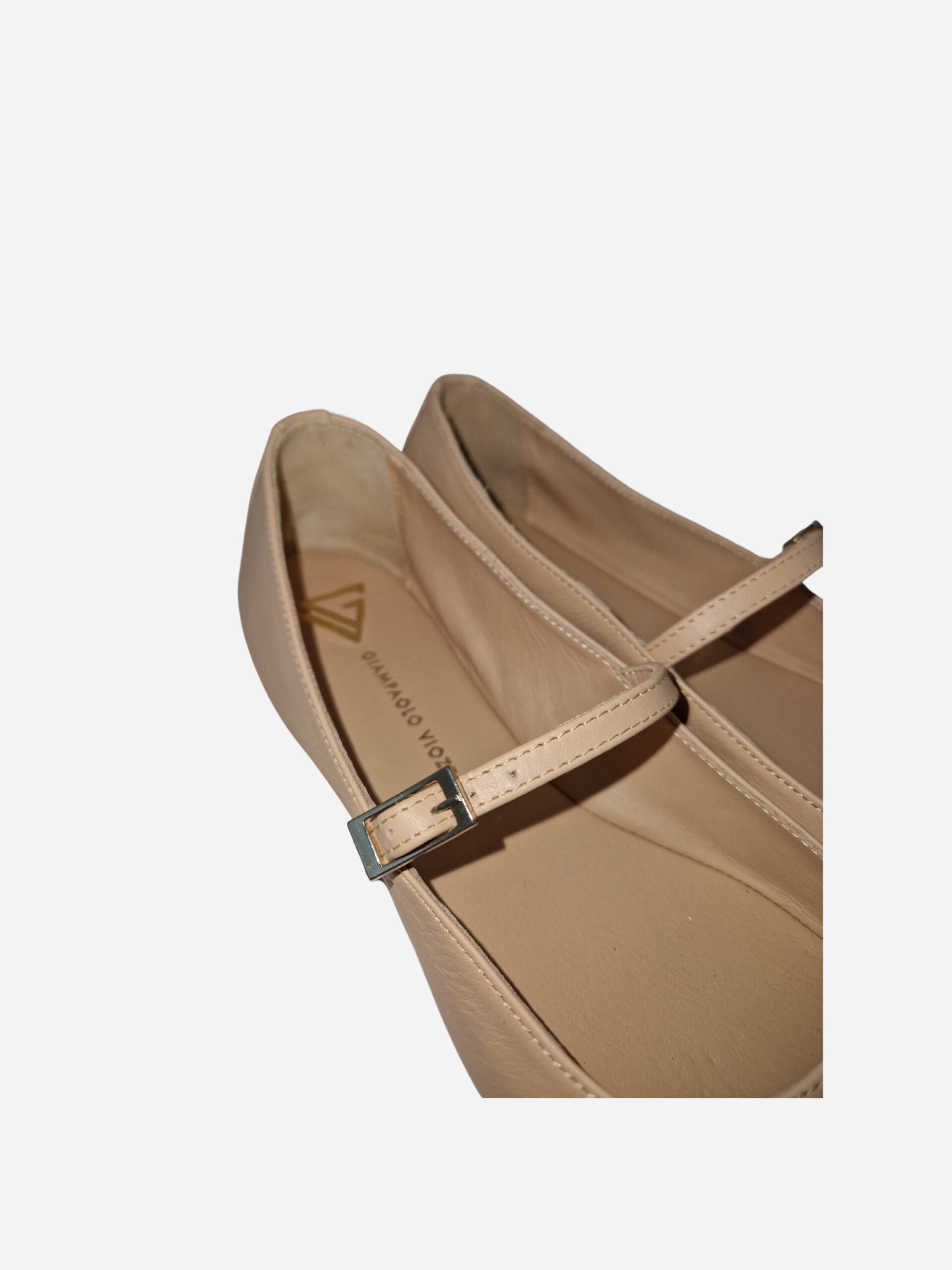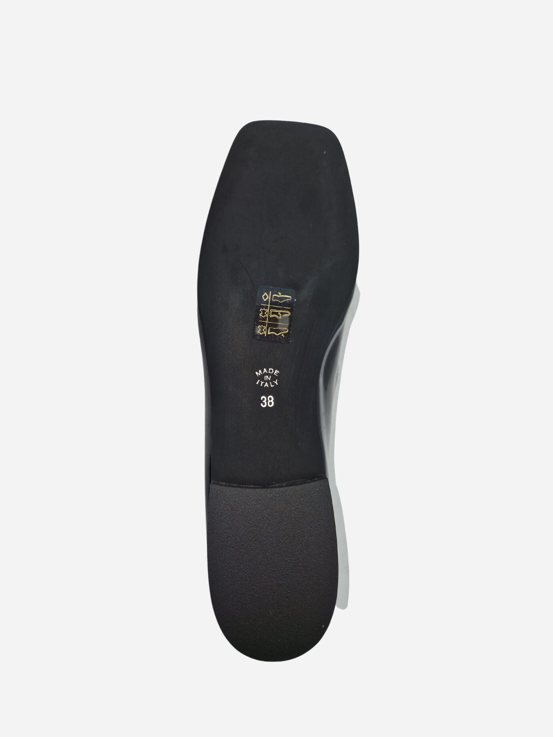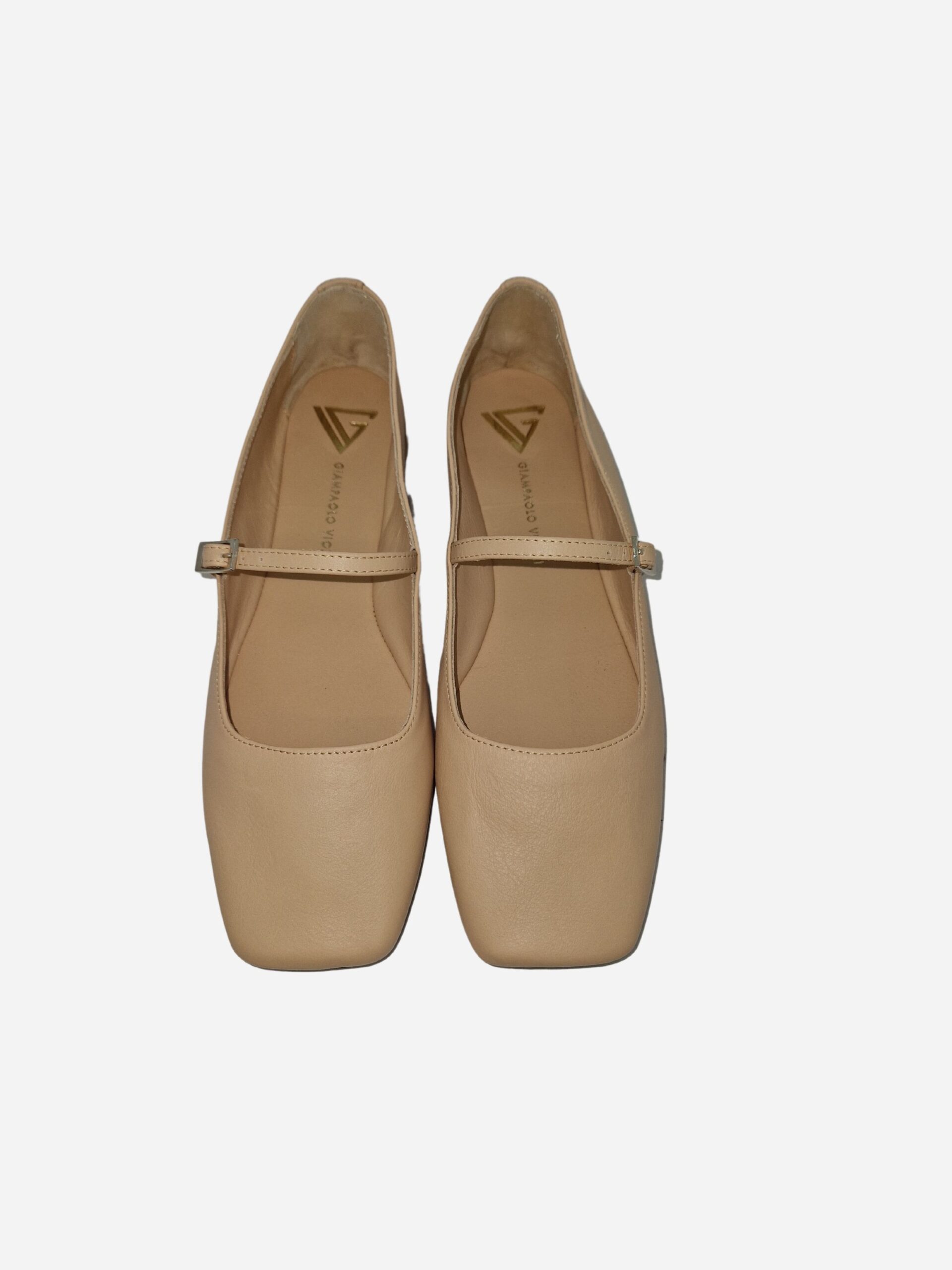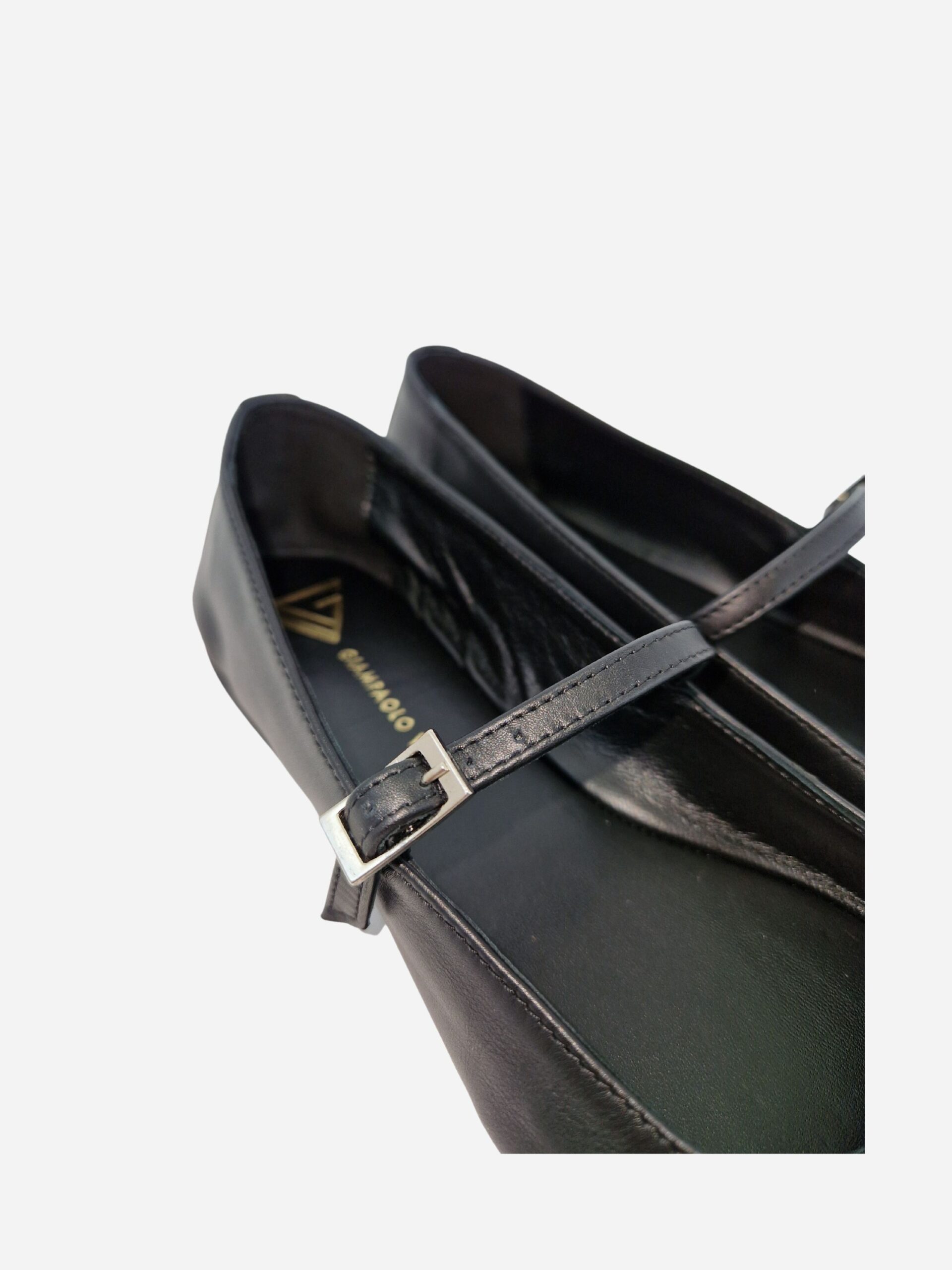 Ballerina flat by Giampaolo Viozzi. Scarpe realizzate in vera pelle e disponibili in tre varianti: pelle nera, pelle nera verniciata e pelle nude. Chiusura con cinturino. Punta squadrata. Suola in materiale sintetico pregiato.