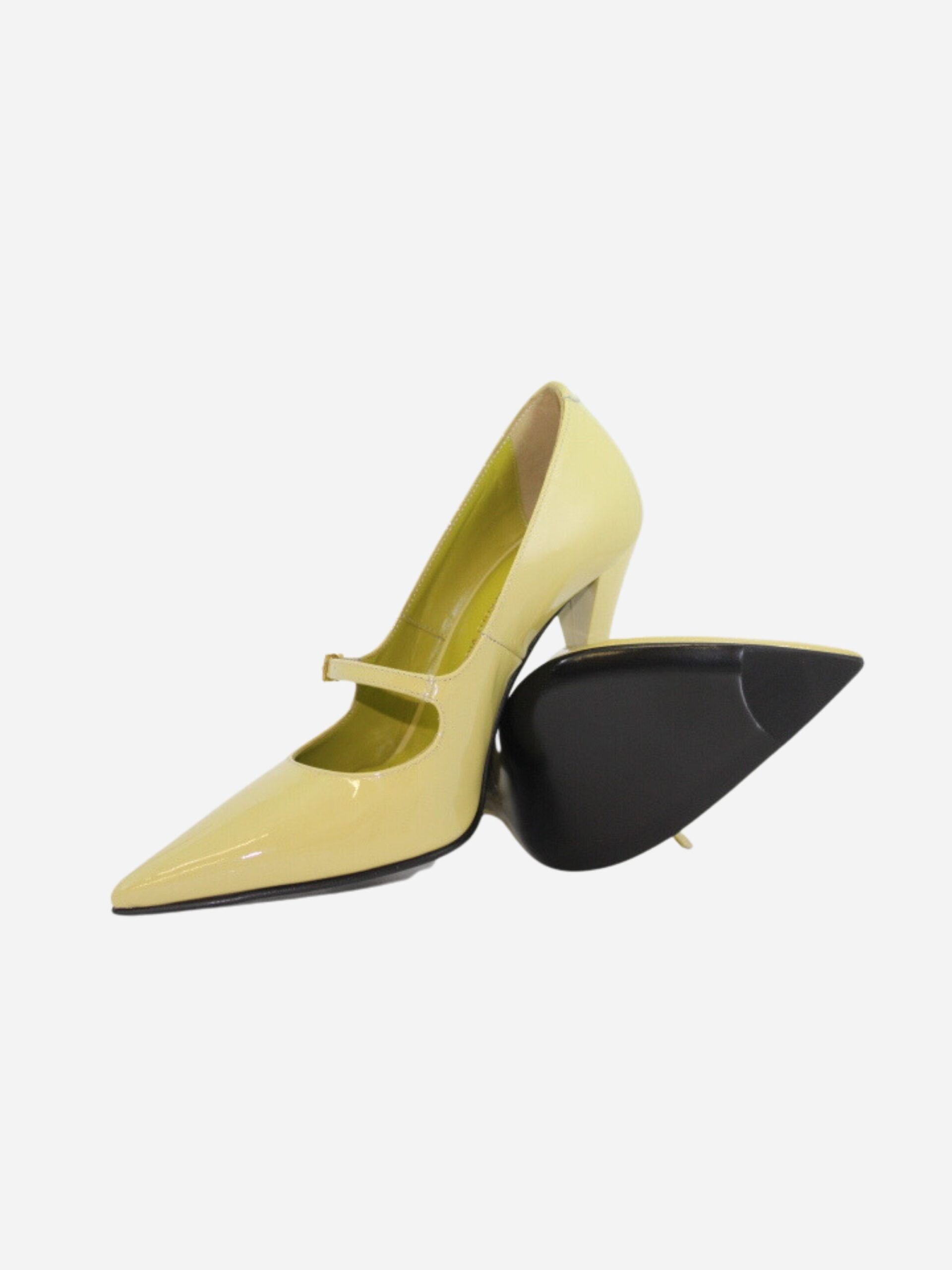 Décolleté by Giampaolo Viozzi. Scarpe realizzate in vera pelle verniciata nella variante verde acido con fondo in cuoio e suola in materiale sintetico pregiato. Il cinturino all’altezza del collo del piede conferisce maggiore stabilità e aderenza alla scarpa. Tacco leggermente concavo di 10 cm.