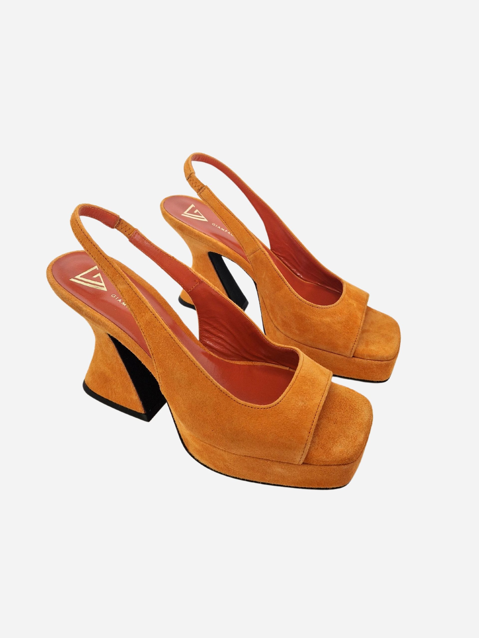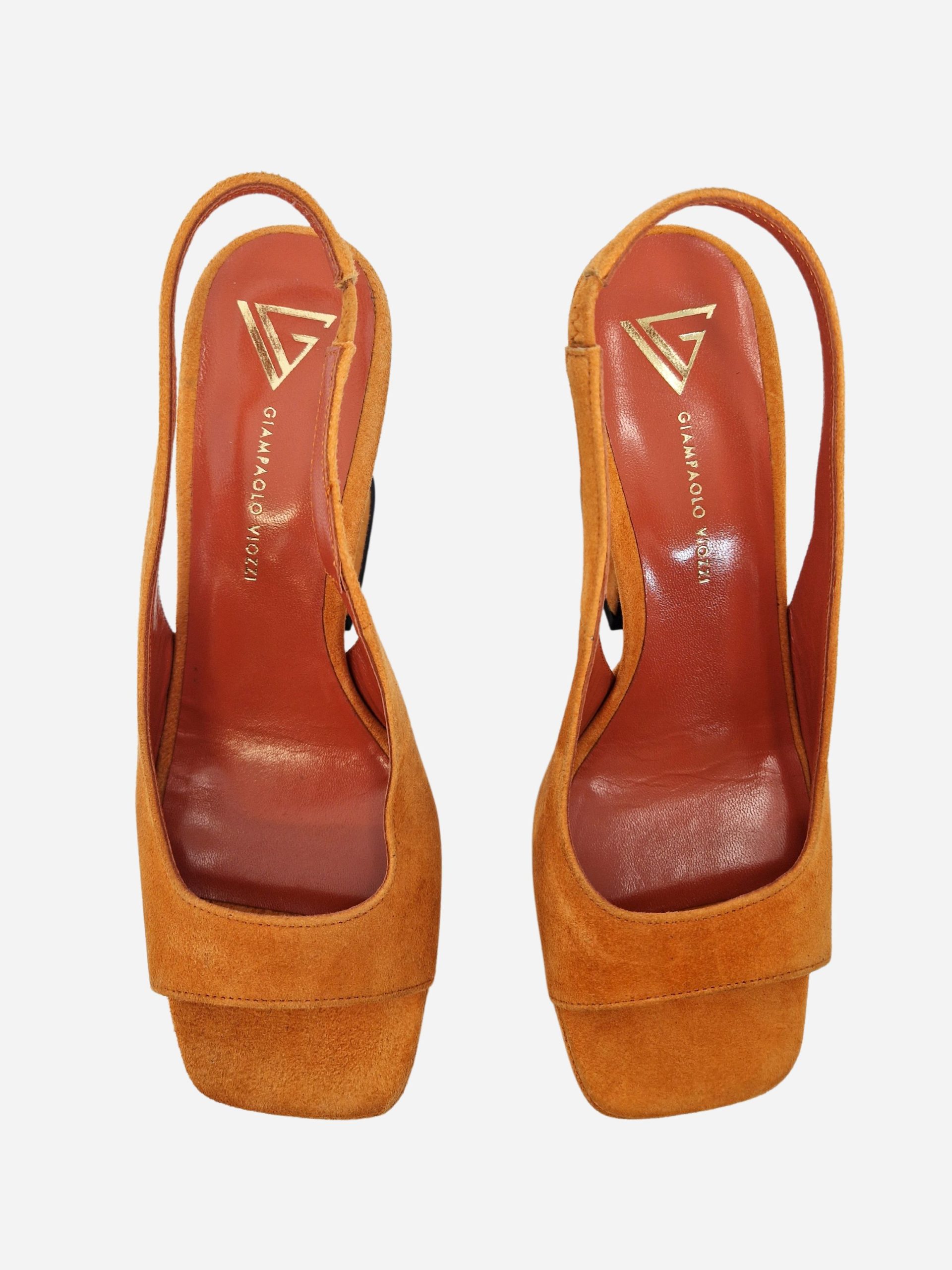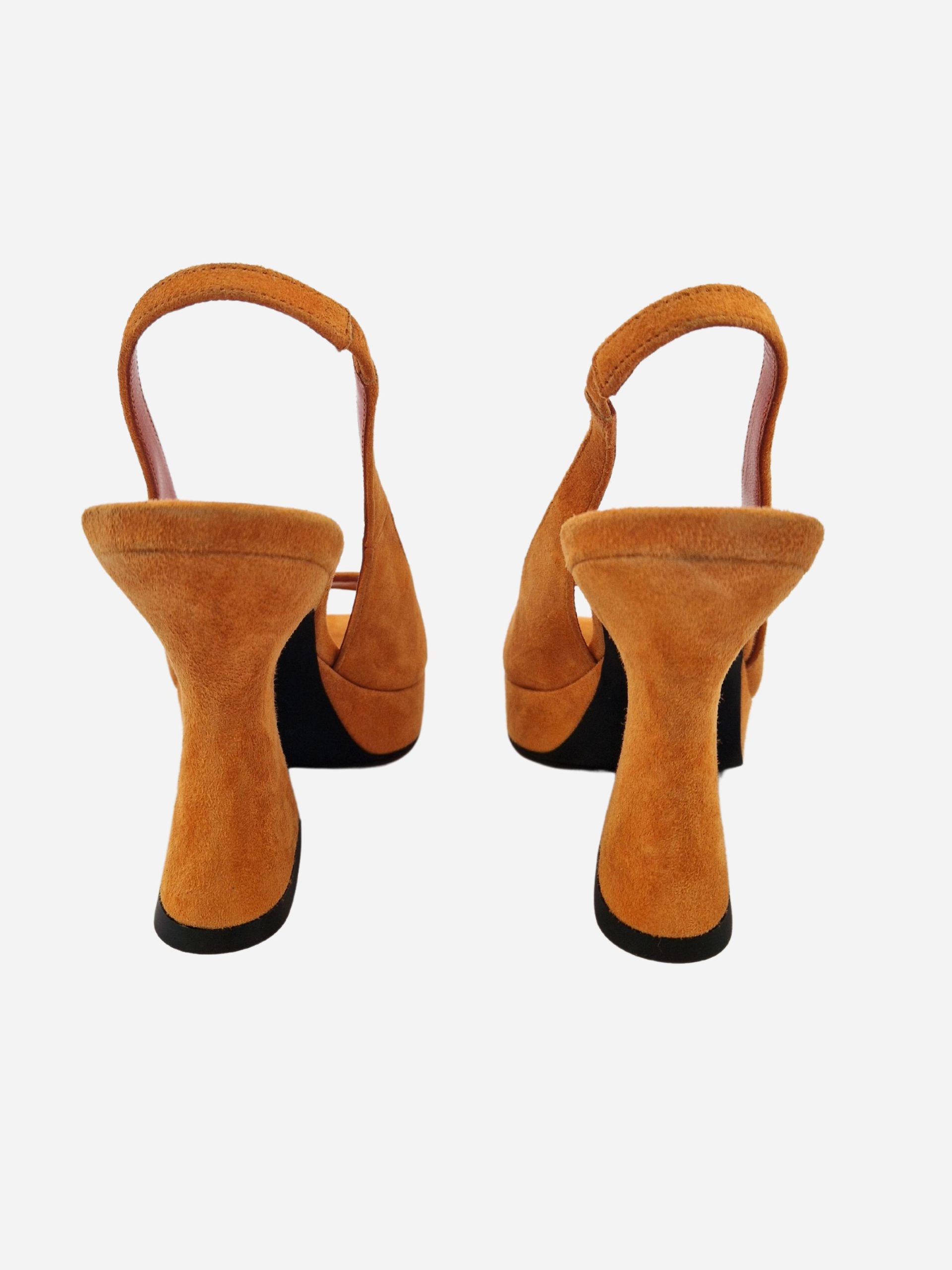 Sandali by Giampaolo Viozzi. Scarpe realizzate in vera pelle scamosciata, con morbido fondo in cuoio e suola in materiale sintetico. Elastico al tallone. Tacco a rocchetto di 10 cm.