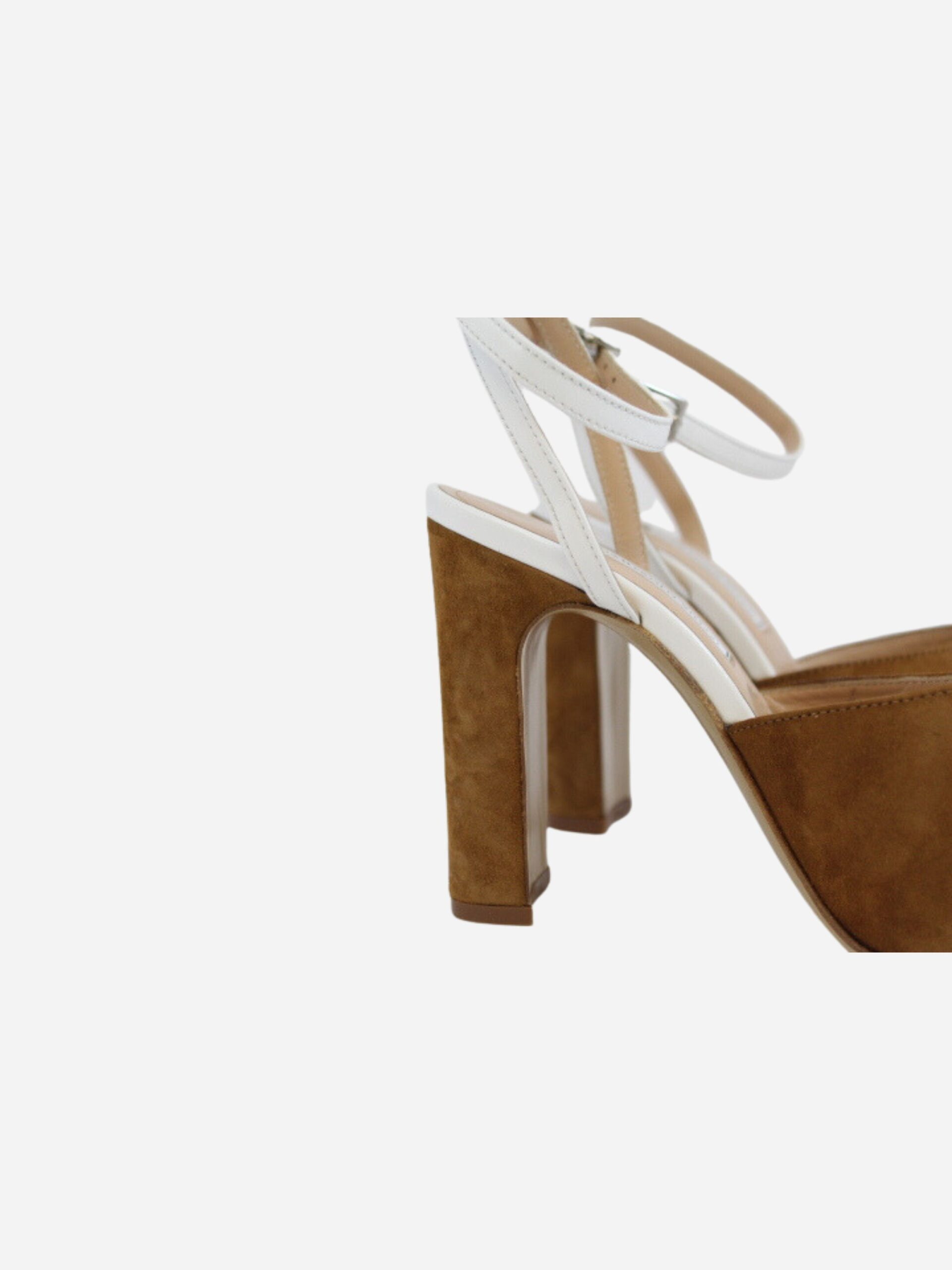 Sandalo in pelle scamosciata di Giampaolo Viozzi con dettagli bianchi. Chiusura con cinturino.