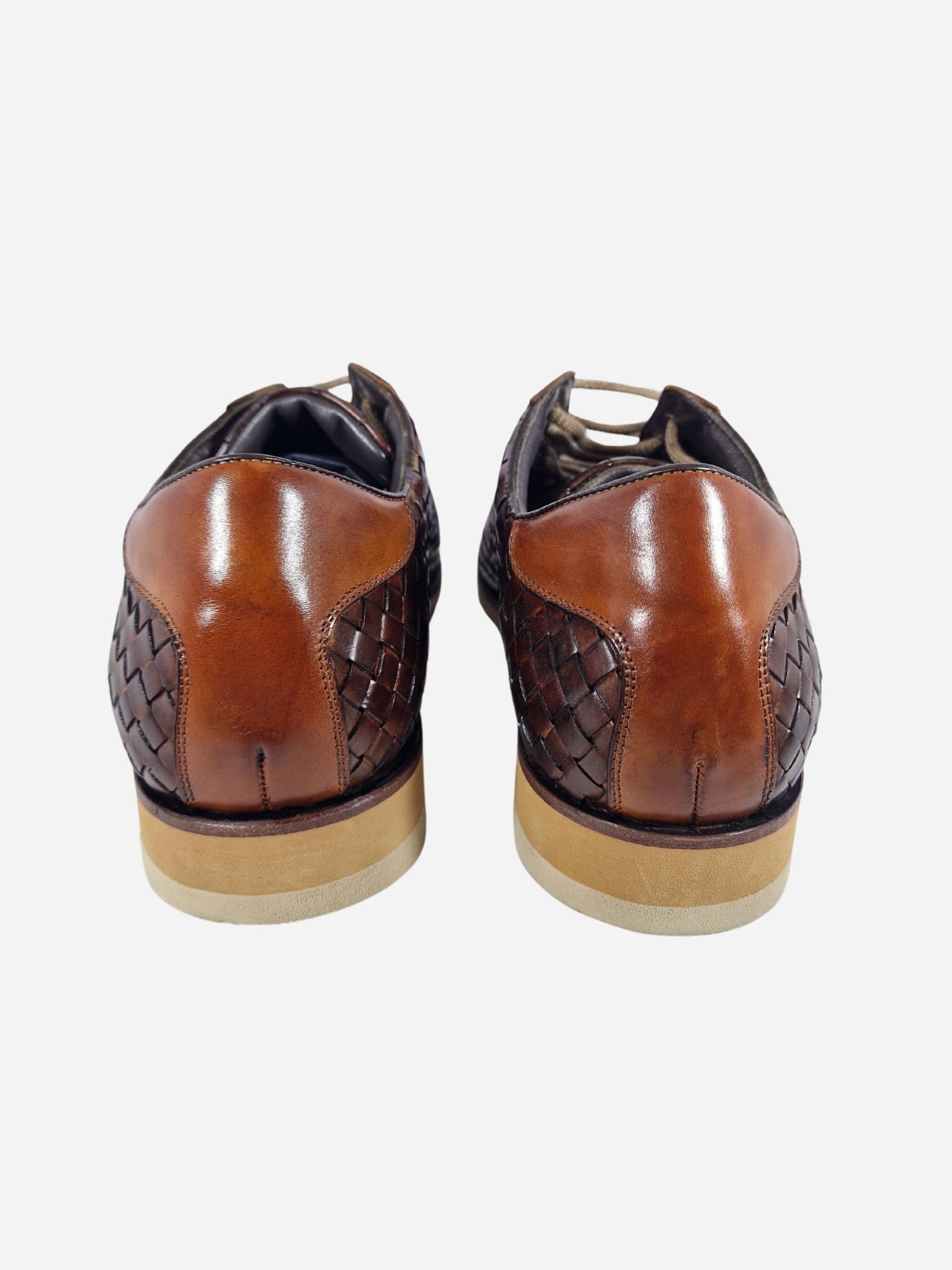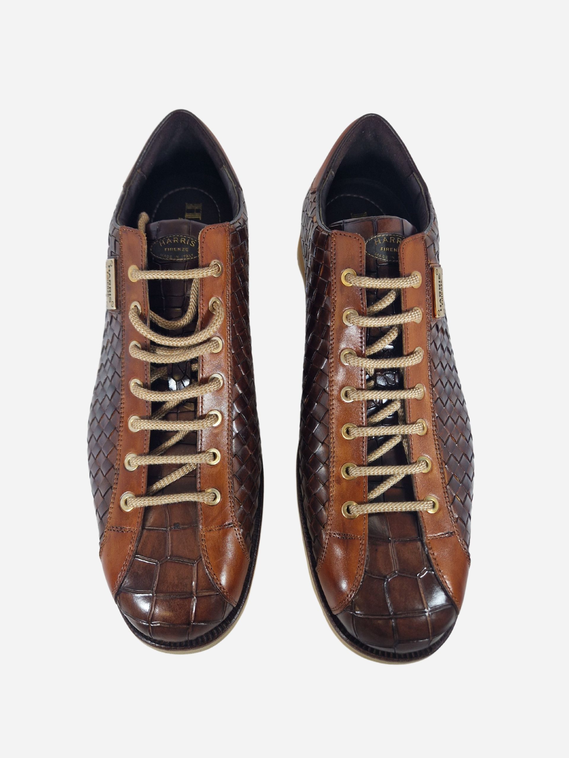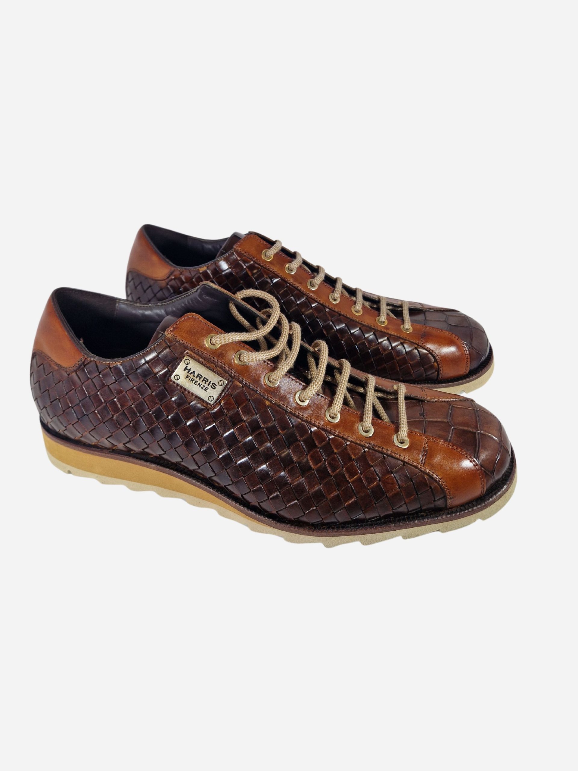 Scarpa sportiva di Harris. Calzature realizzate a mano in vera pelle intrecciata. Toppone liscio a contrasto. Fondo in cuoio.