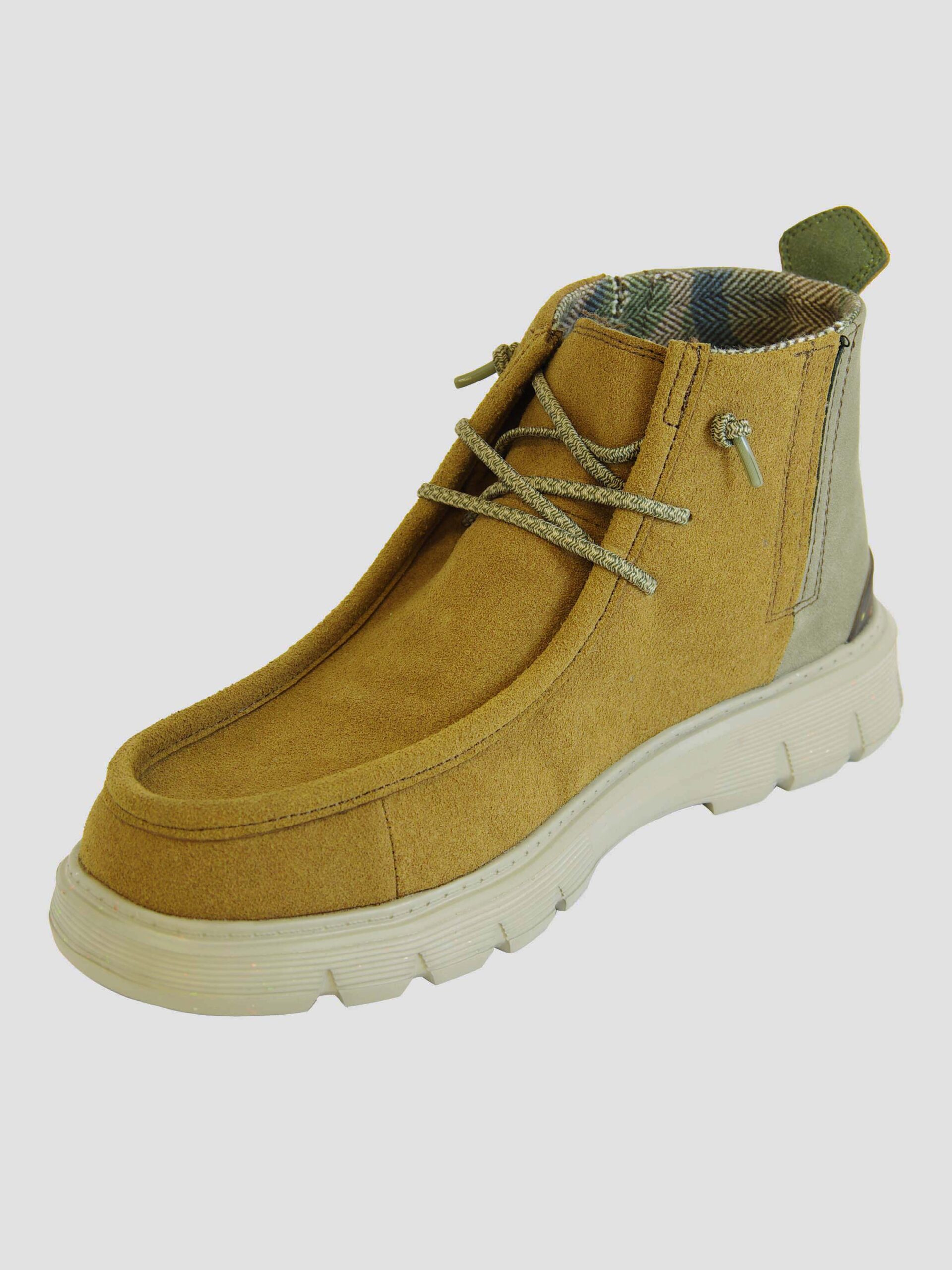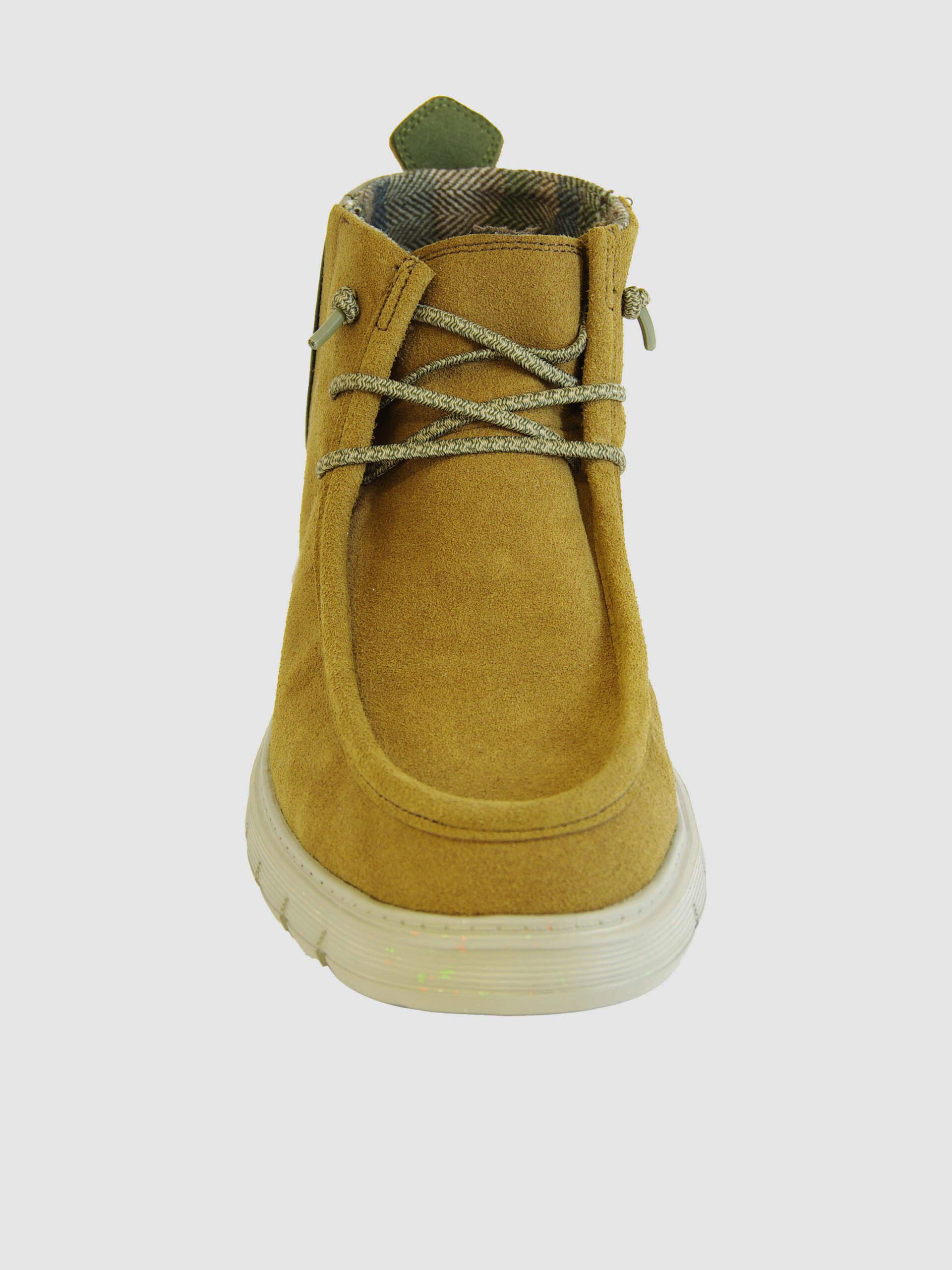Scarponcino allacciato BORISS di Hey Dude. Scarponcino allacciato in pelle scamosciata, con lacci elastici e fondo in gomma riciclata.