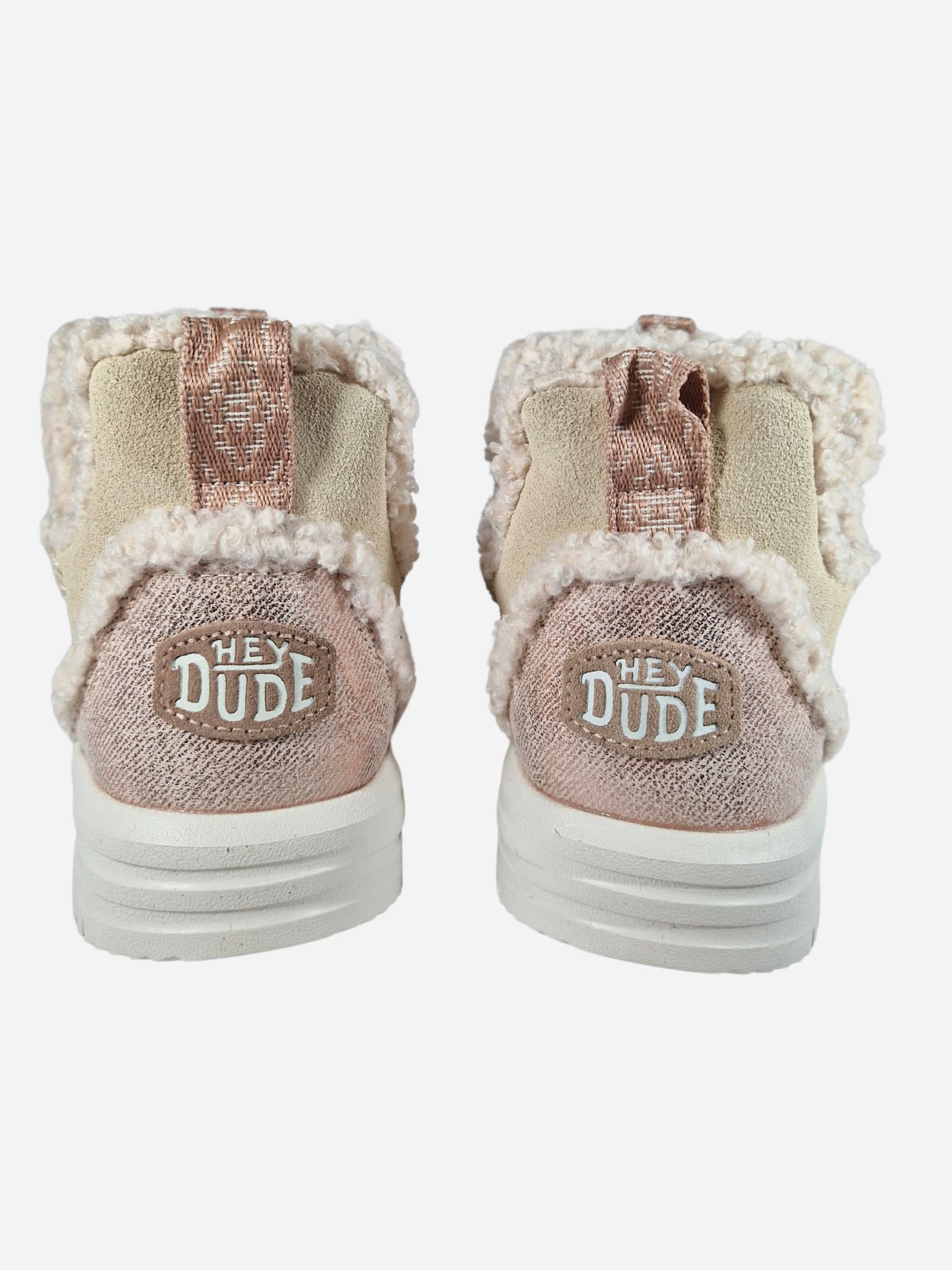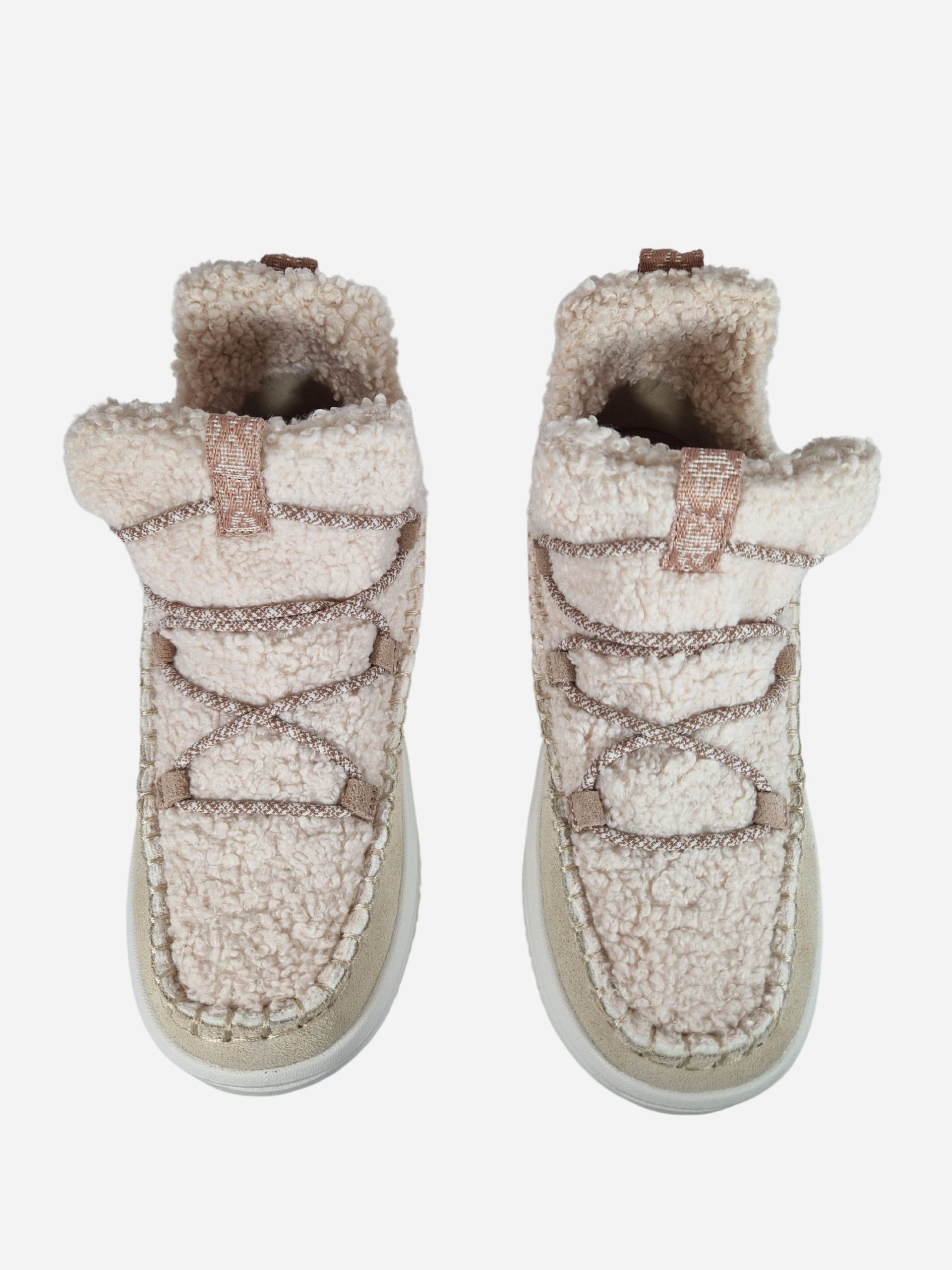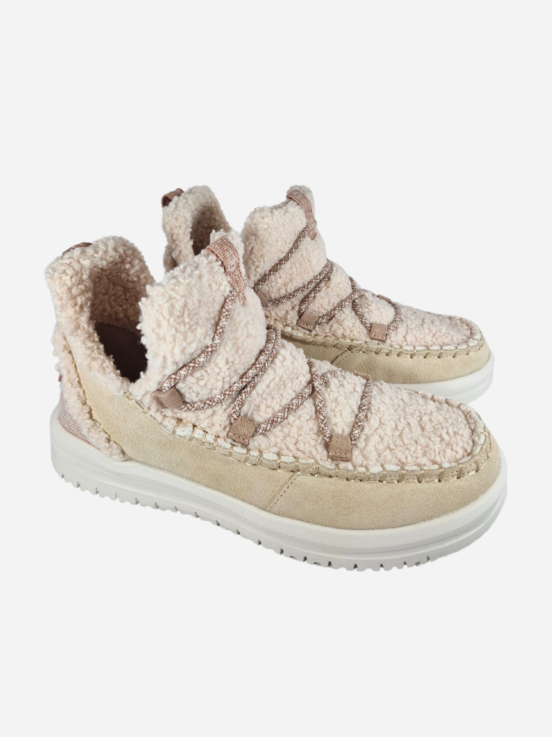 Stivaletti CAMDEN COZY by Hey Dude. Calzature realizzate in camoscio, arricchite da cuciture a contrasto e lacci. Interno in morbida lana e suola in gomma leggera. La linguetta permette una calzata semplice e comoda.