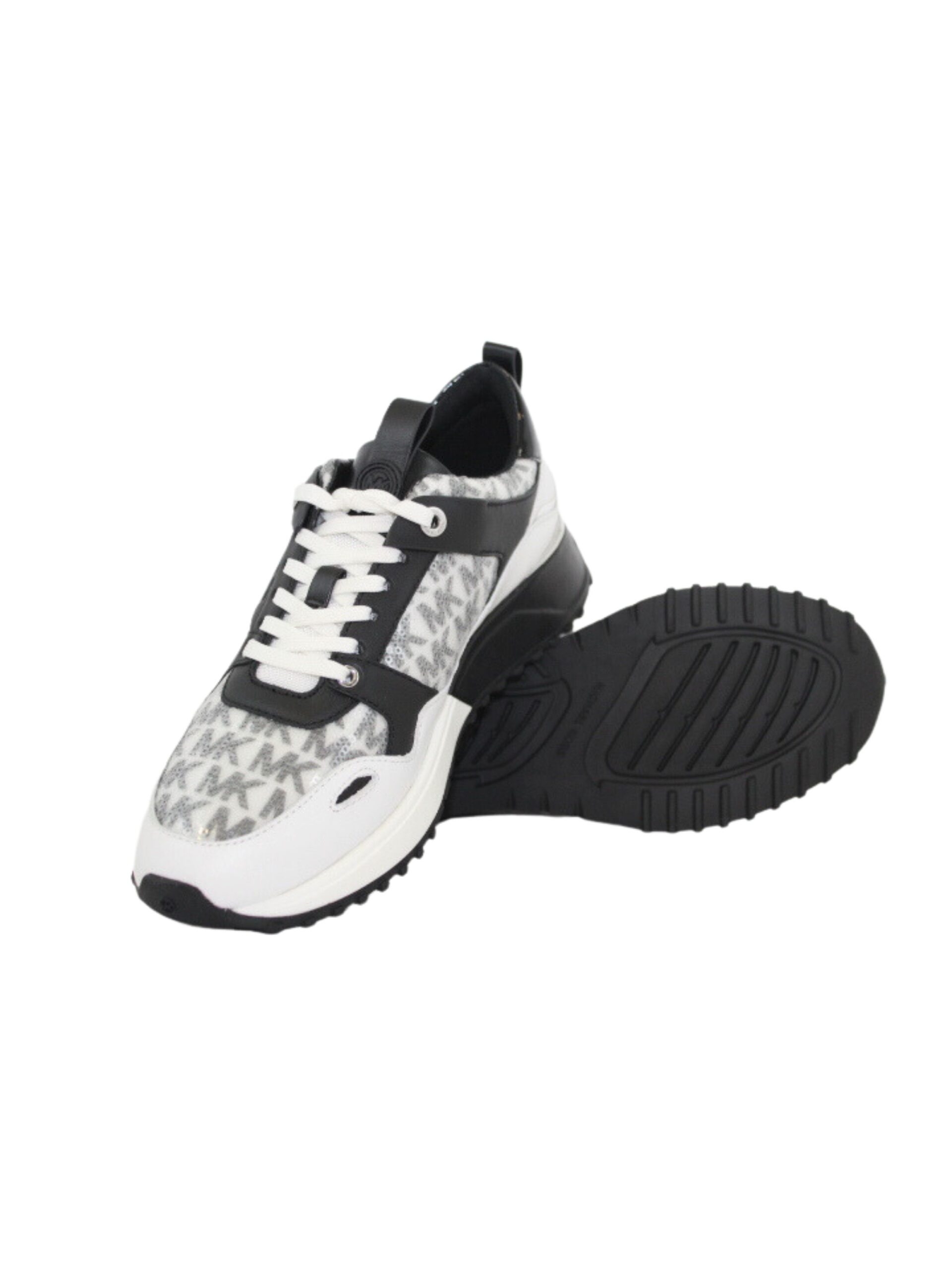 Sneakers THEO T by Michael Kors. Scarpe realizzate in pelle e tessuto con suola in gomma. Fantasia monogram con logo e paillettes trasparenti. Fondo alto con suola in gomma. Chiusura con lacci.