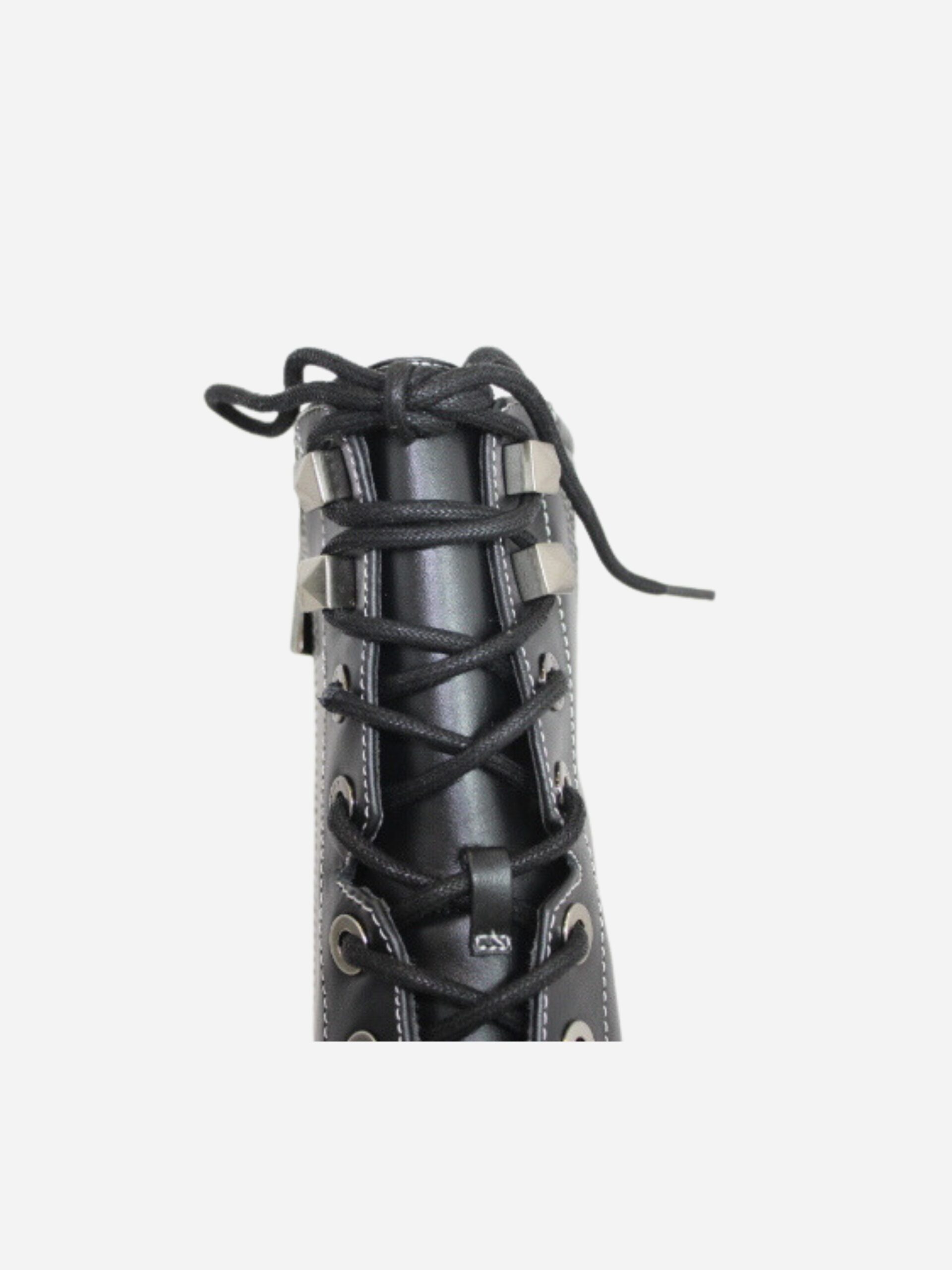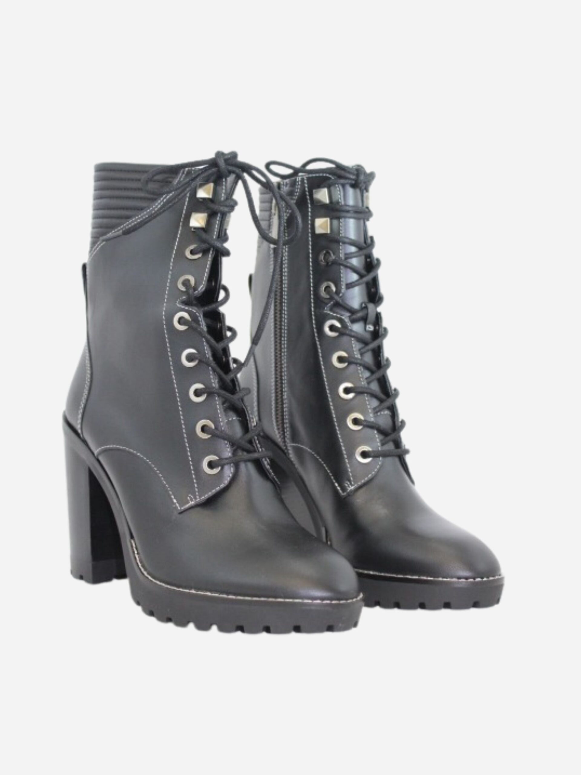Tronchetto by Michael Kors. Stivali realizzati in ecopelle con interni in cuoio e tessuto. Cuciture a contrasto. Dettaglio imbottitura posteriore e borchie nei primi occhielli. Chiusura con lacci e cerniera laterale.
