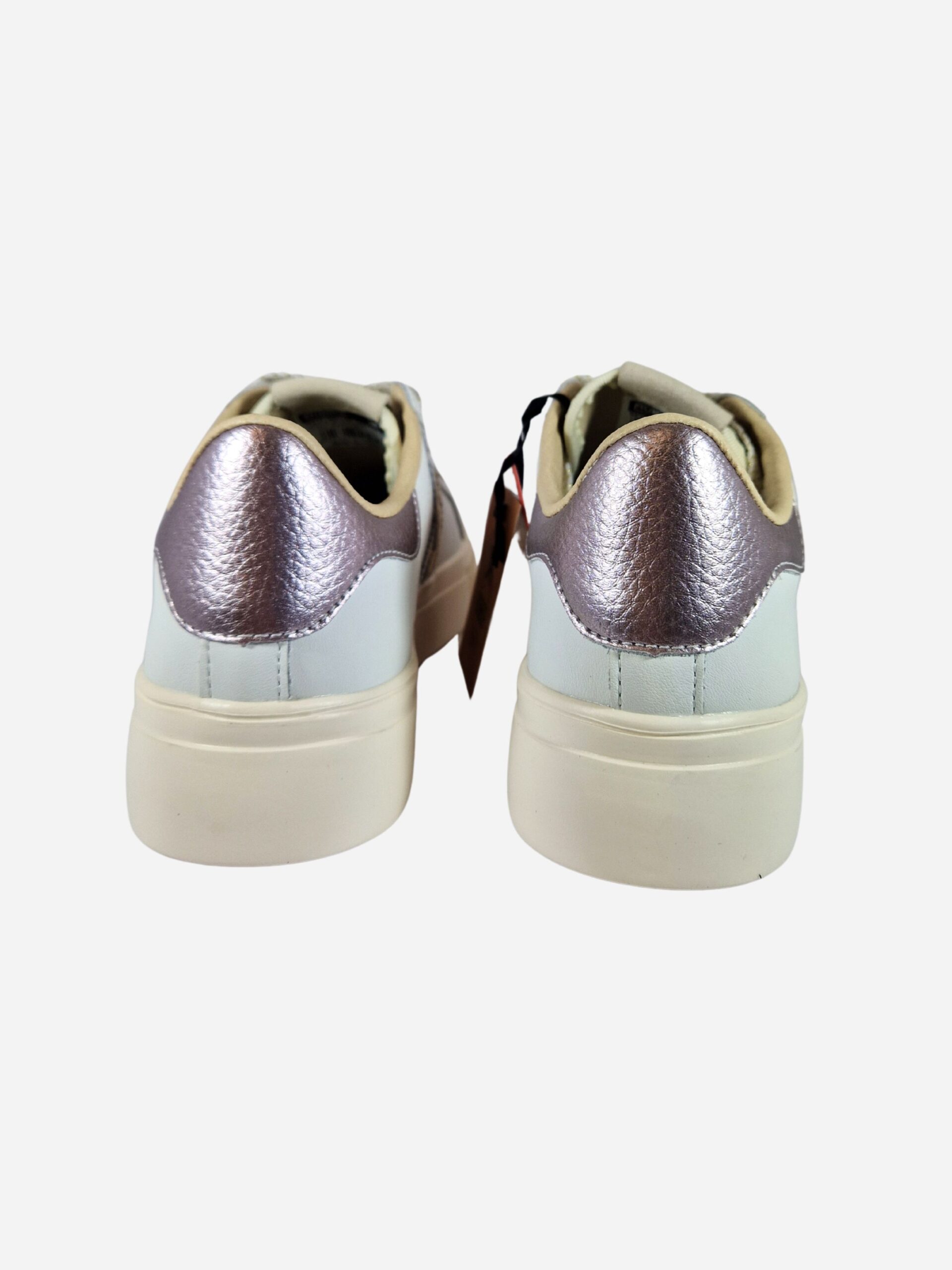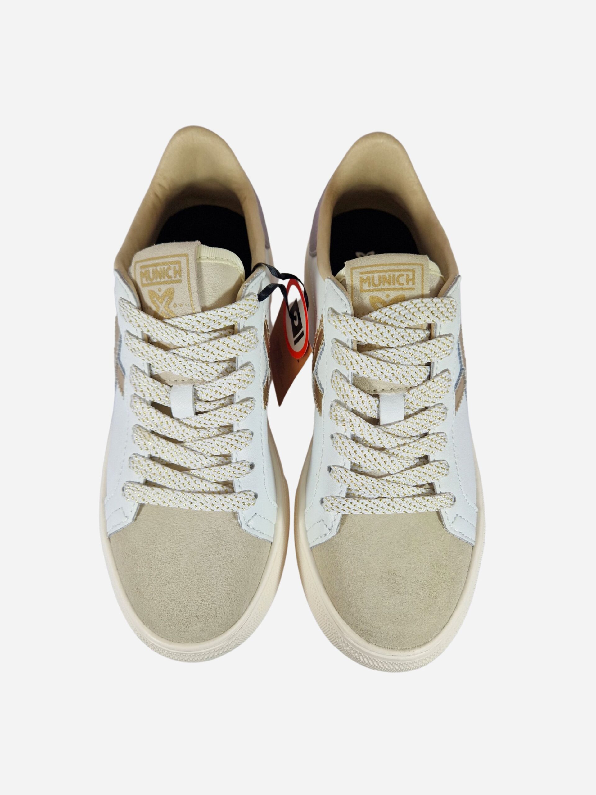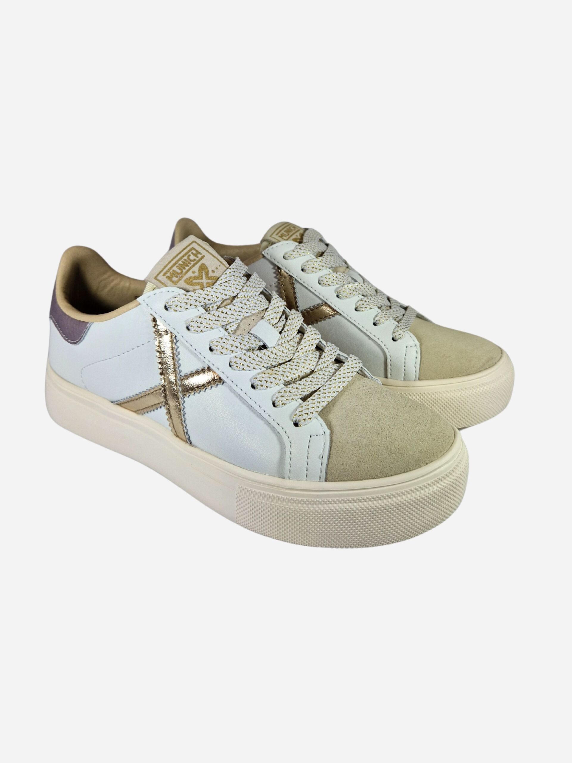 Sneakers RETE SKY 78 by Munich. Calzature realizzate in vera pelle con punta e linguetta in camoscio. Toppino in pelle martellata lilla laminato. Interno in tessuto. Suola in gomma.