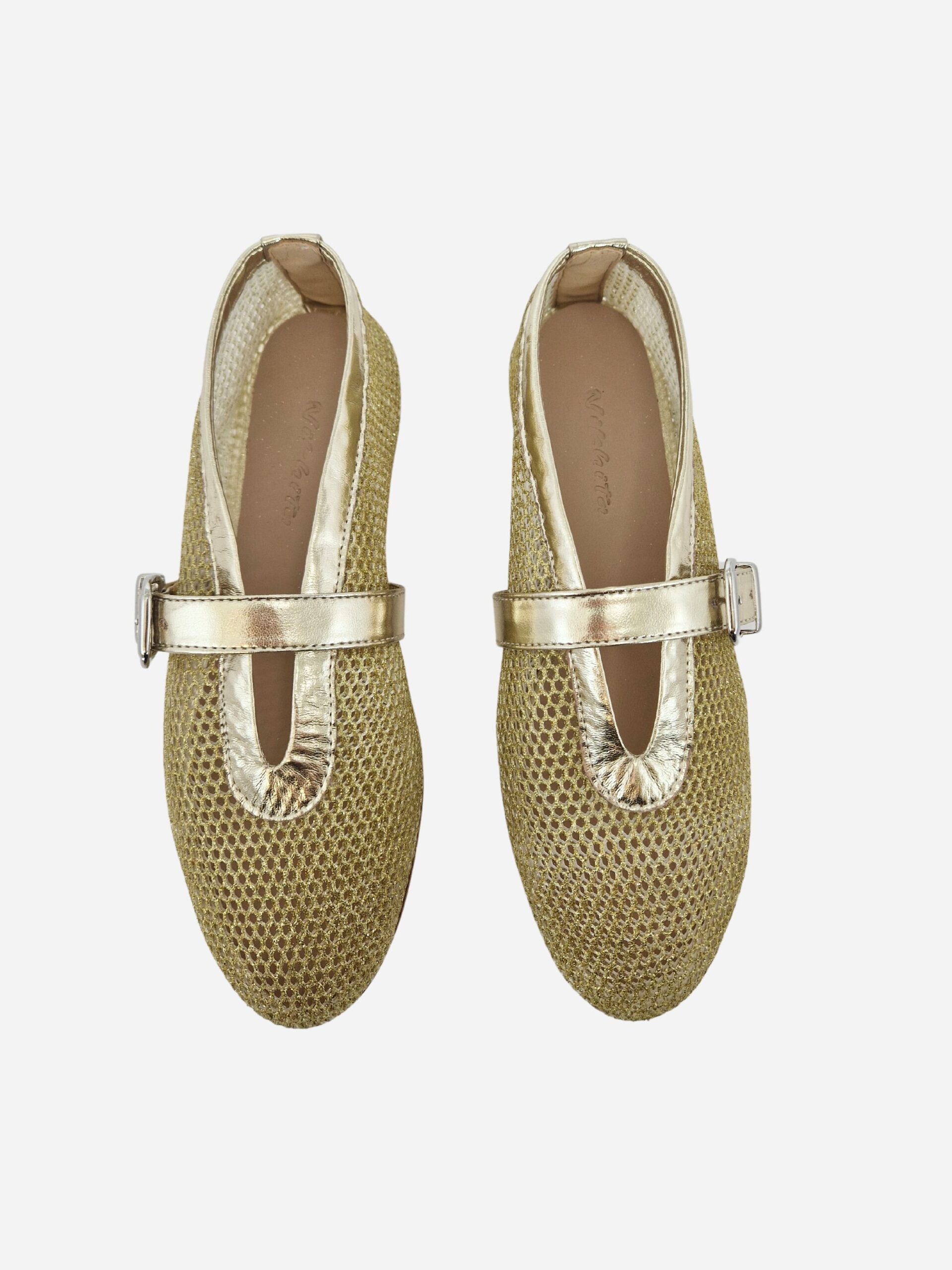 Ballerine a rete by Nikhita. Scarpe realizzate in tessuto a rete con cinturino e bordino in pelle. Suola in materiale sintetico. Disponibile in più colori.