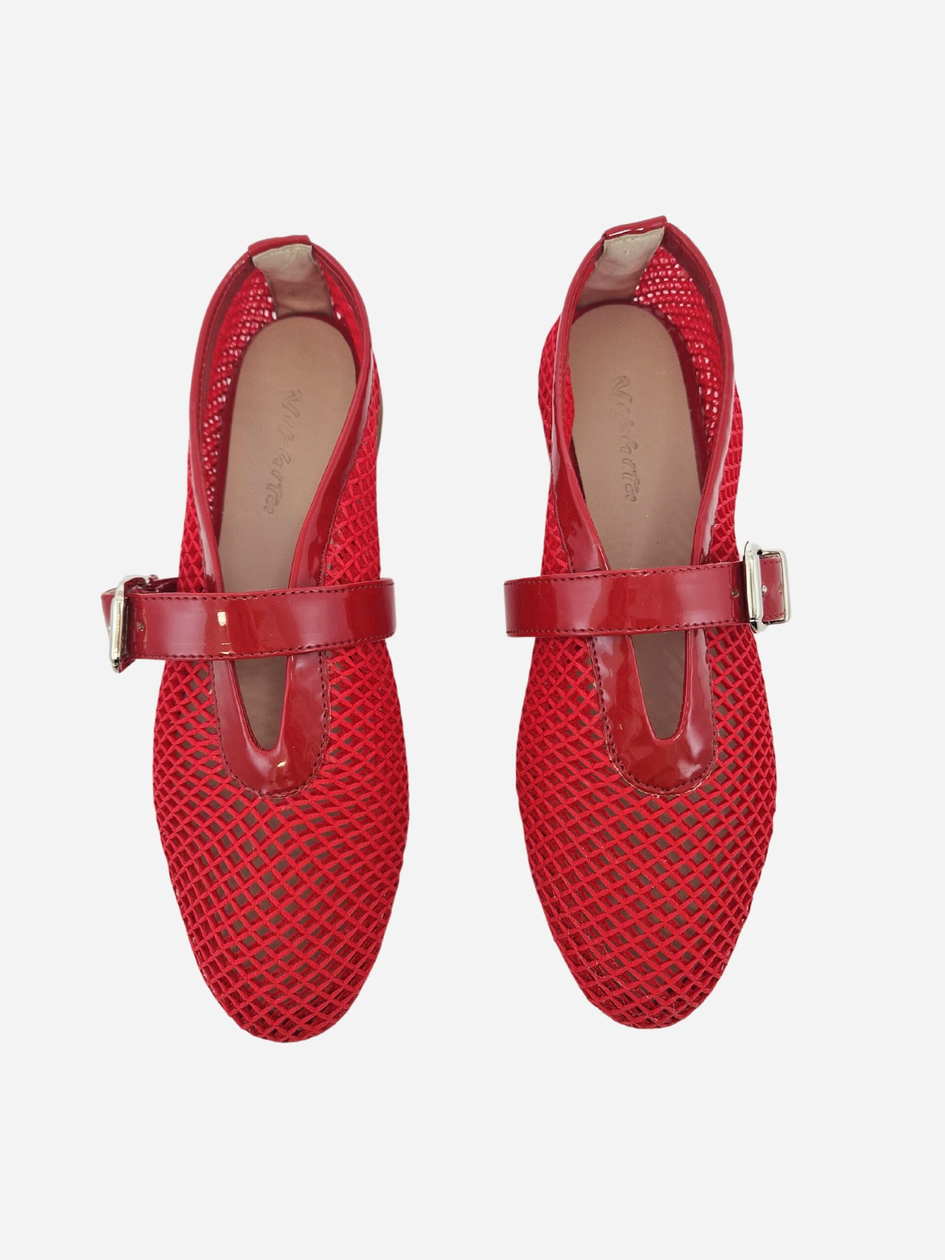 Ballerine a rete by Nikhita. Scarpe realizzate in tessuto a rete con cinturino e bordino in pelle. Suola in materiale sintetico. Disponibile in più colori.