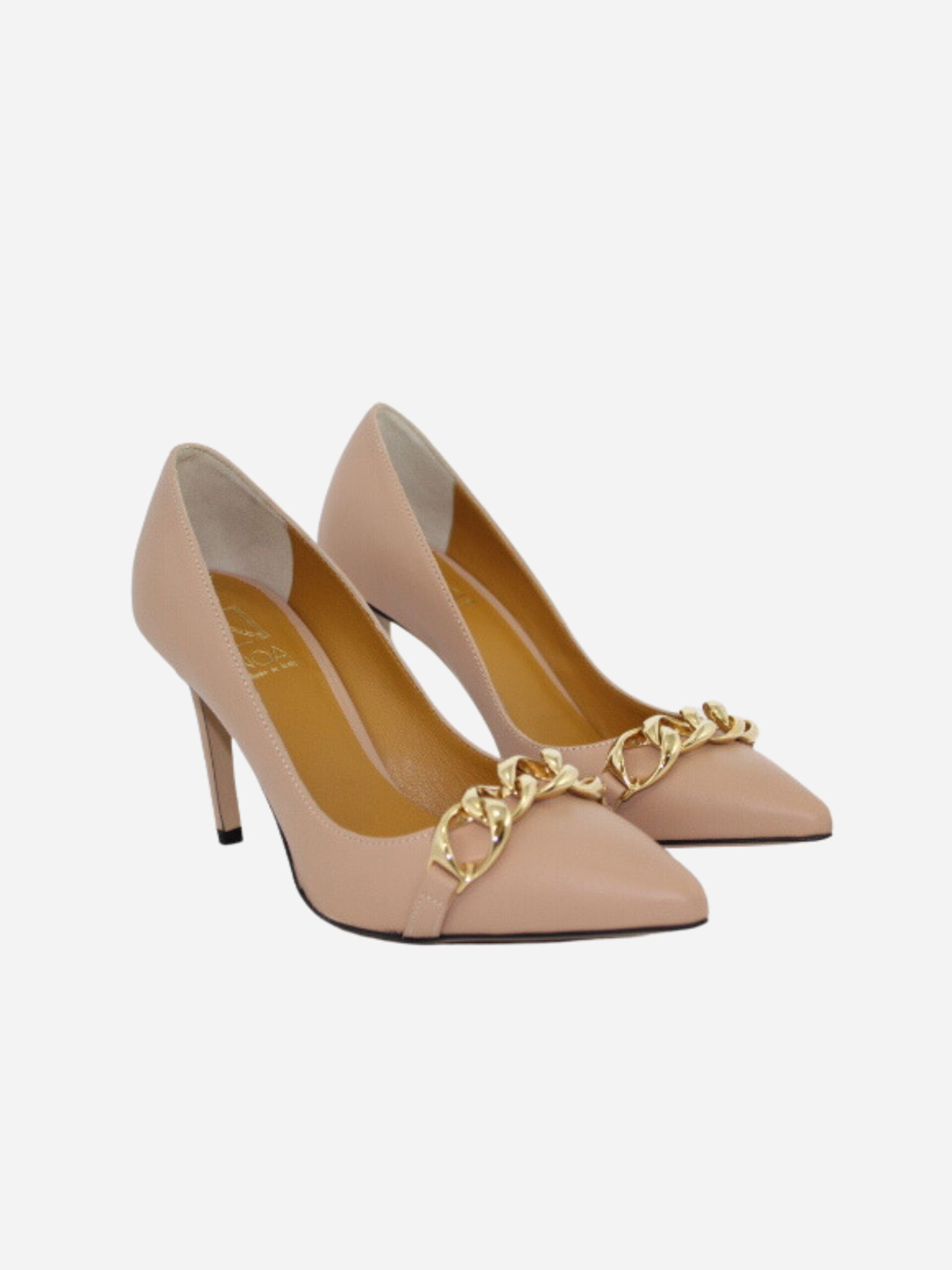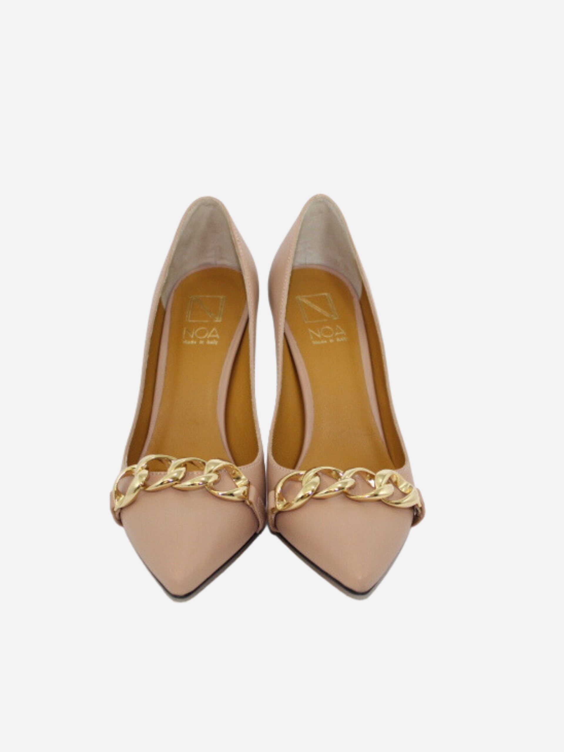 Décolleté nude by Noa. Scarpe realizzate in nappa con fondo in cuoio e suola in materiale sintetico. Dettaglio accessorio sulla punta con catena dorata. Tacco a spillo di 9 cm.
