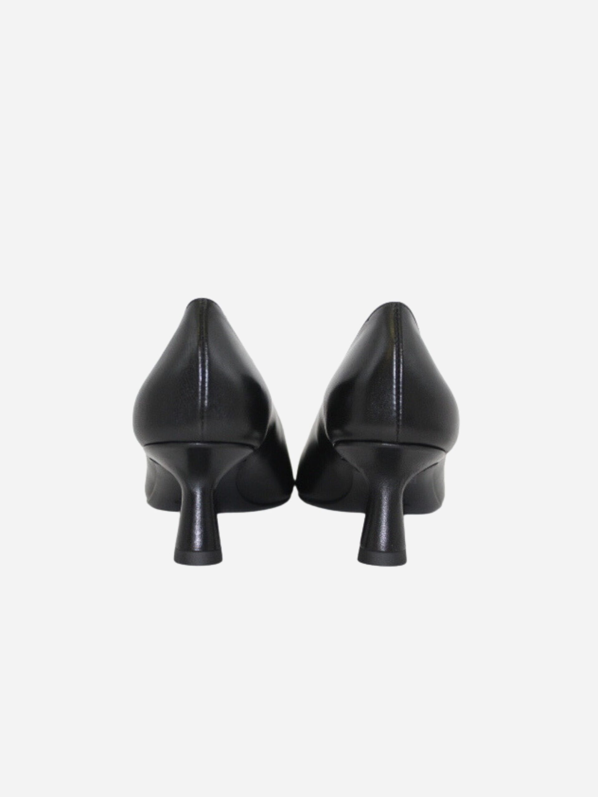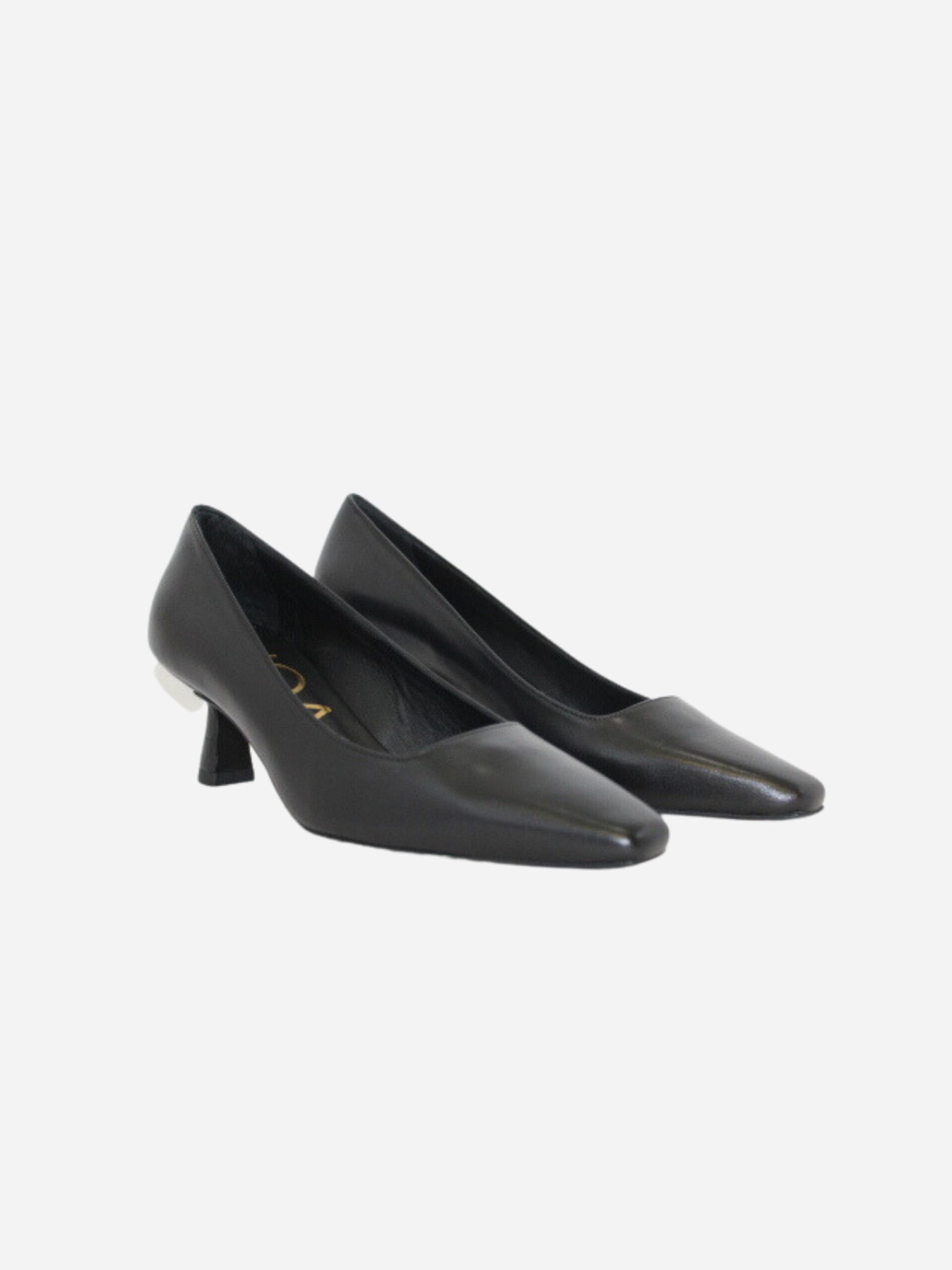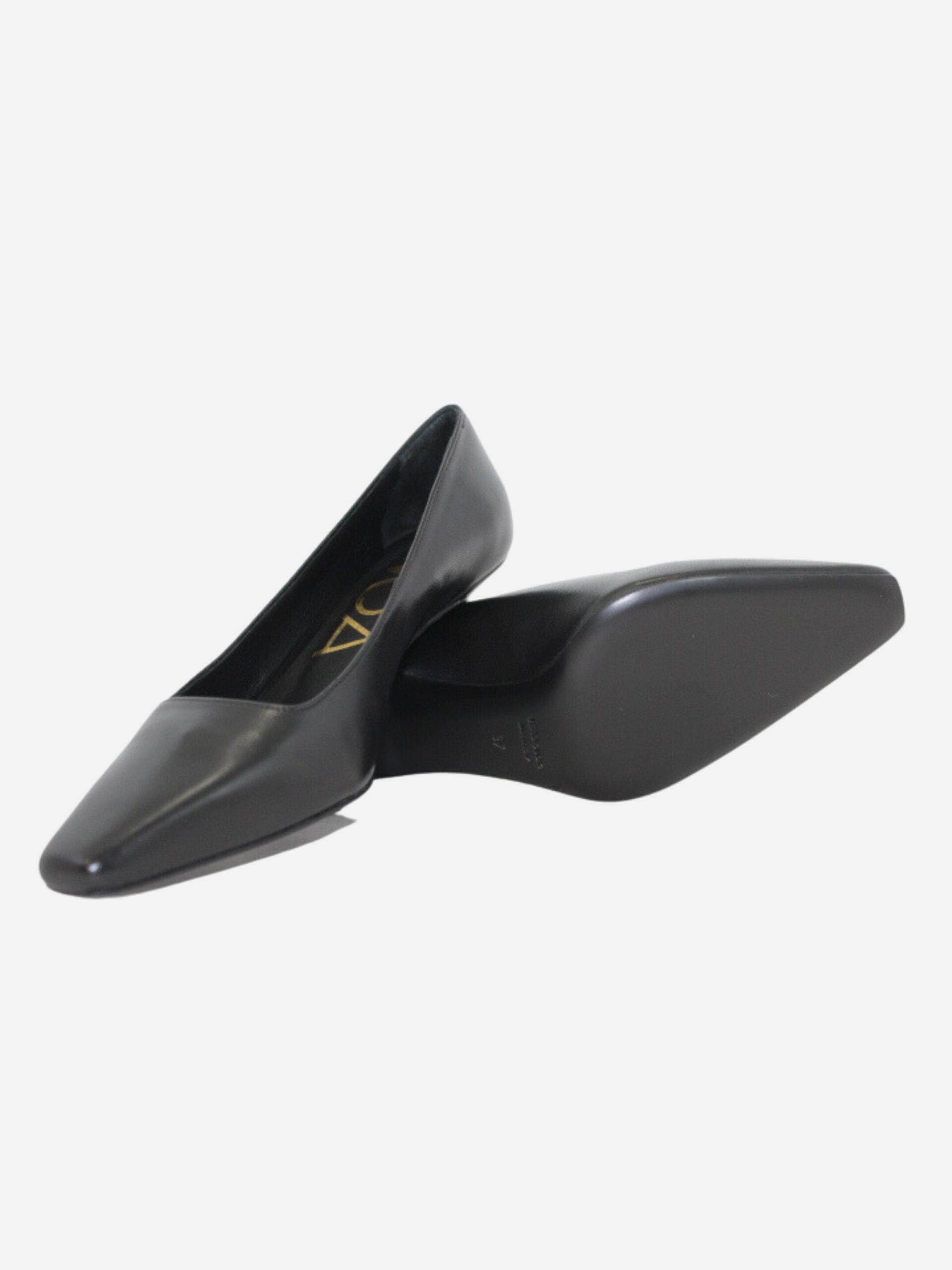Décolleté by Noa con punta squadrata. Scarpe realizzate in nappa nera con fondo in cuoio e suola in materiale sintetico. Comodo tacco a campana di 4 cm.