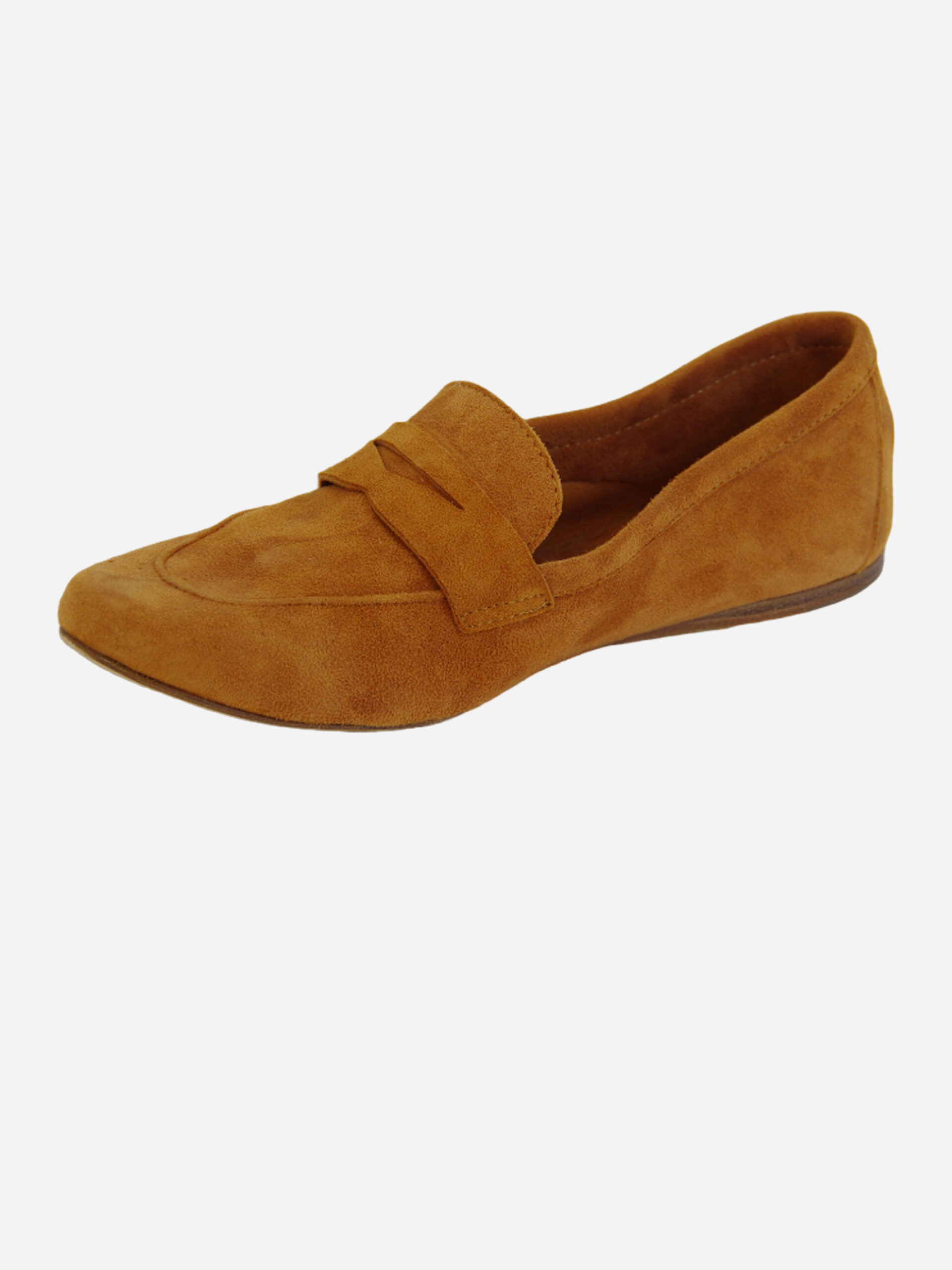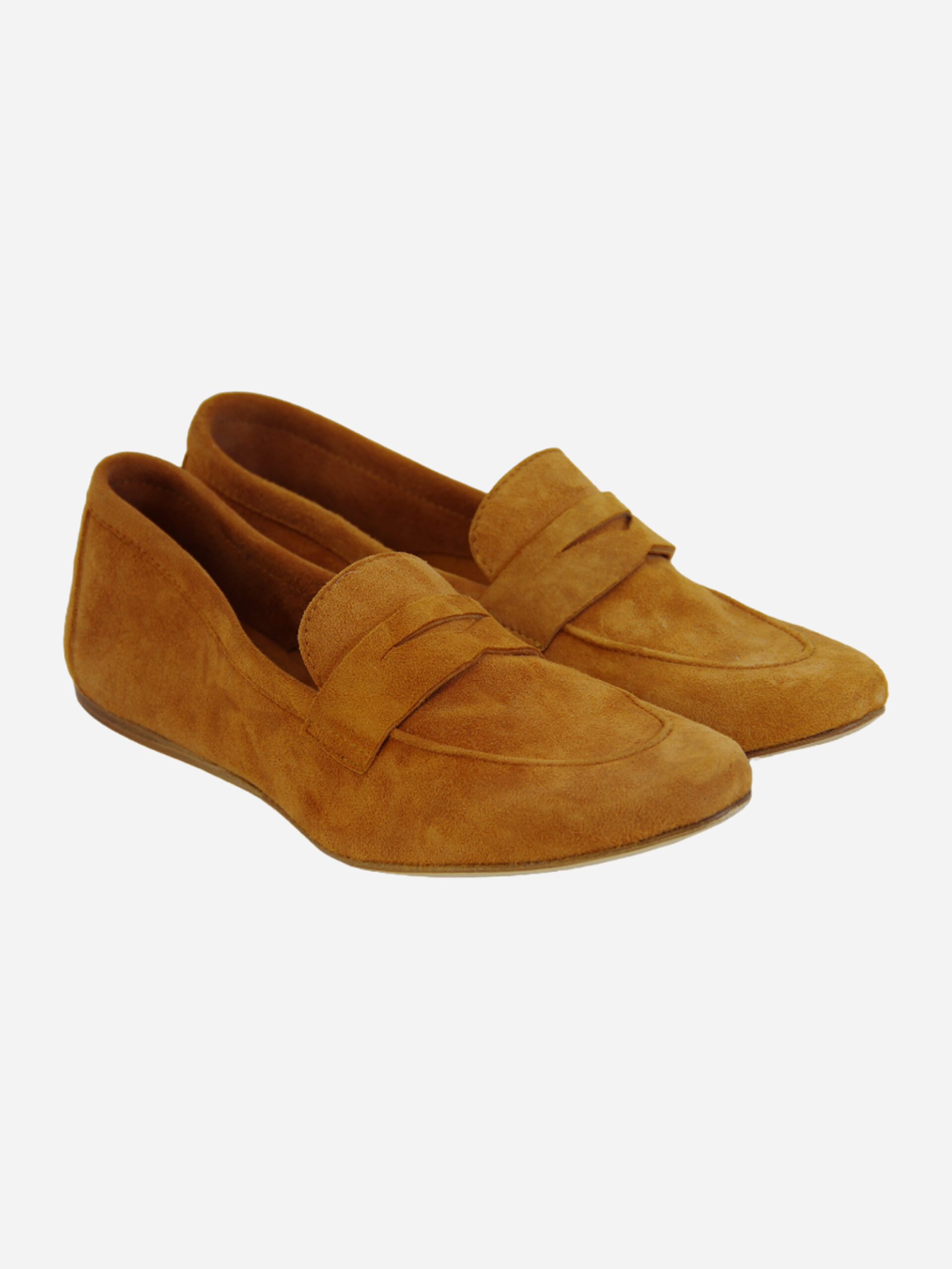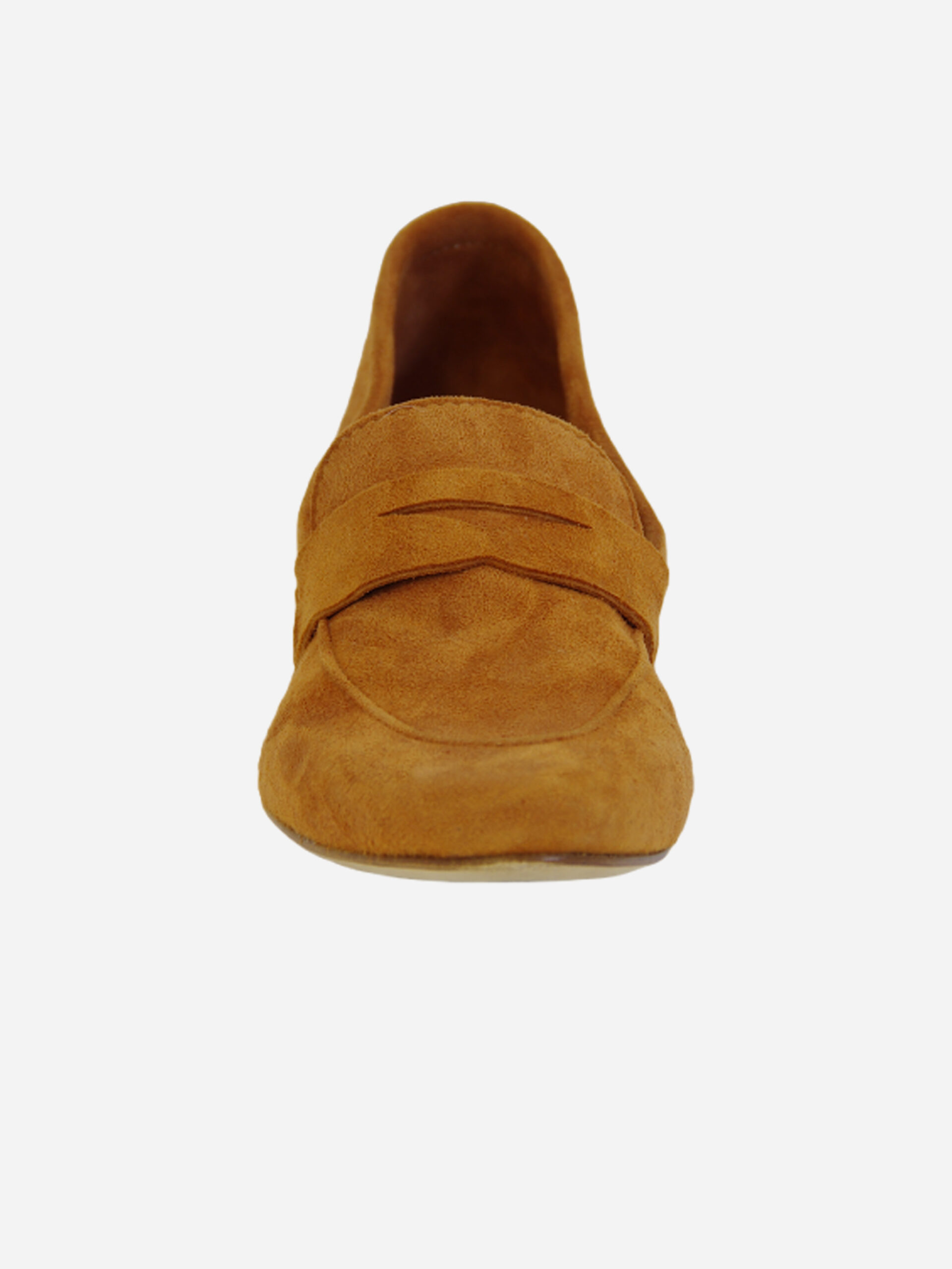 Mocassino S1001 di Noa. Mocassino basso in camoscio color camel. Punta leggermente quadrata con mascherina frontale.