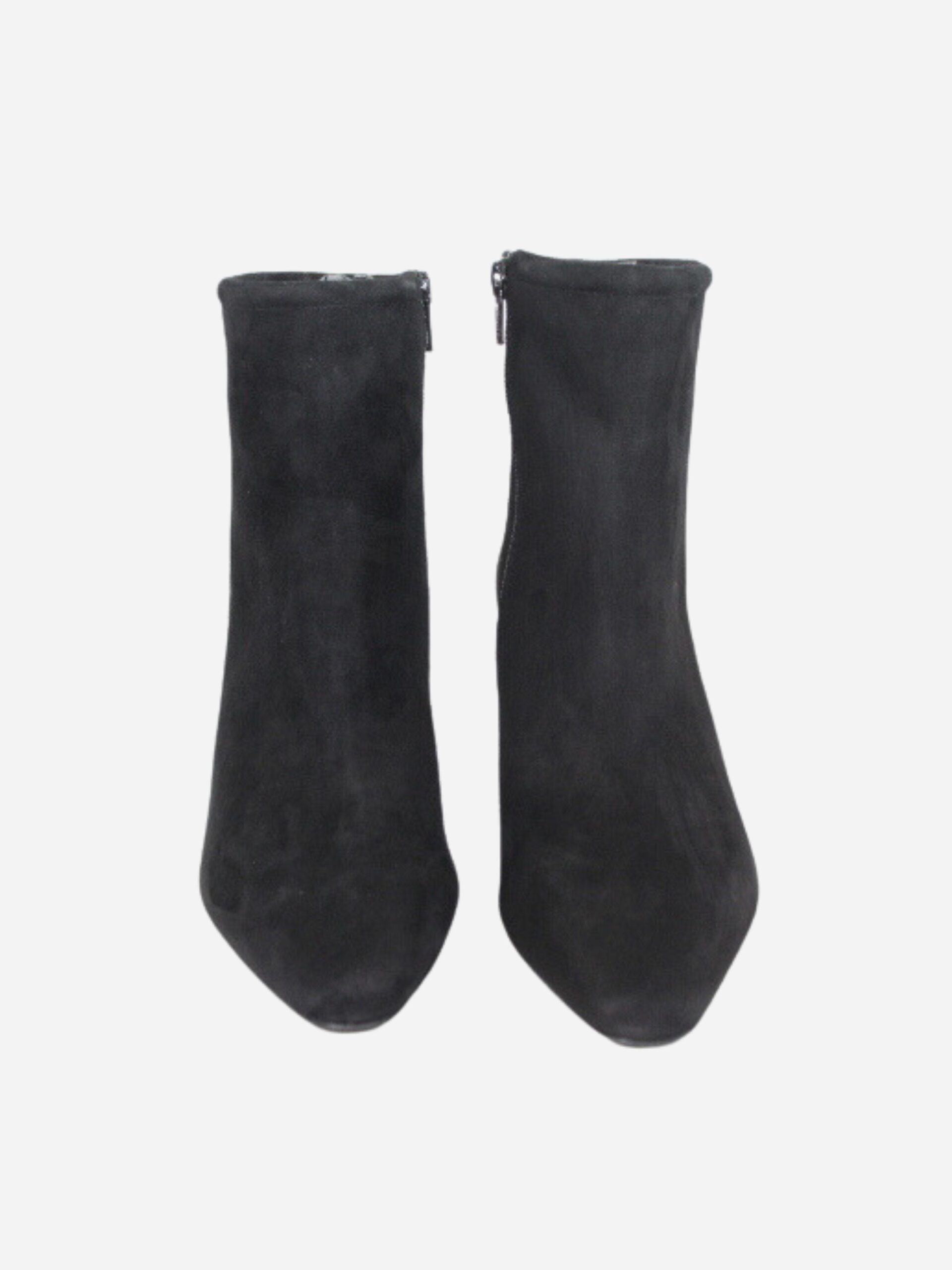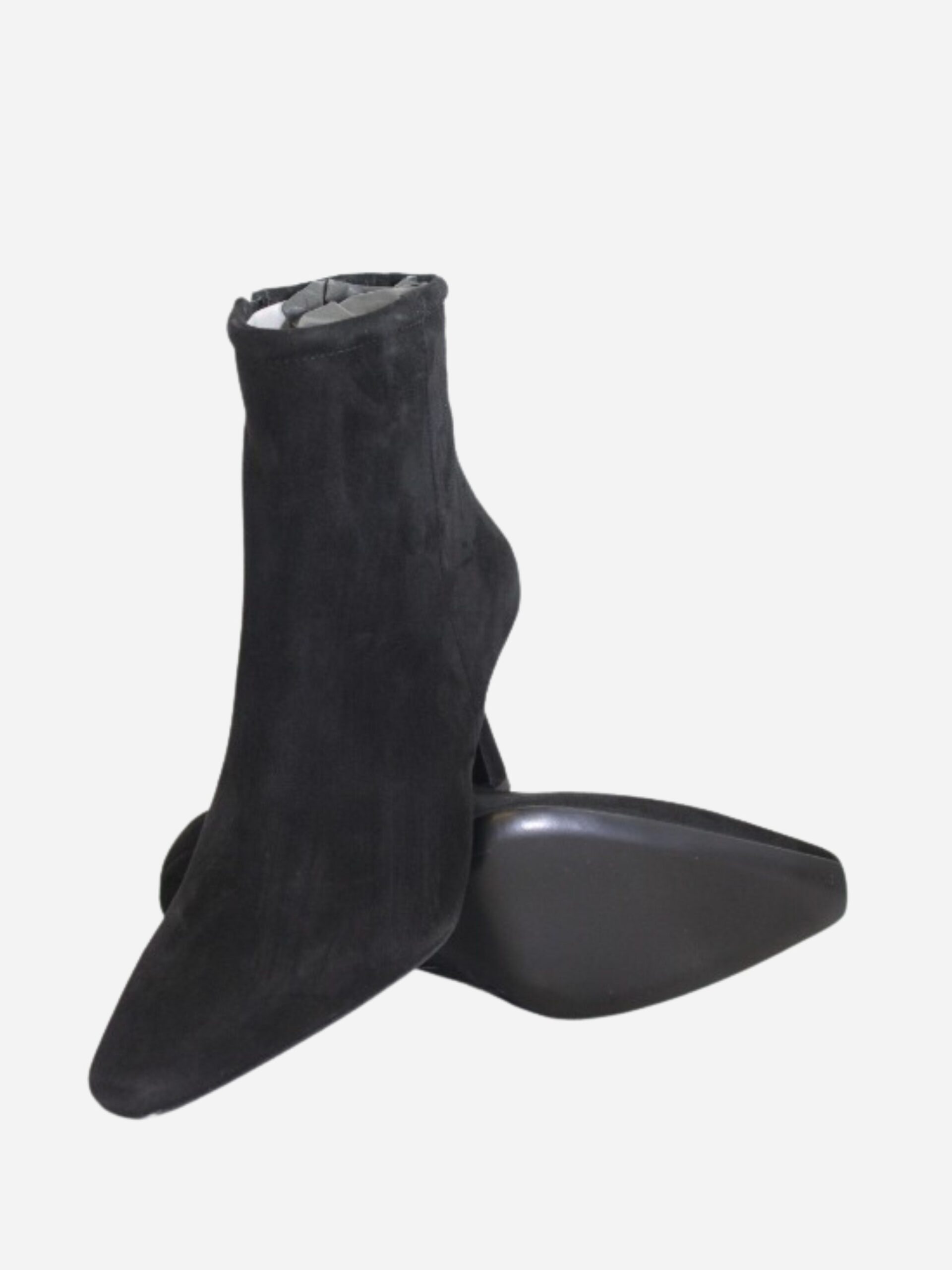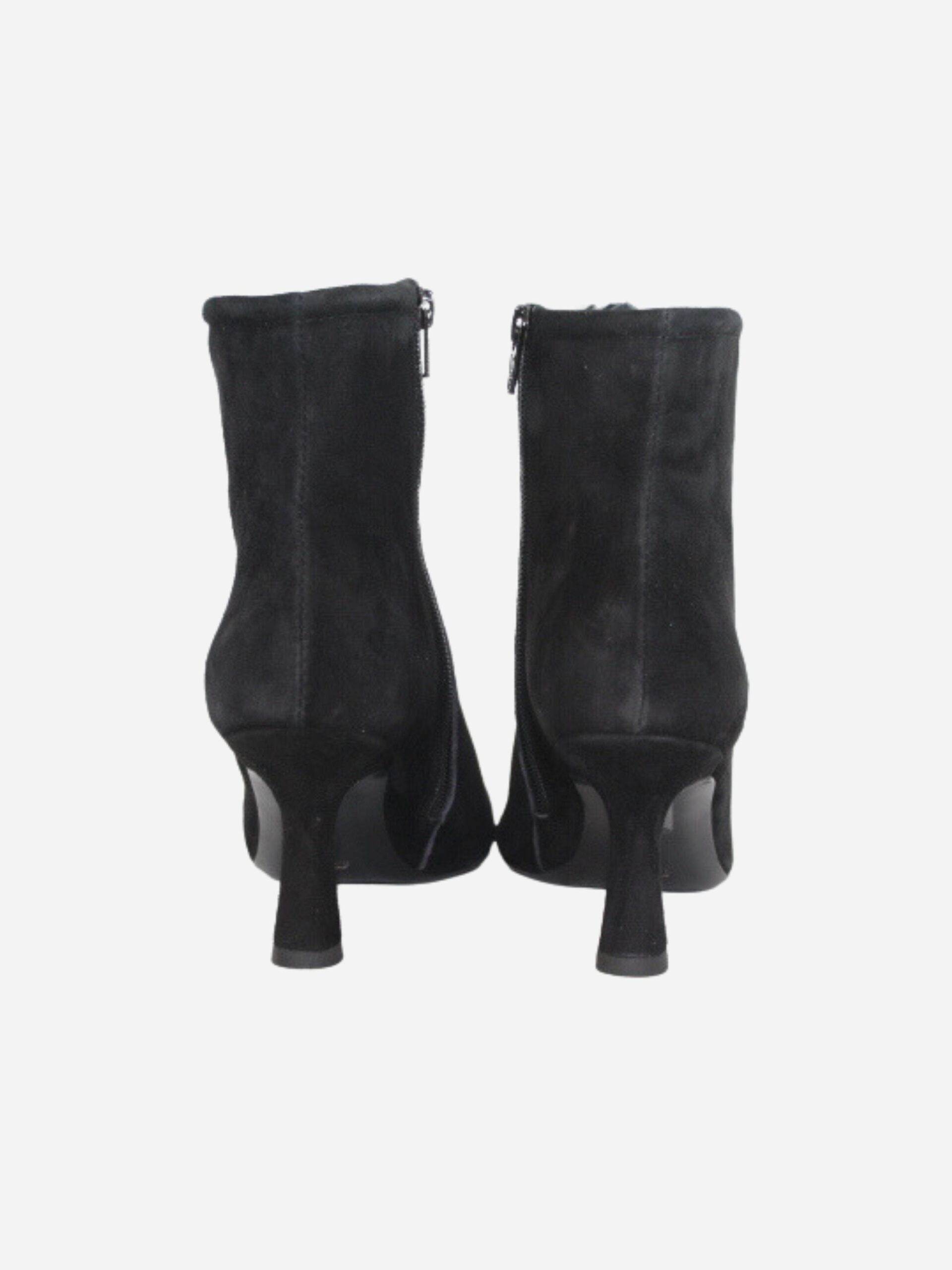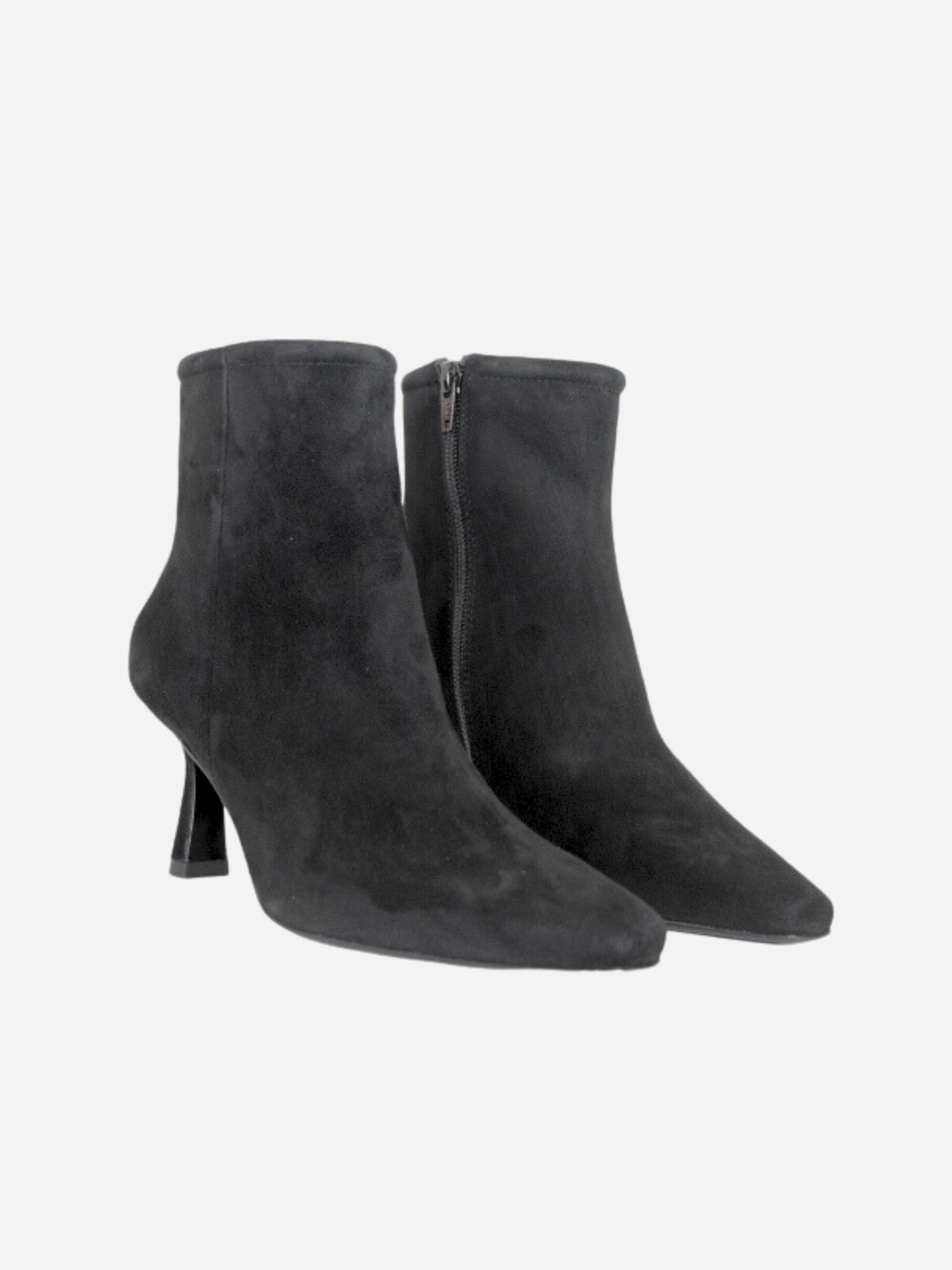 Tronchetto in camoscio nero by Noa. Stivaletti dalla linea classica realizzati in vera pelle scamosciata con fondo in cuoio e suola in materiale sintetico. Tacco a rocchetto di 7 cm. Chiusura con cerniera laterale.
