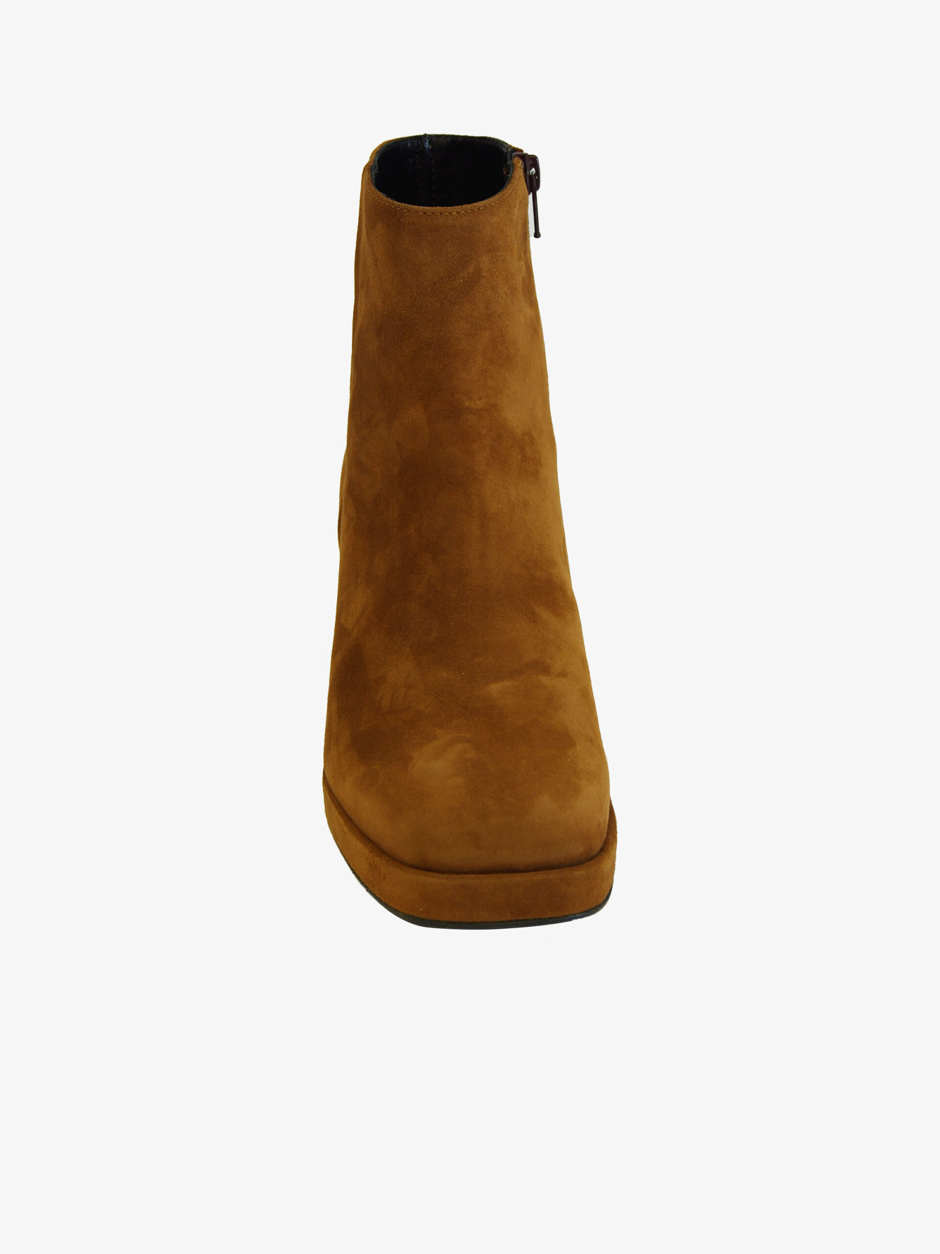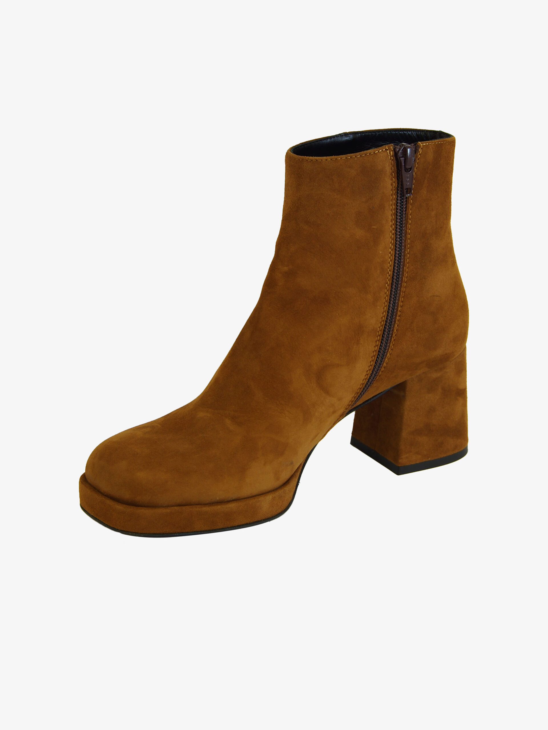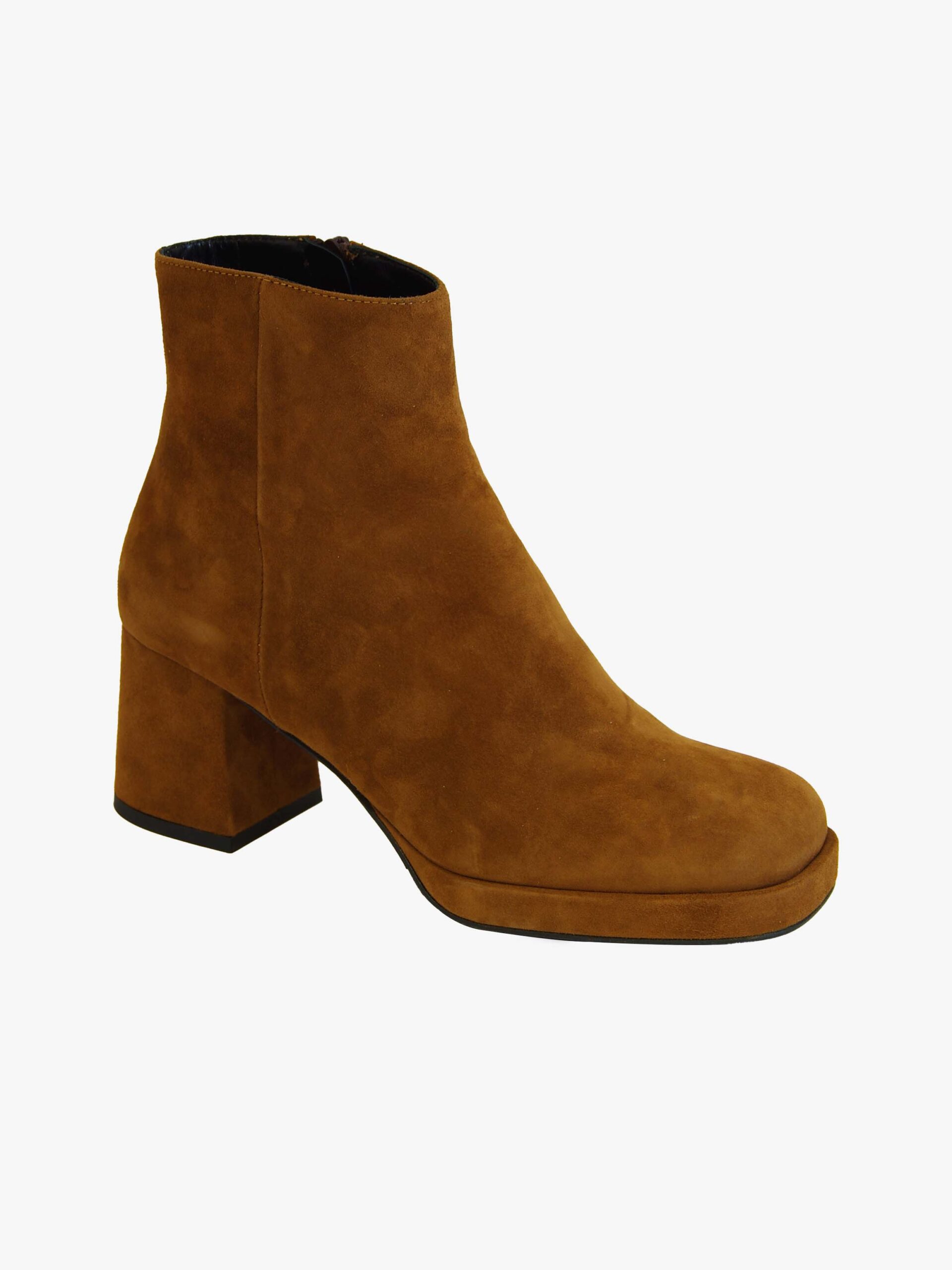 Tronchetto di Noa. Tronchetto realizzato in vera pelle scamosciata con fondo in cuoio e suola in gomma. Comodo tacco quadrato di 6 cm. Chiusura con cerniera laterale interna.