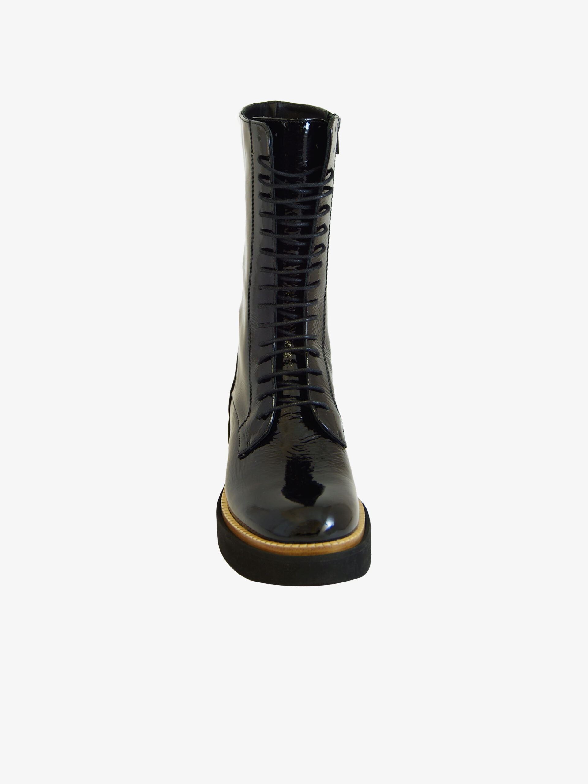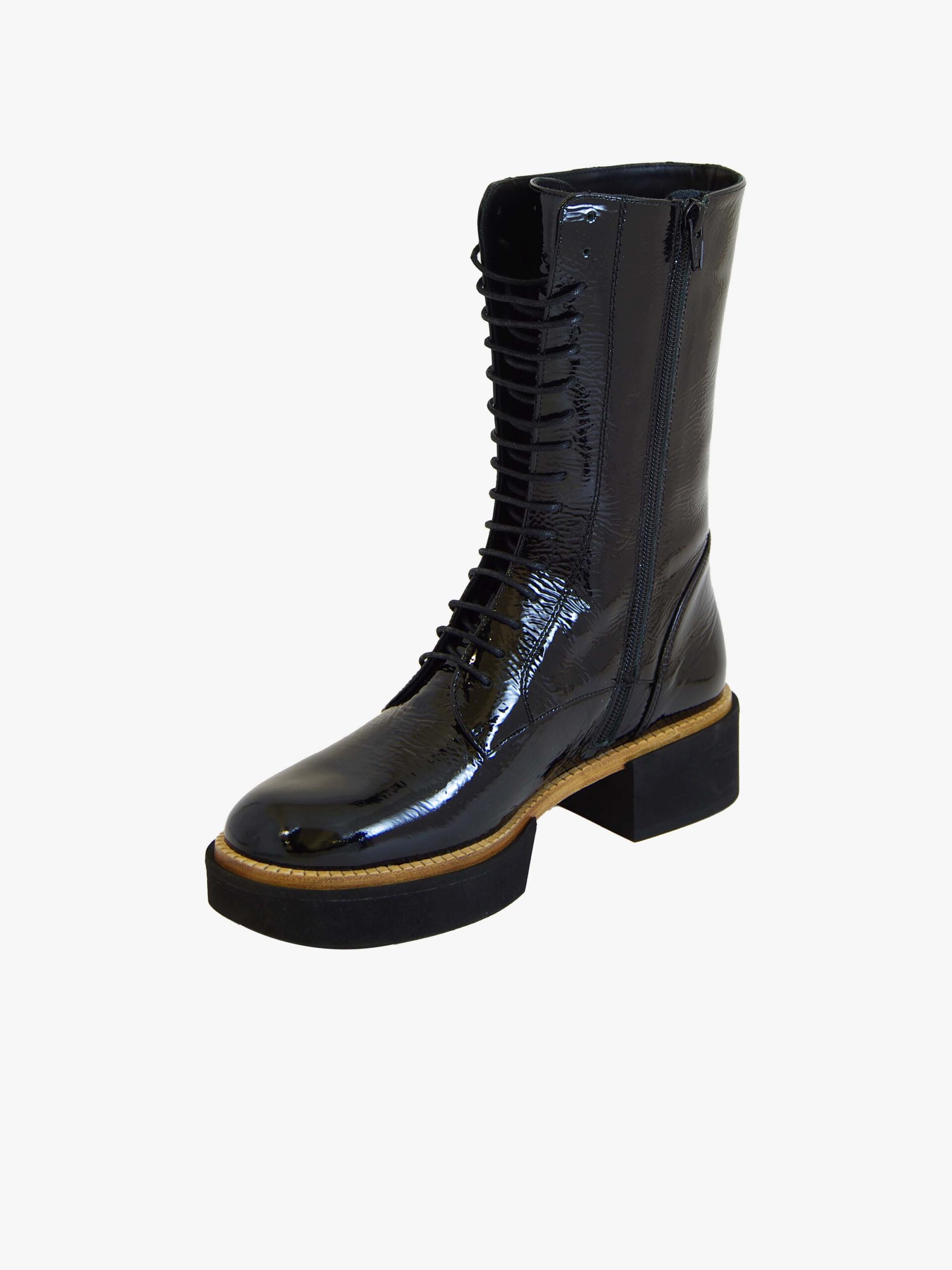 Paloma Barcelò Anfibio Sanli. Anfibio lucido con punta stondata, paraboot e zip laterale.