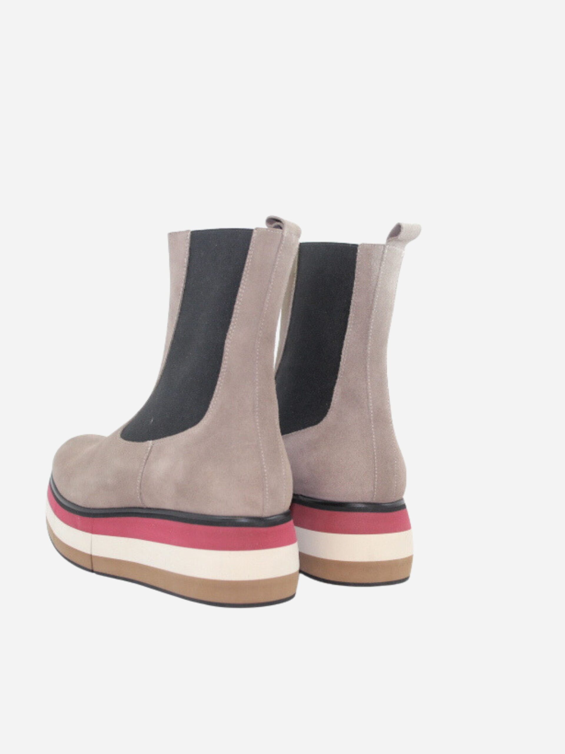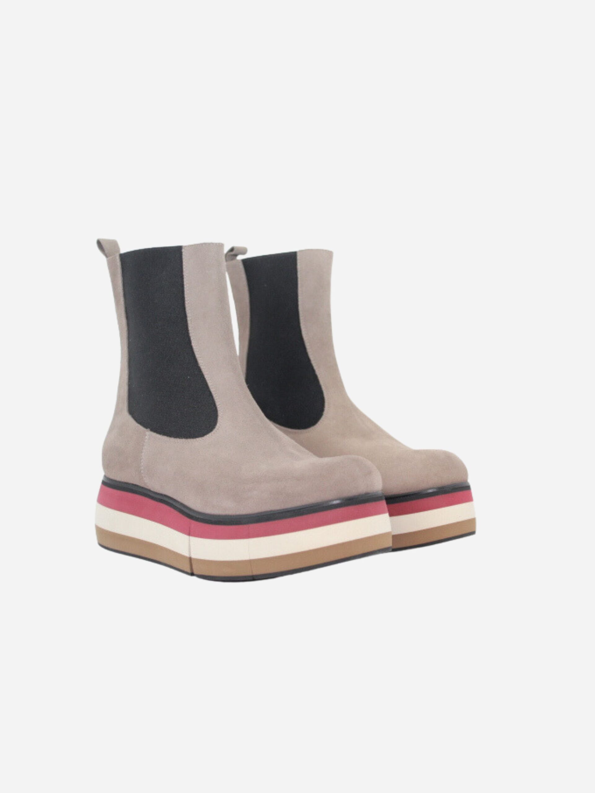 Beatles LILITH by Paloma Barcelo’. Scarpe realizzate in vera pelle scamosciata beige. Suola platform in materiale sintetico con strisce colorate a contrasto. Altezza fondo 5,5 cm.