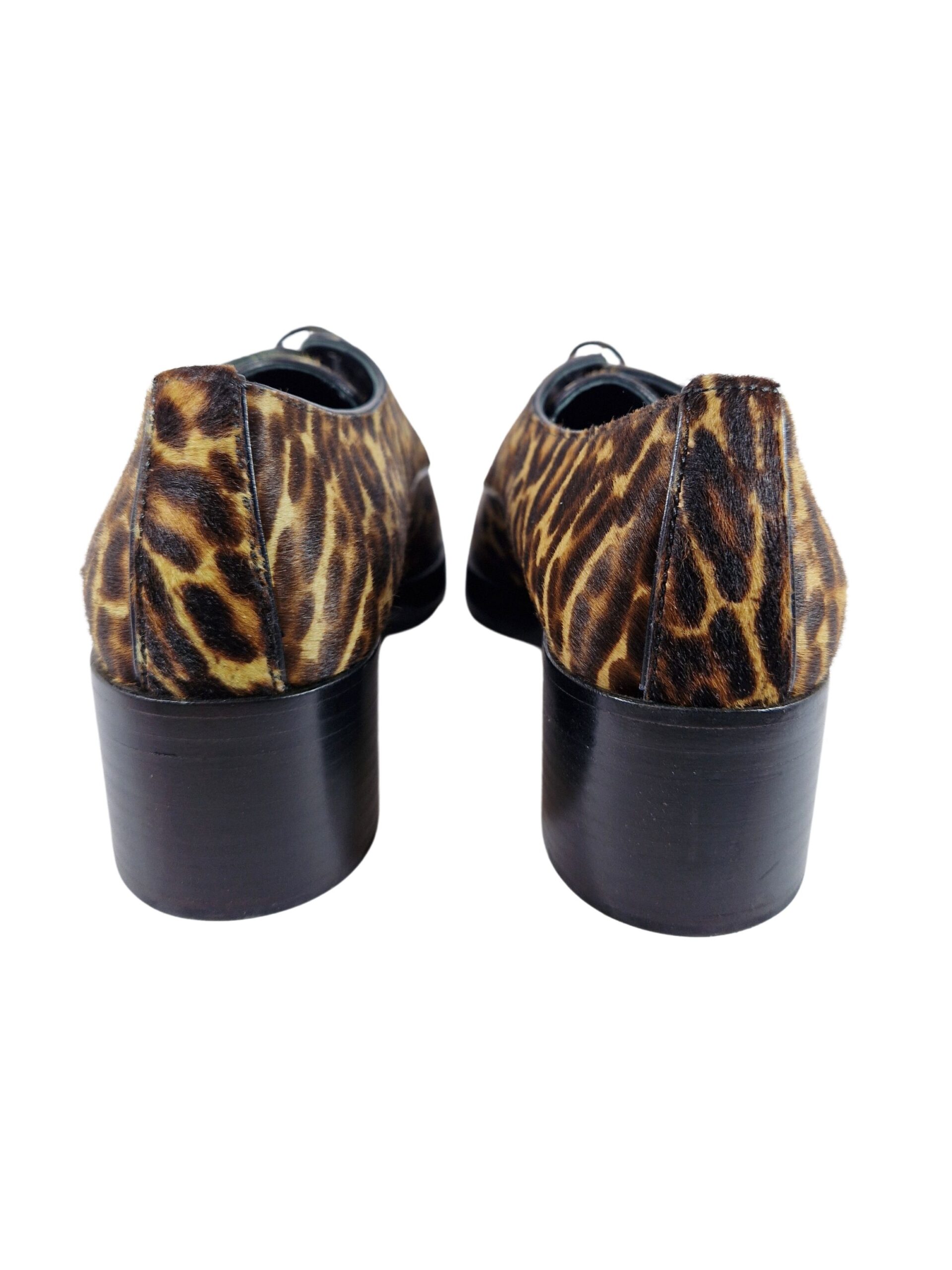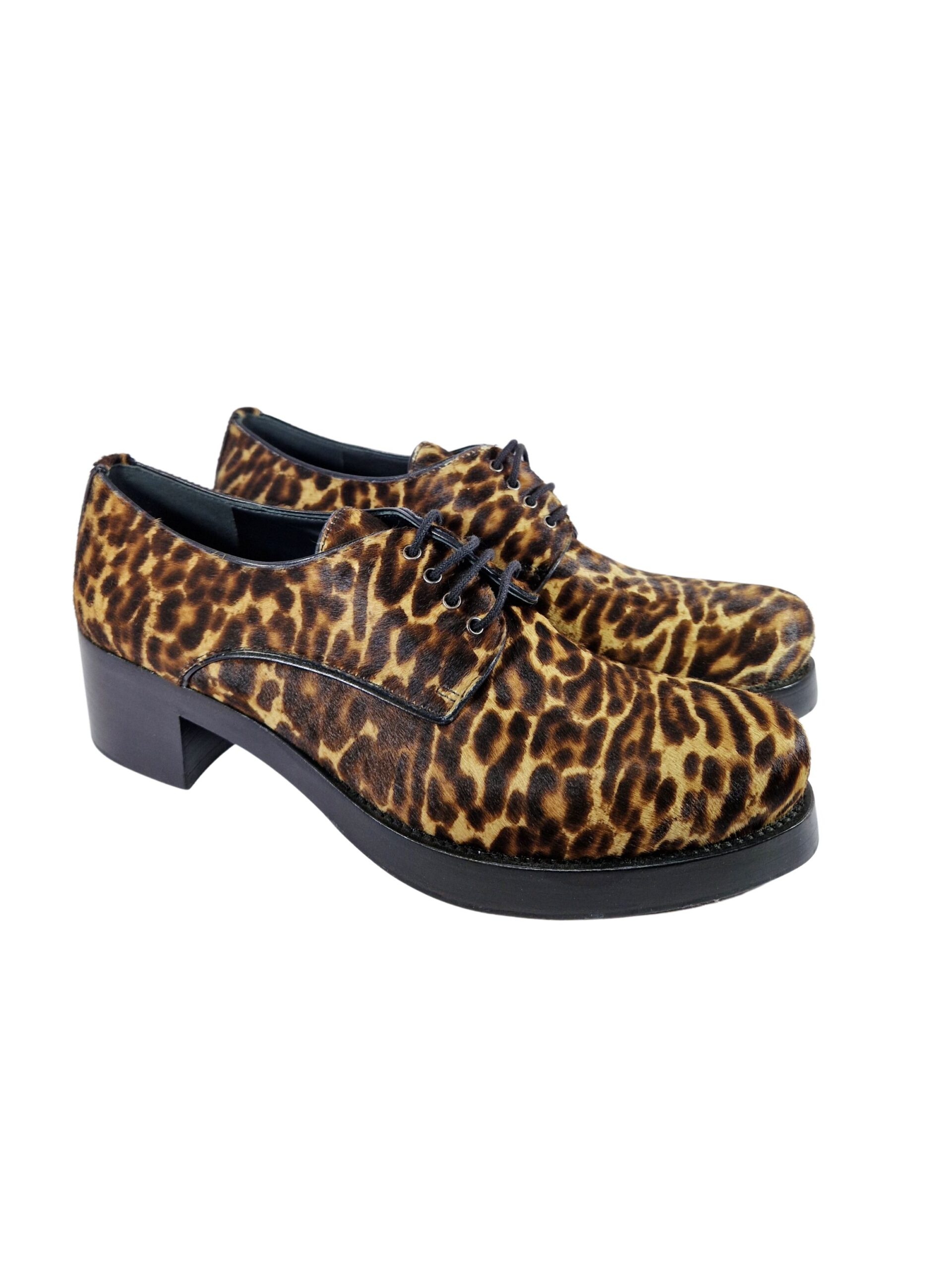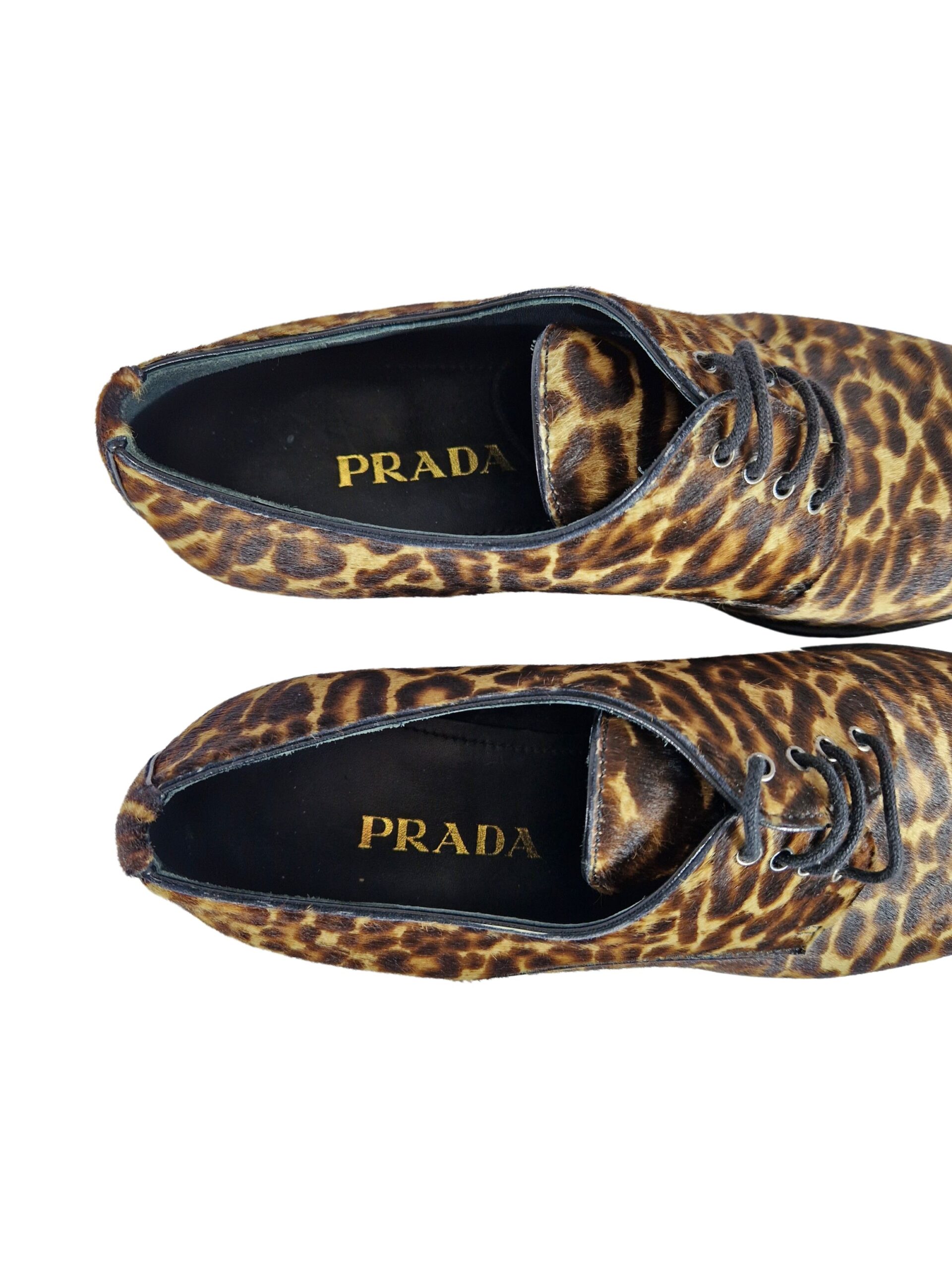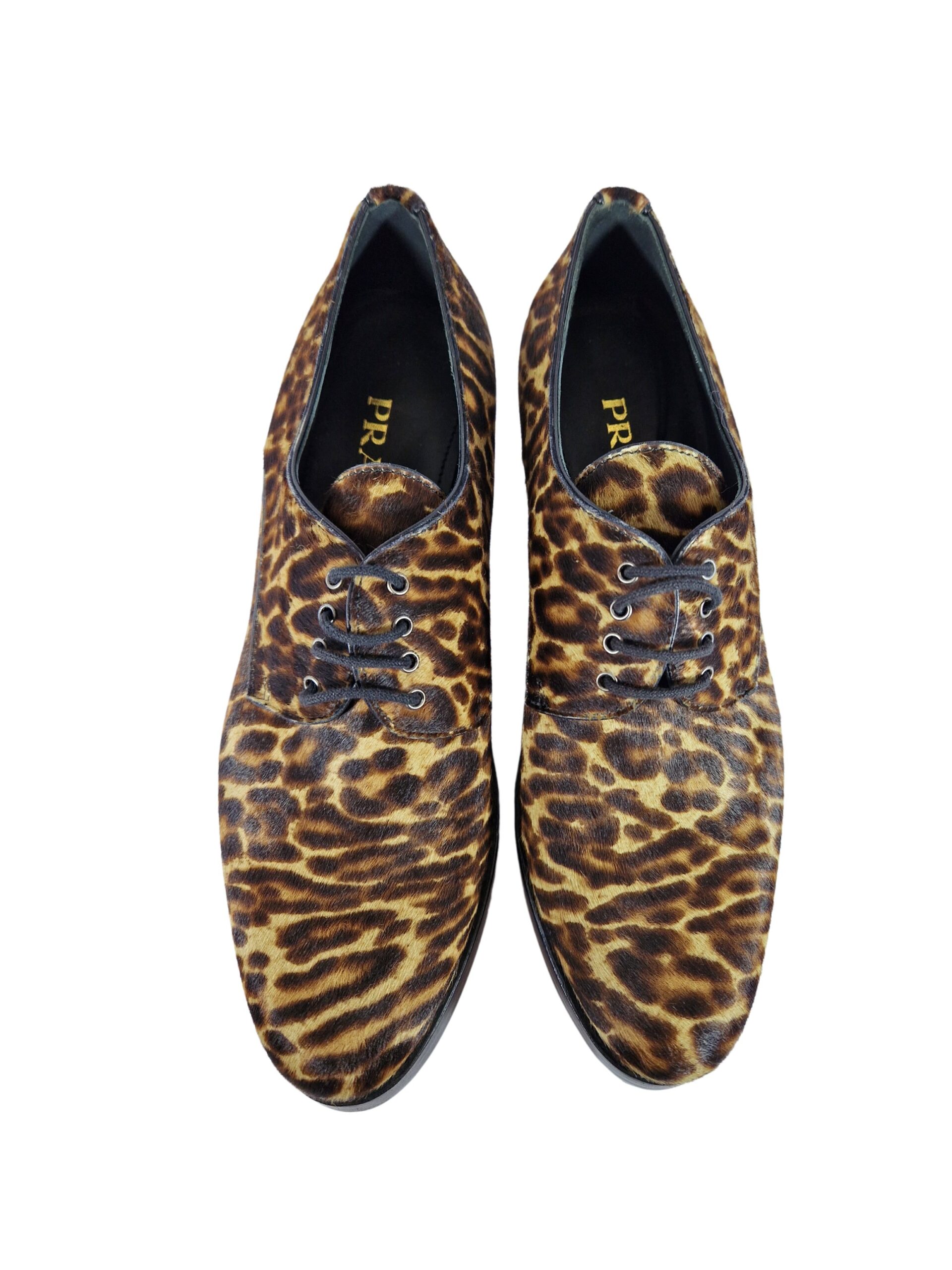 Scarpa allacciata by Prada. Calzature realizzate in vero cavallino con suola in cuoio. Comodo tacco di 4 cm.