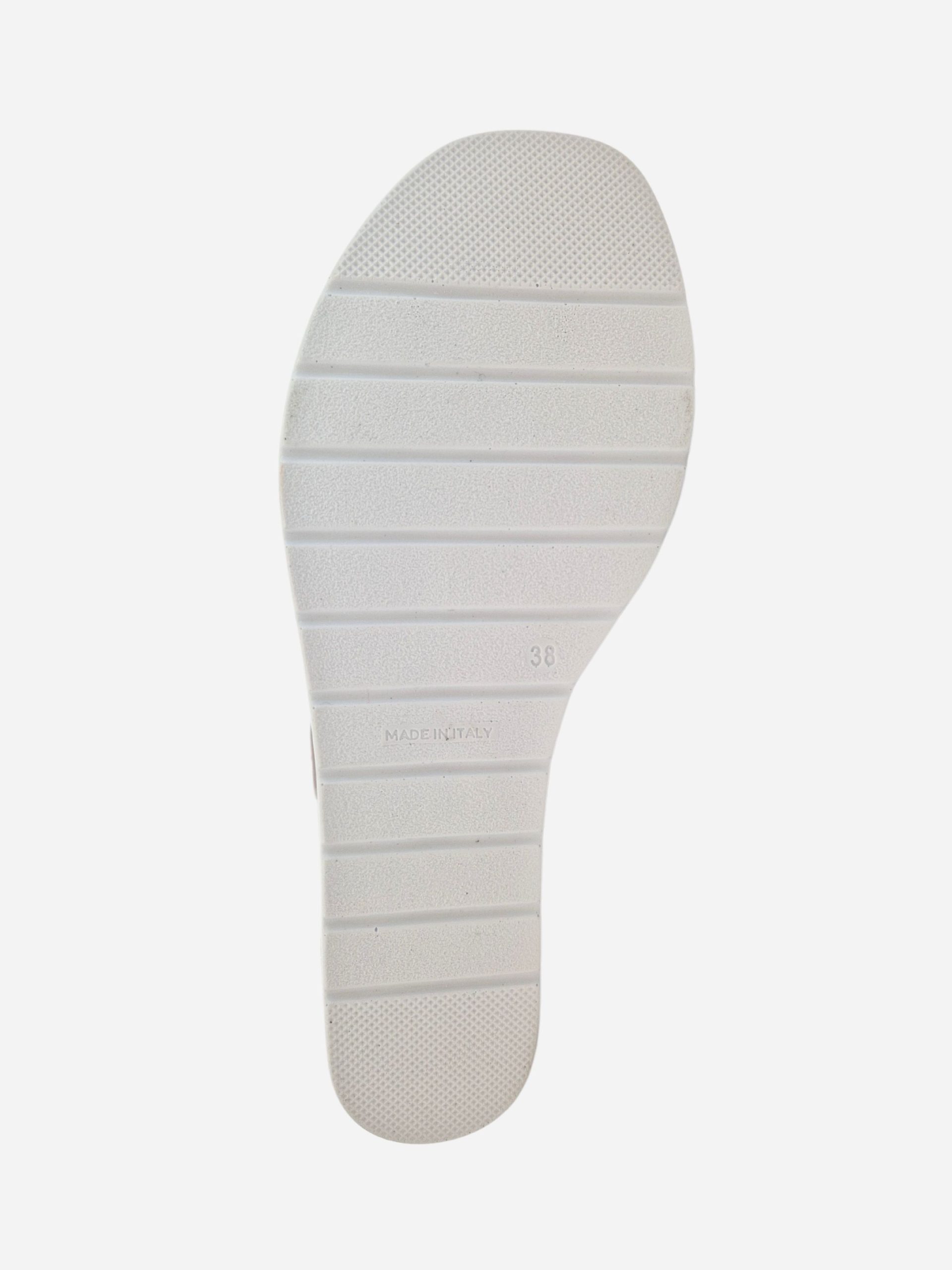 Sandali con zeppa by Repo. Scarpe realizzate in vera pelle con suola in materiale sintetico. Chiusura con cinturino al tallone. Zeppa di 8 cm decorata con righe bianche a contrasto.