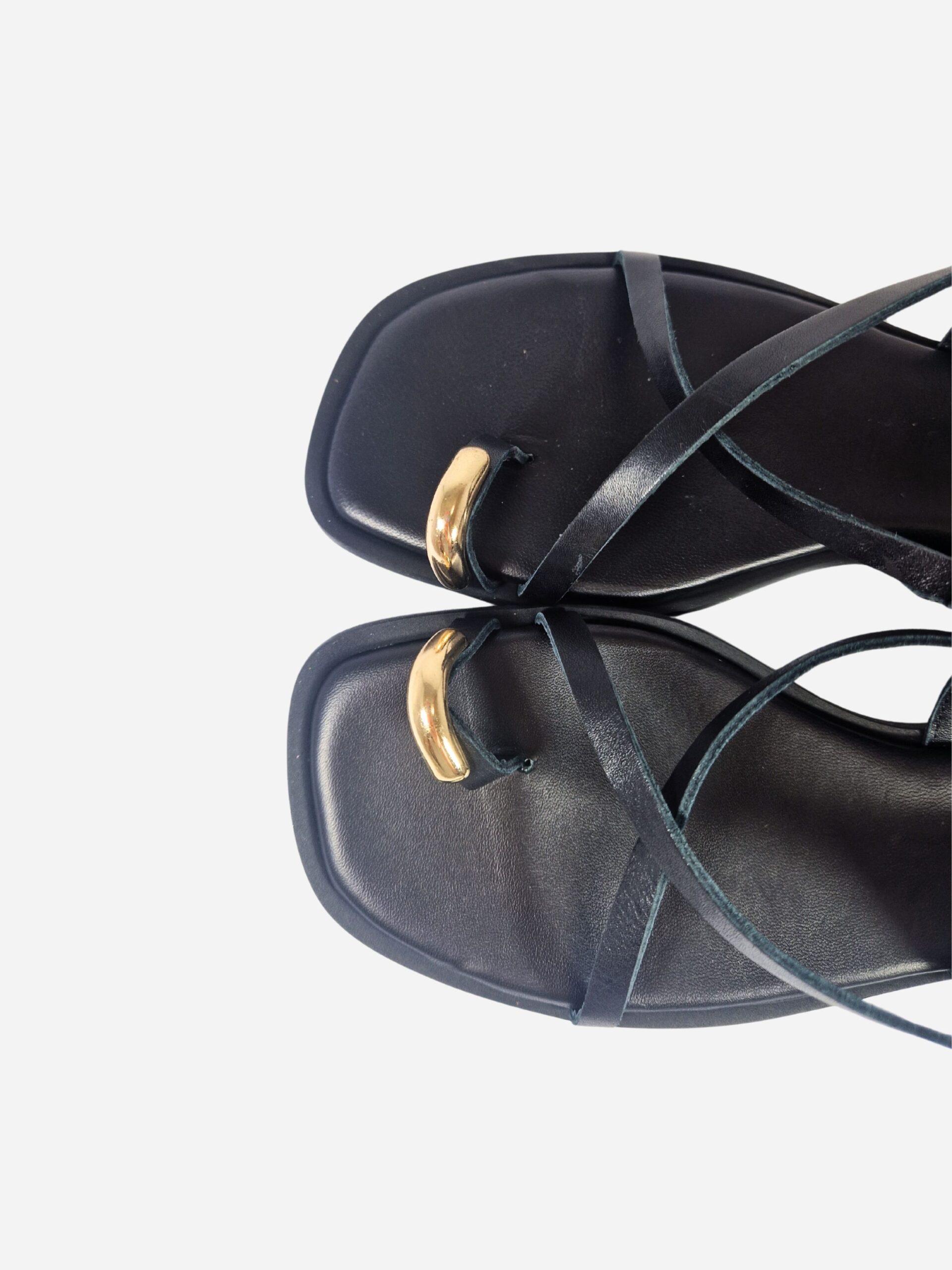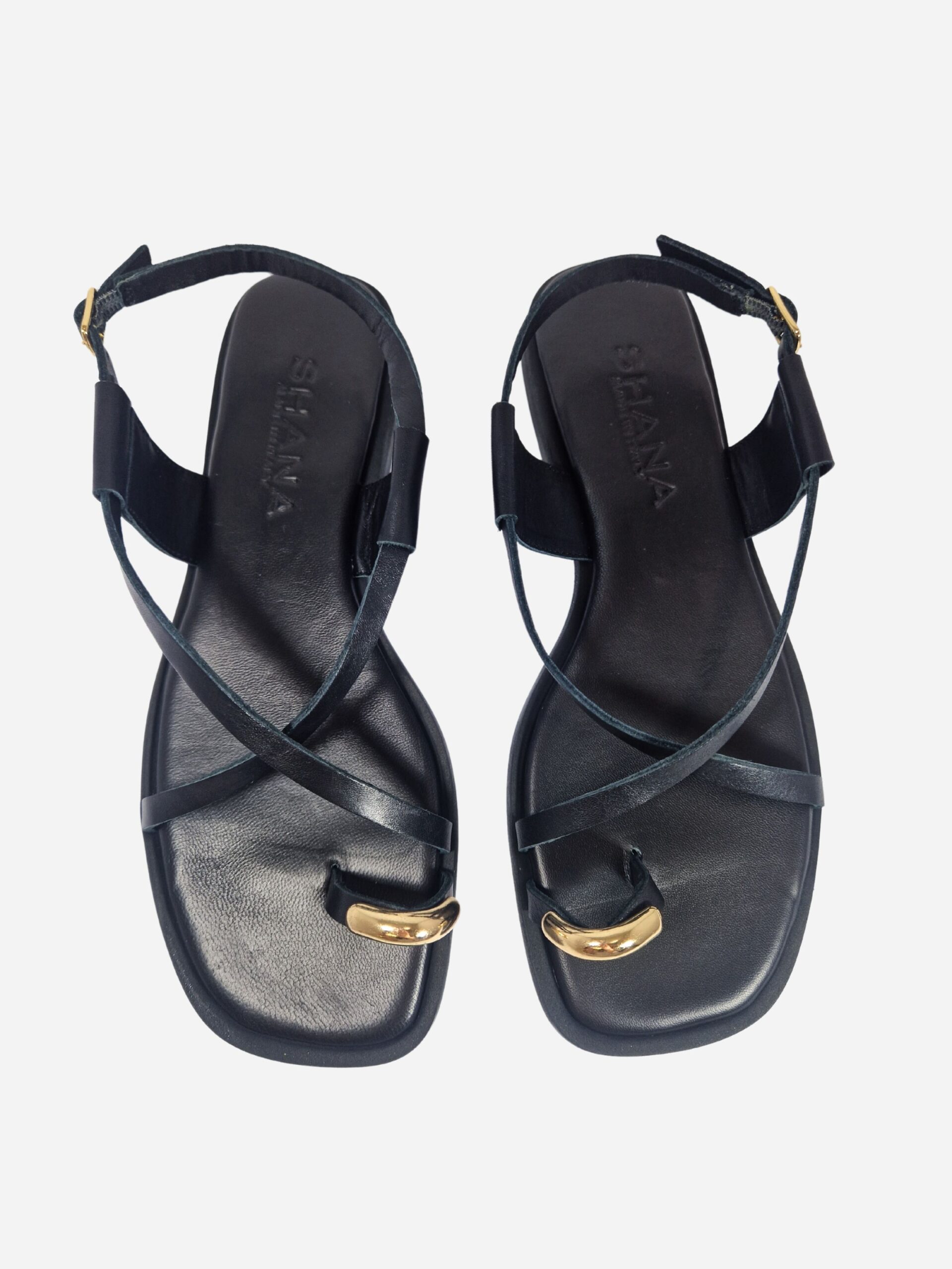 Sandali infradito flat by Shana. Calzature realizzate in vera pelle con morbido fondo in pelle e suola in materiale sintetico. Sandali arricchiti da un anello dorato al dito. Chiusura con cinturino.