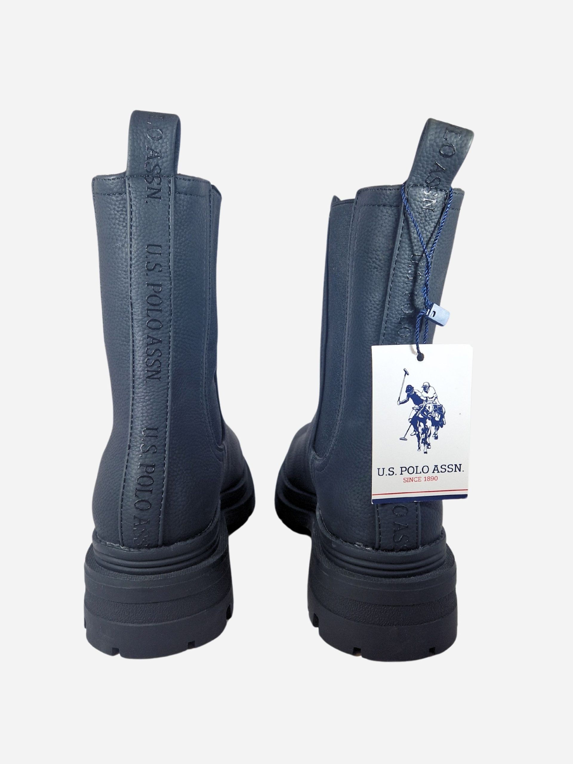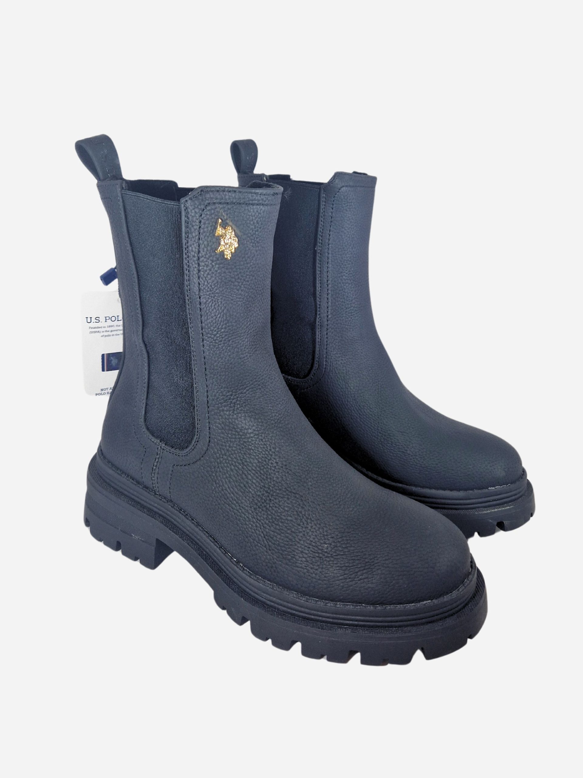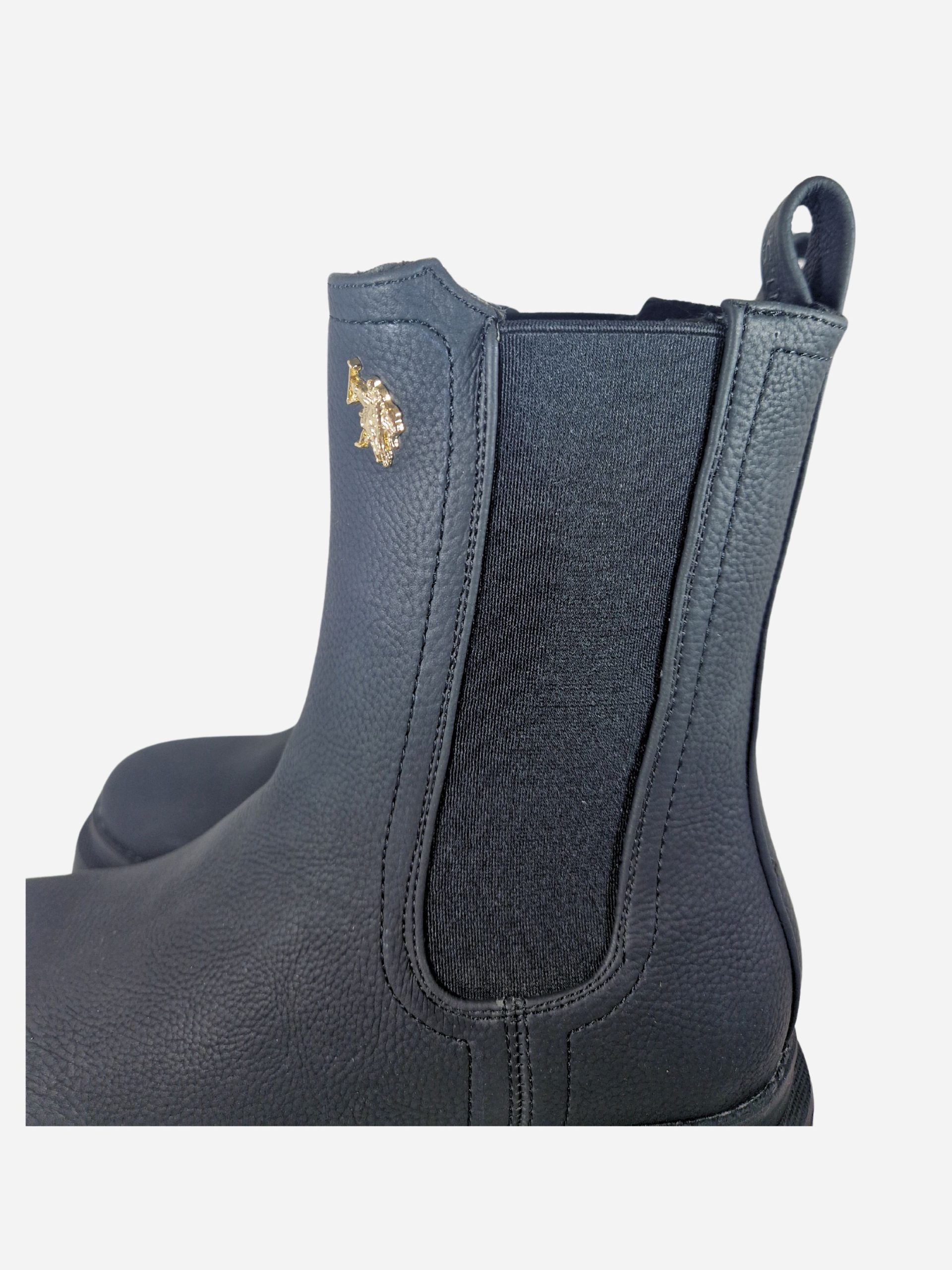 Stivaletto stile beatles ALICYA001 by U.S. Polo Assn. nella variante nera. Scarpe realizzate in similpelle con fasce elastiche laterali. Interno in morbido pelo. Logo dorato applicato sulla parte superiore. Suola in materiale sintetico di prima qualità.