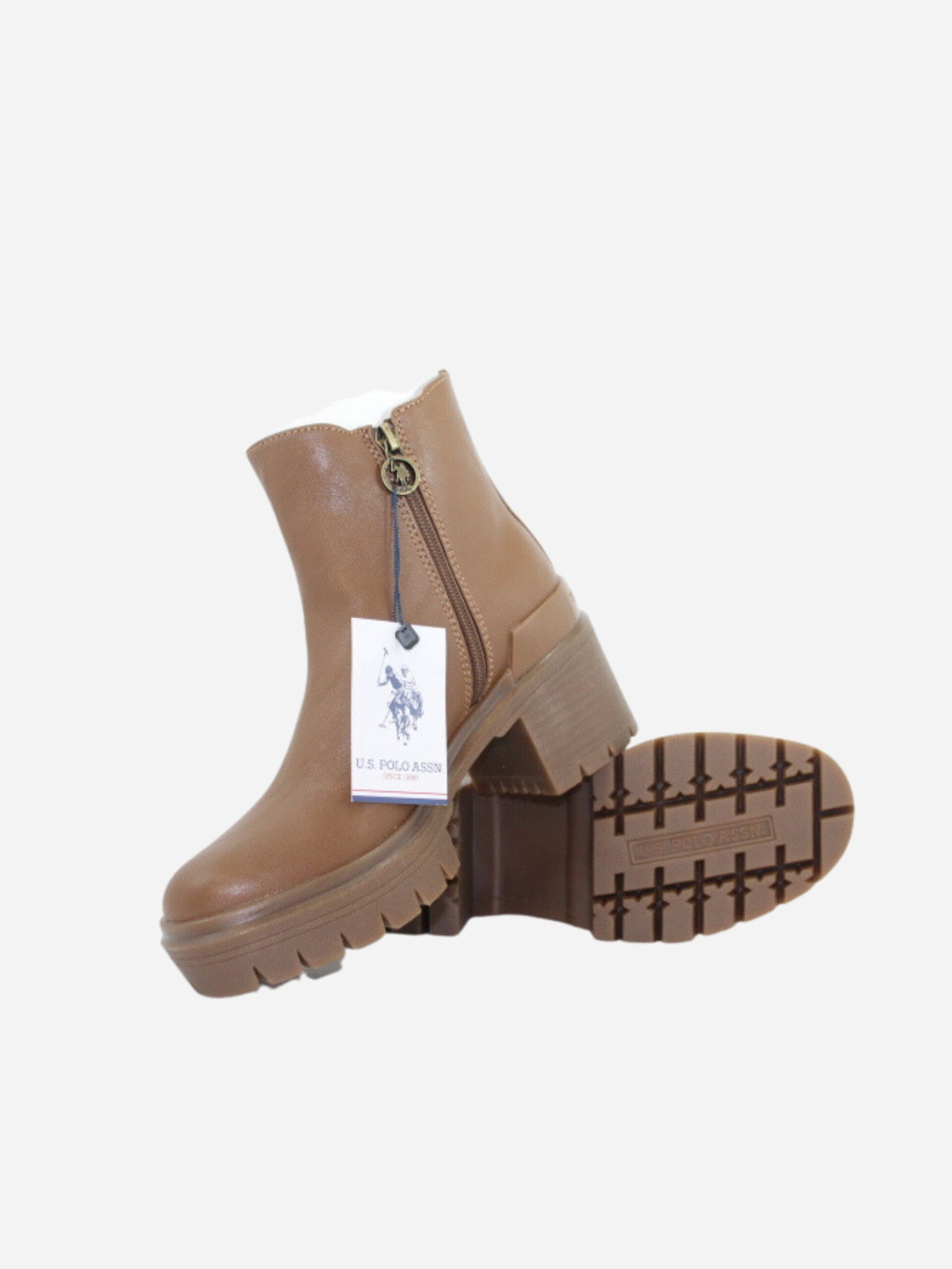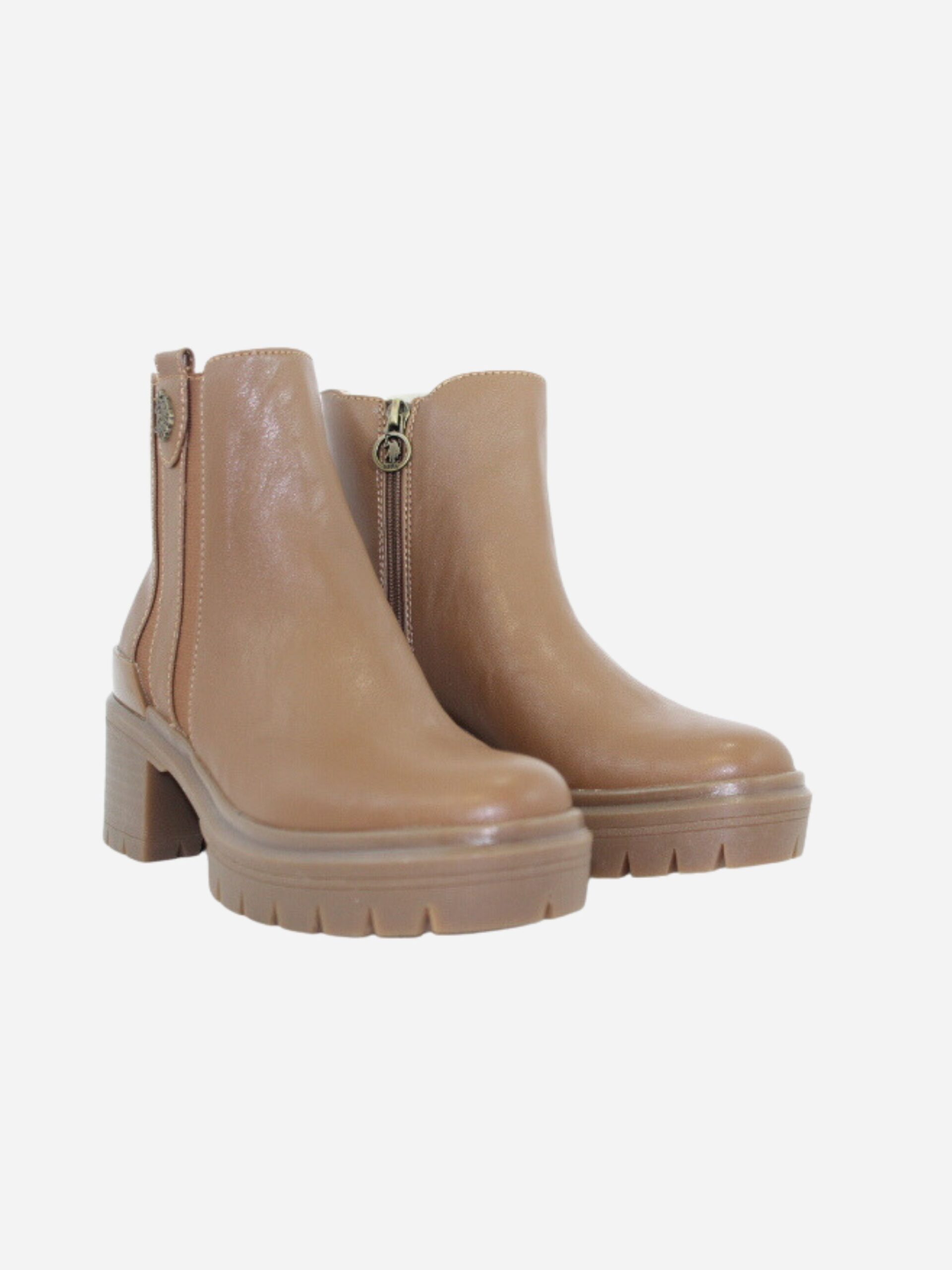 Beatles HALEY by U.S. Polo Assn. nella variante cuoio. Scarpe realizzate in ecopelle di prima qualità e tessuto. Chiusura con cerniera laterale. Tacco largo di 6 cm. Dettaglio logo sopra al tallone. Suola track in gomma