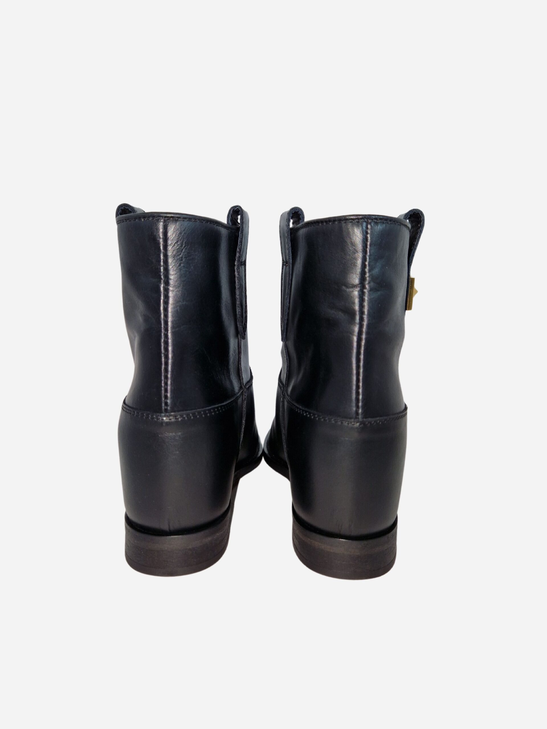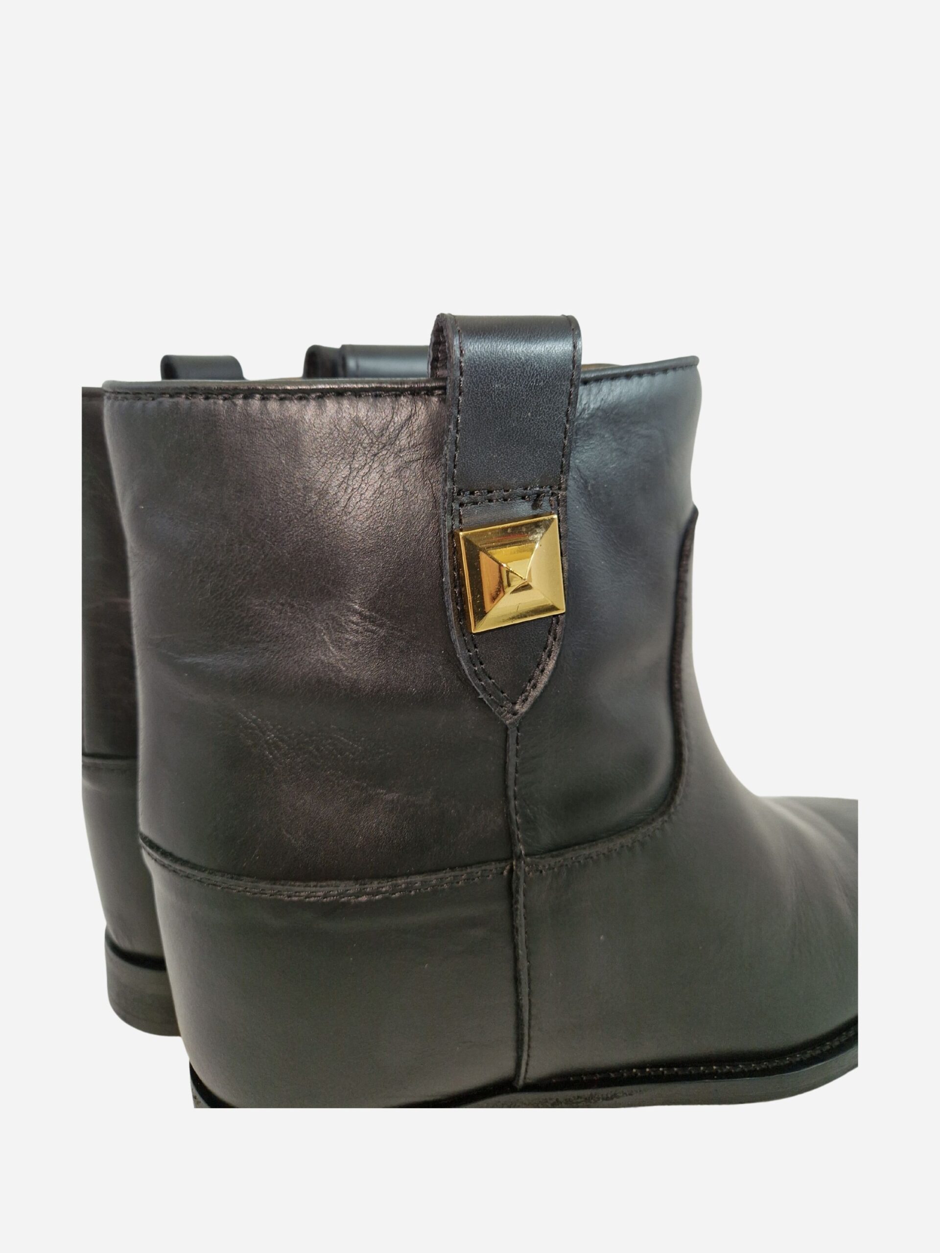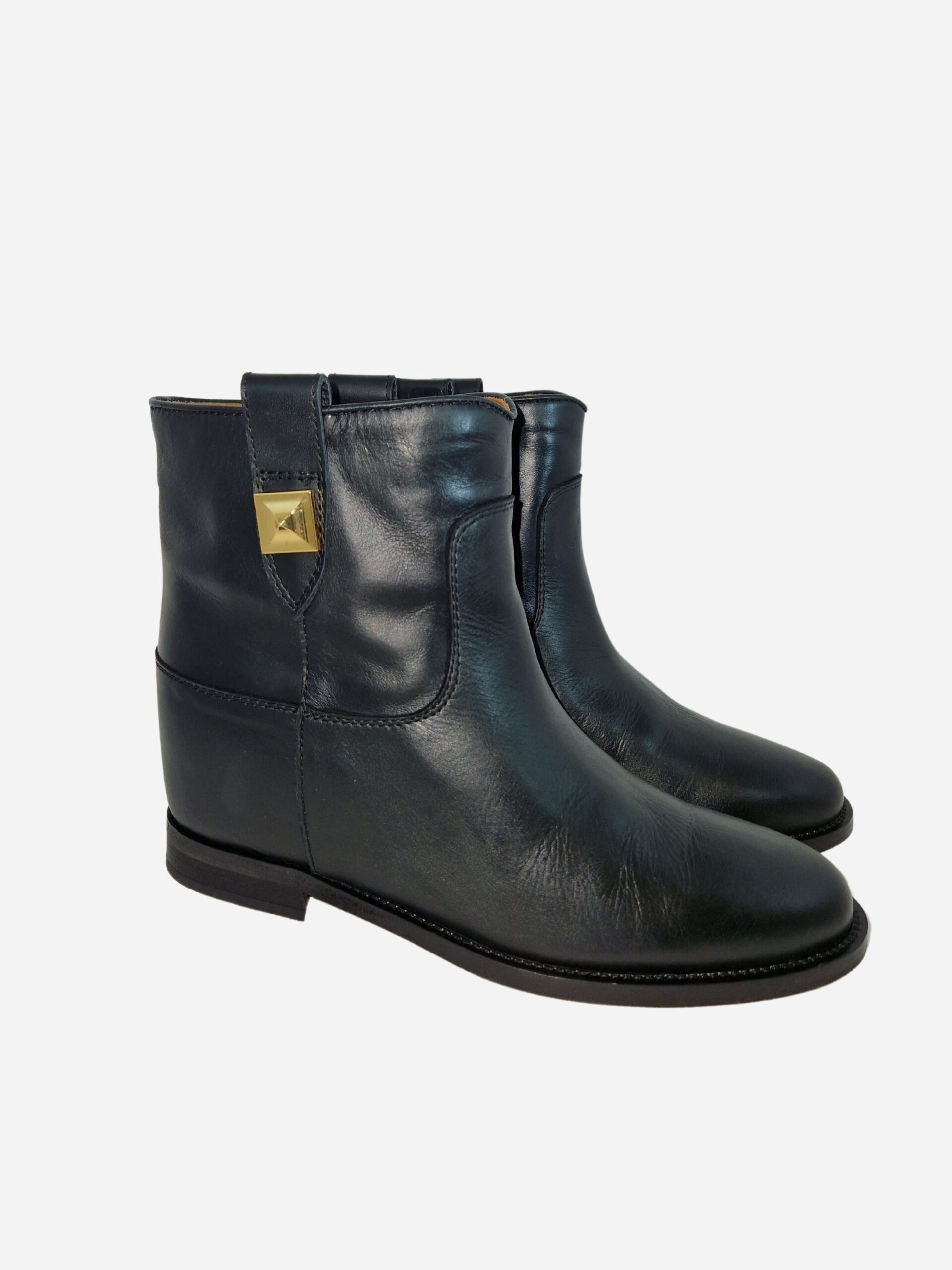 Tronchetto by Via Roma 15. Stivali realizzati in vera pelle con zeppa interna di 5 cm. Dettaglio borchia dorata nella parte superiore. Nella confezione è presente la dustbag.
