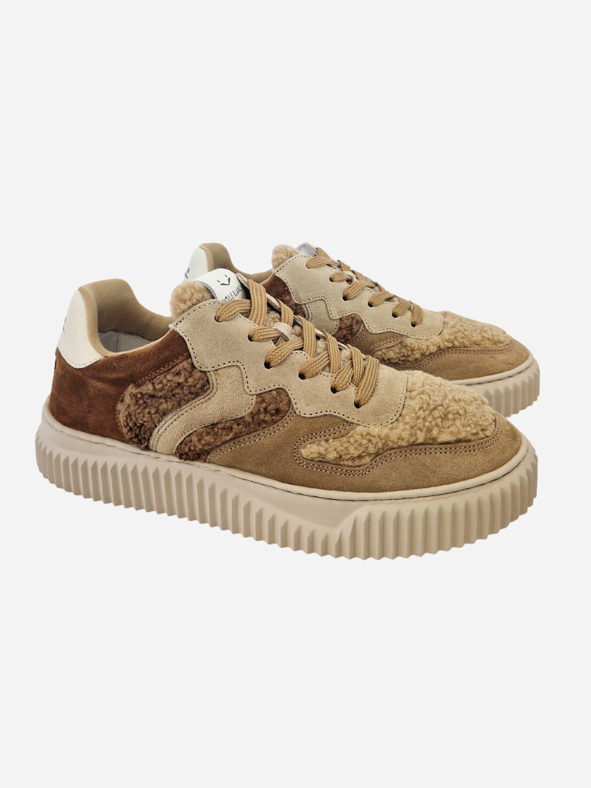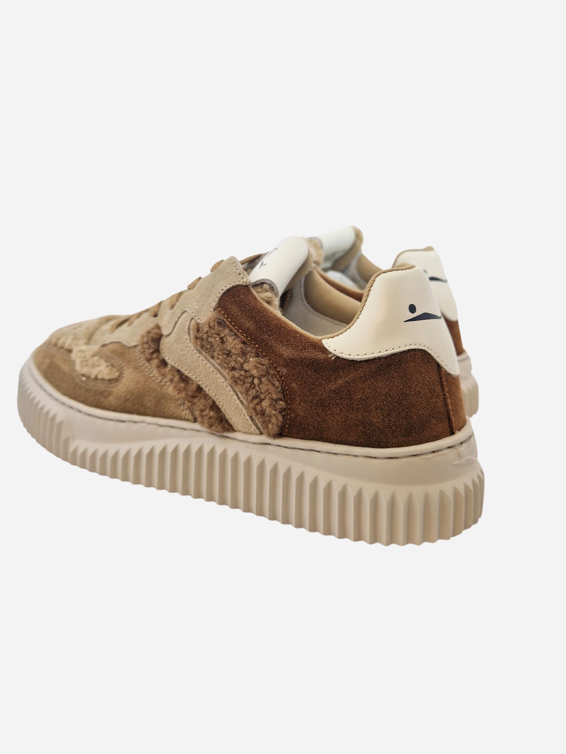 Sneakers LAURA by Voile Blanche. Scarpe realizzate in camoscio e morbida lana. Interno e soletta in pelle. Fondo in gomma. Chiusura con lacci.
