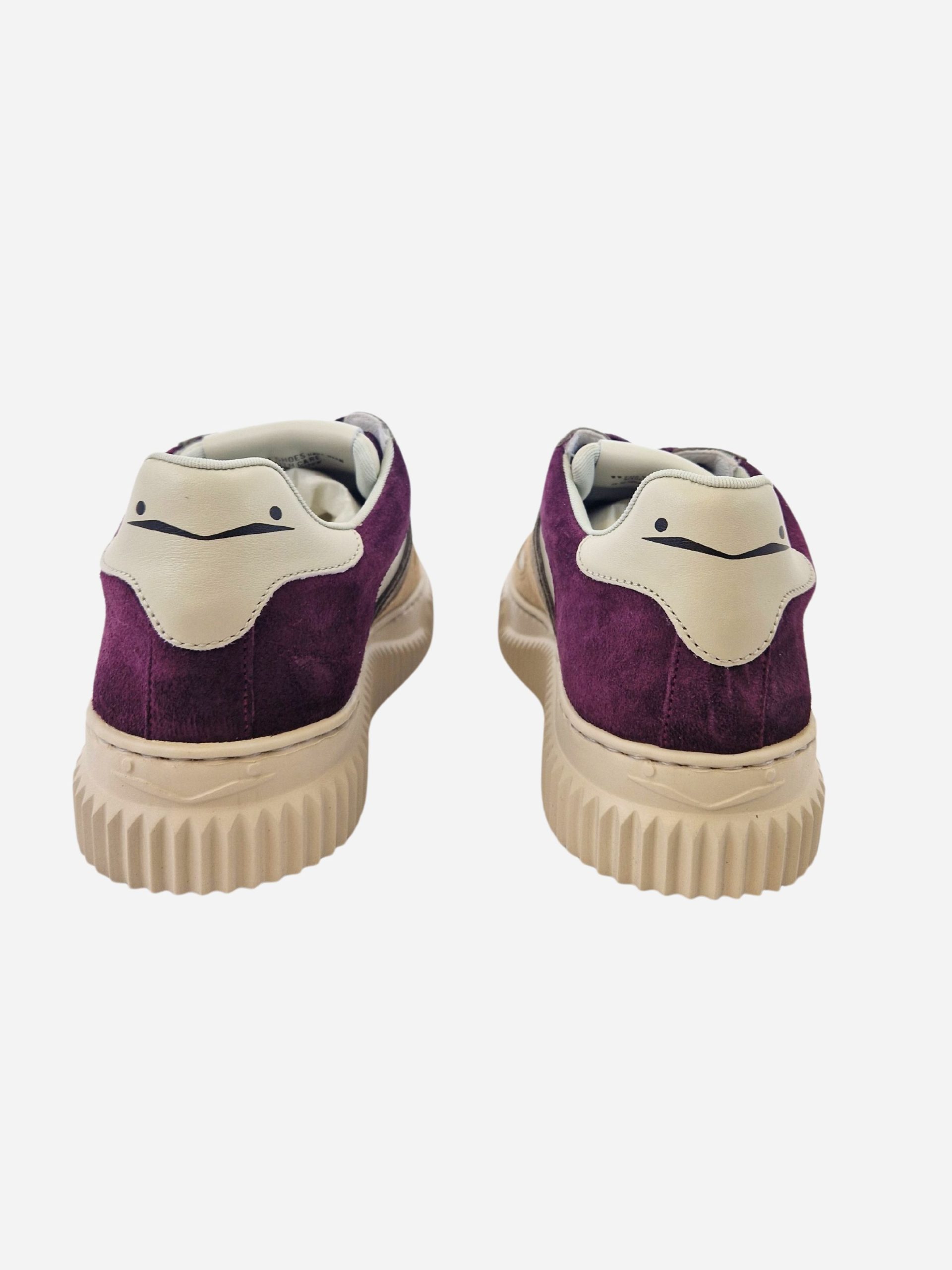 Sneakers by Voile Blanche. Scarpe realizzate in pelle con inserti in camoscio colorato viola, beige e grigio. Suola in gomma. Chiusura con lacci.