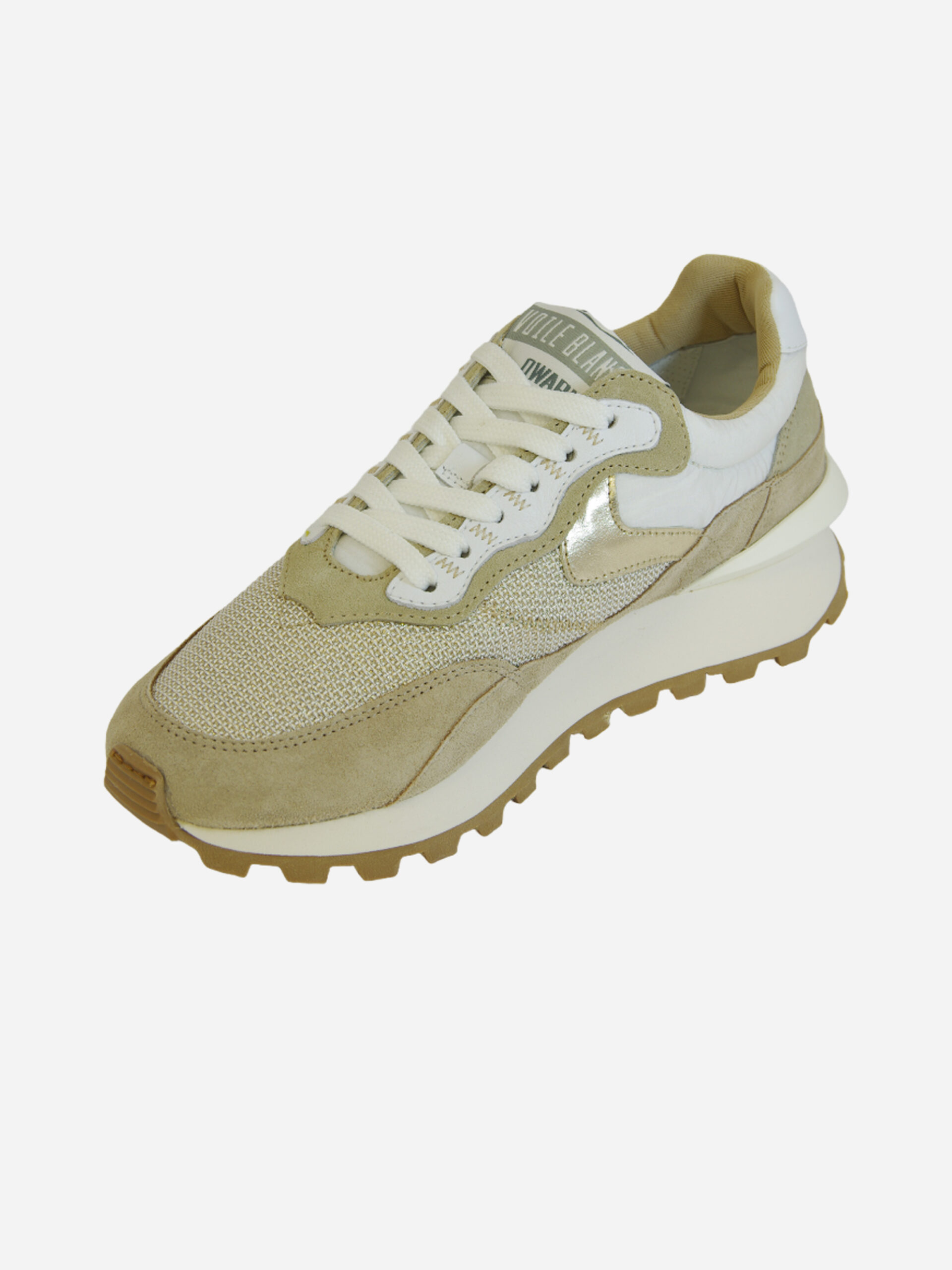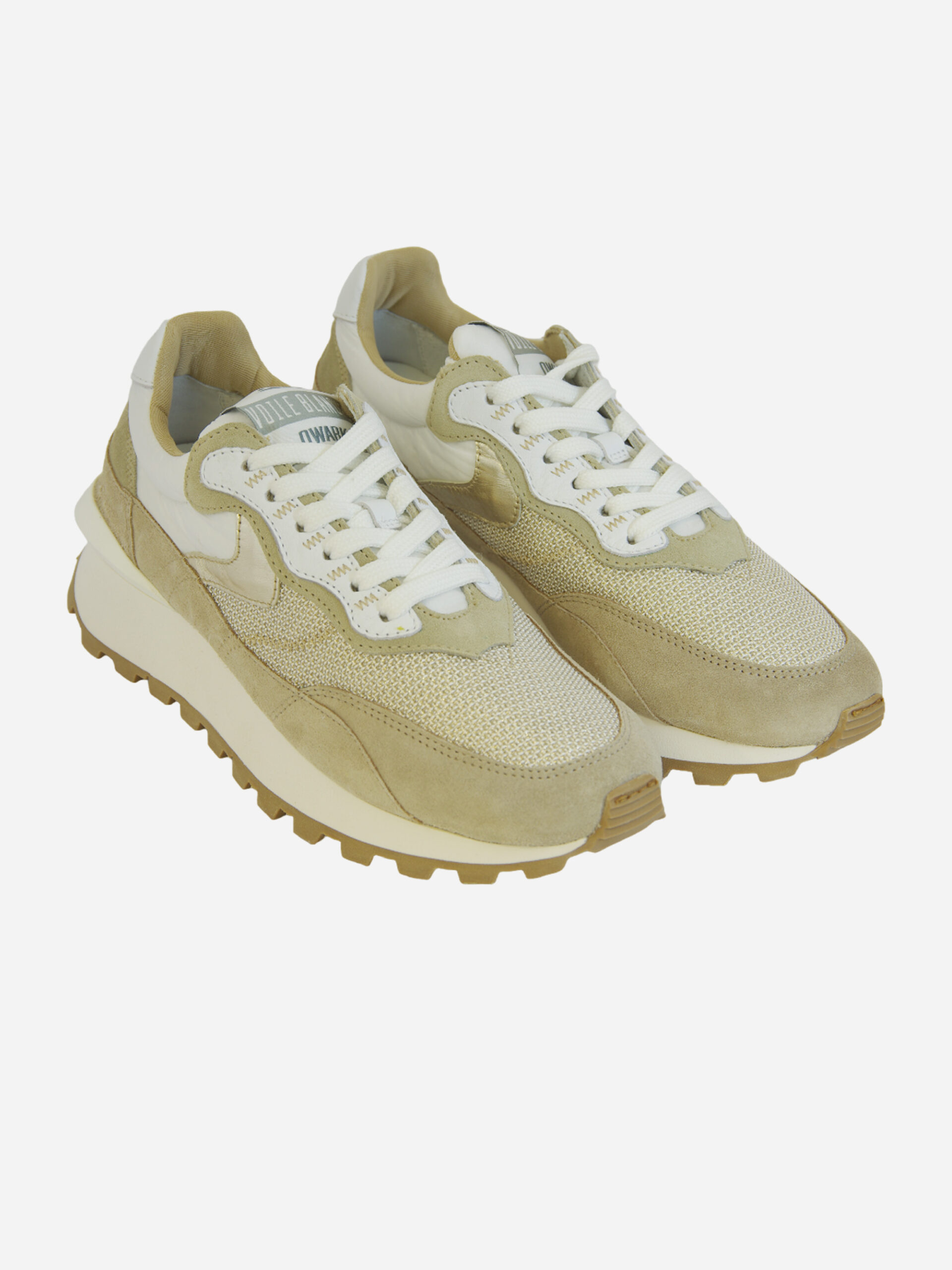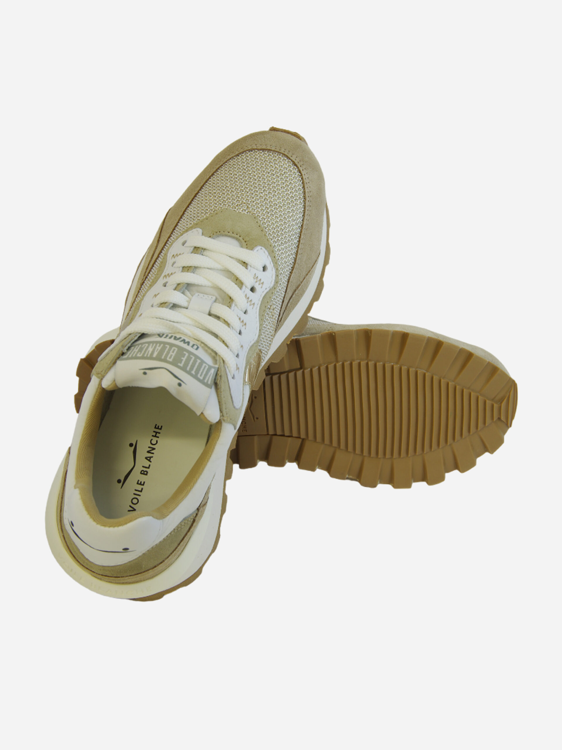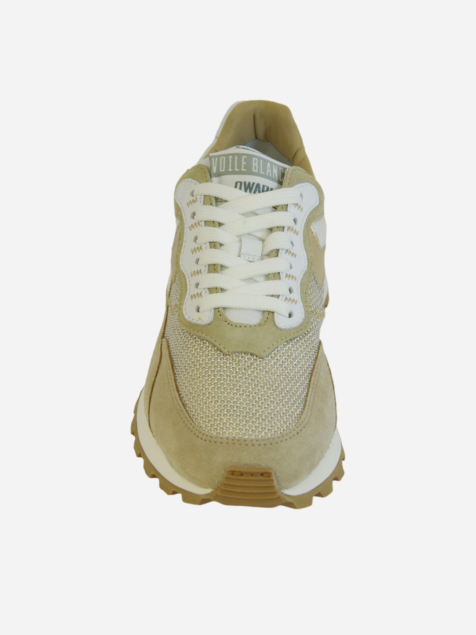 Sneaker di ispirazione running Qwark Hype di Voile Blanche. Tomaia in pelle di vitello e inserto in mesh tecnico traspirante sulla punta. Il tocco dorato sullo slash aggiunge un’atmosfera glamour, enfatizzata dallo spoiler tridimensionale sotto il tallone. Suola in gomma con battistrada personalizzato.
