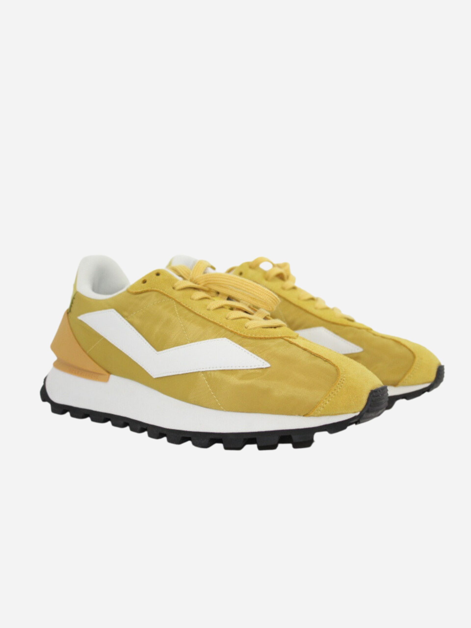 Sneakers QWARK nella variante gialla by Voile Blanche. Scarpe realizzate in tessuto tecnico di prima qualità con dettagli ton sur ton in suede. Suola alta in gomma. Chiusura con lacci.