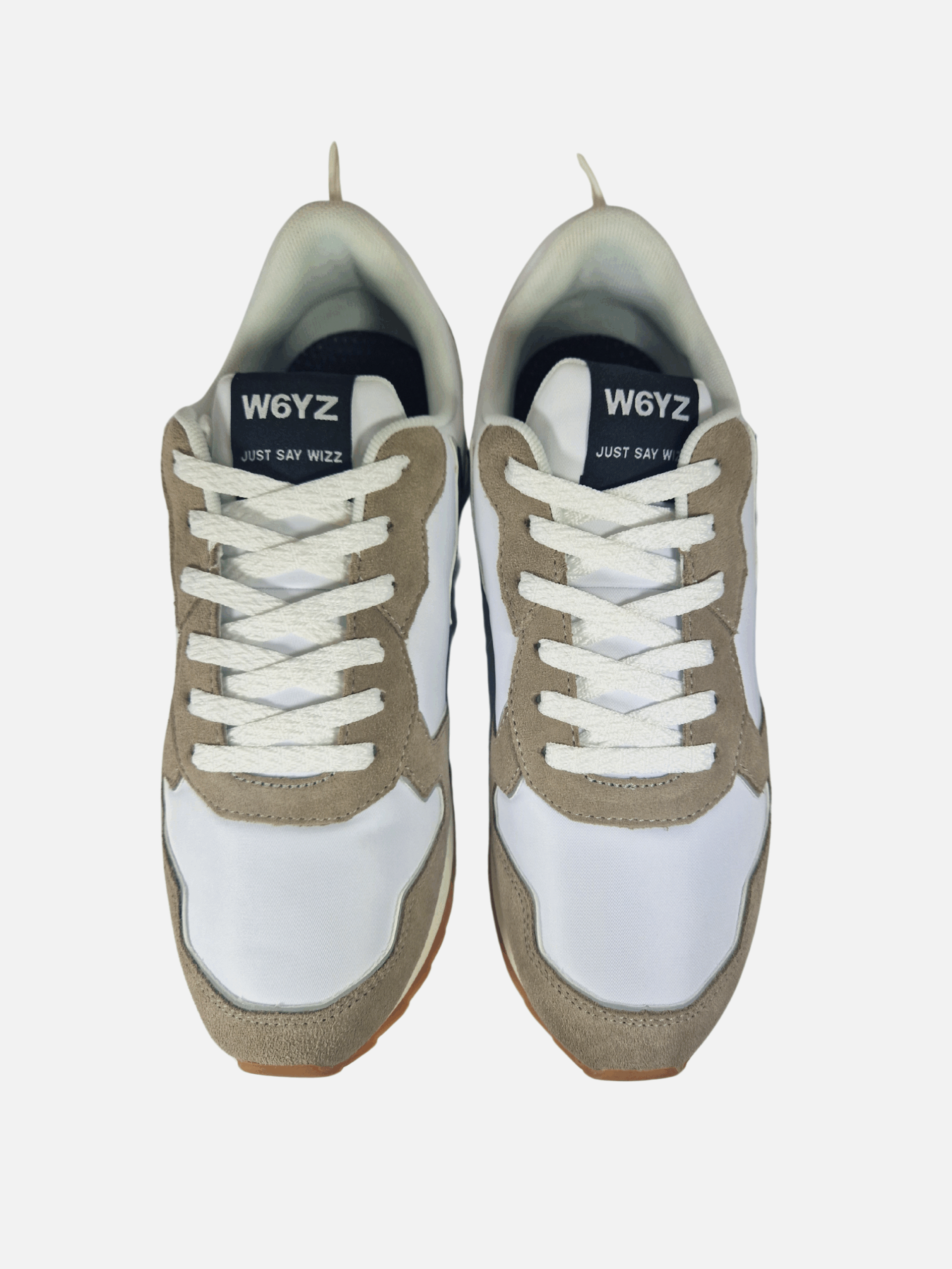 Sneakers JET-M by W6YZ Wizz nella variante bianco, beige e nero. Scarpe realizzate in tessuto tecnico, con inserti a contrasto in camoscio e pelle. Suola in gomma Chiusura con lacci.