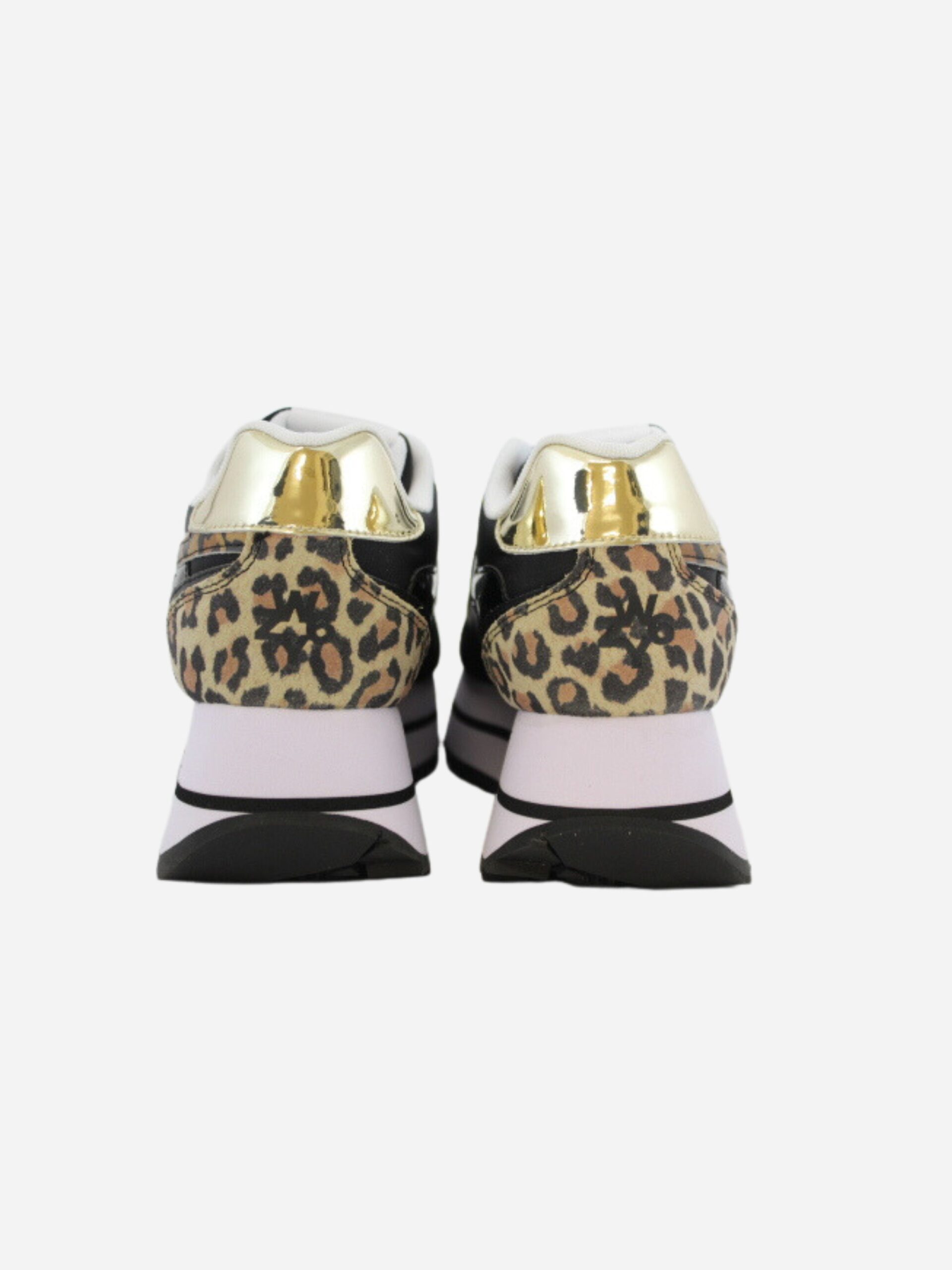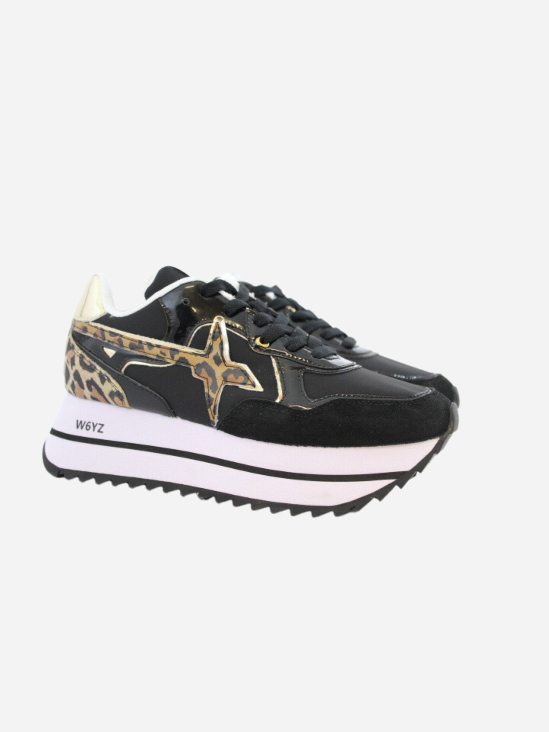Sneakers da donna by W6YZ. Scarpe realizzate in tessuto tecnico con inserti in suede e fantasia animalier. Fondo platform in gomma ultra-leggera.
