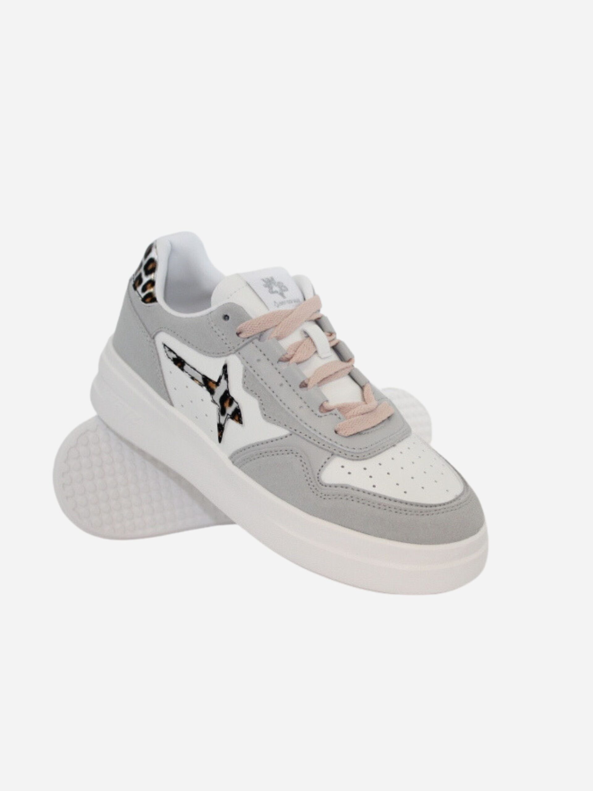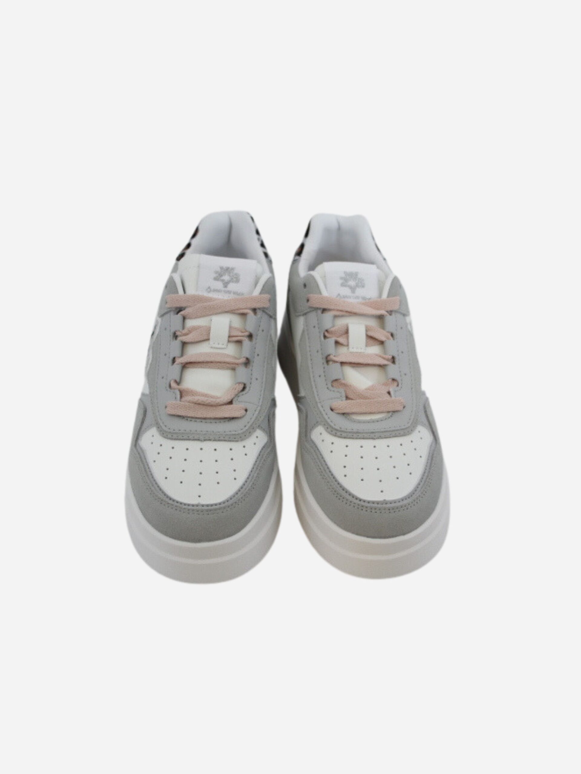 Sneakers da donna by W6YZ. Scarpe realizzate in similpelle con inserti in suede e in fantasia animalier e suola in gomma ultra-leggera. Chiusura con lacci rosa.