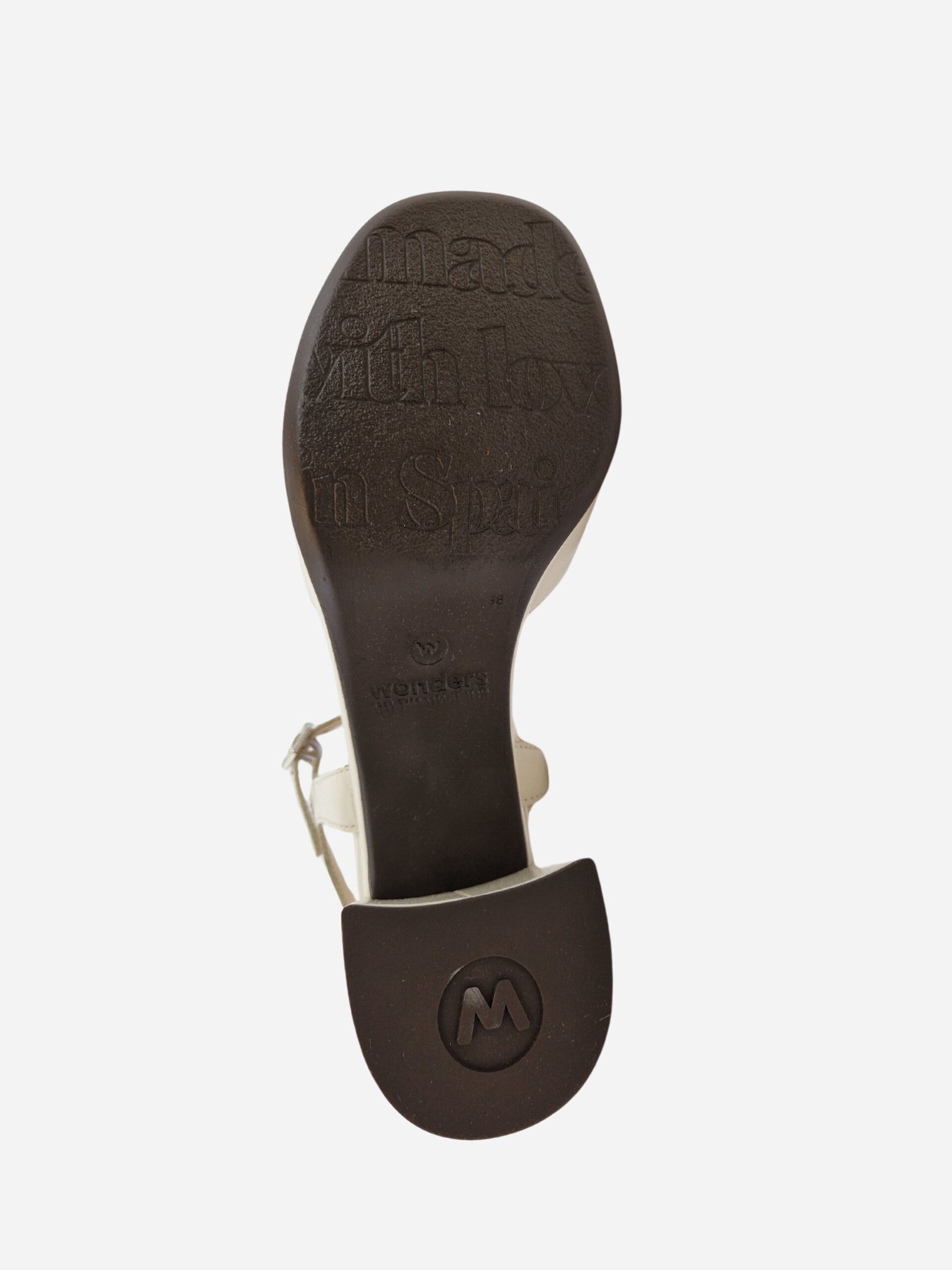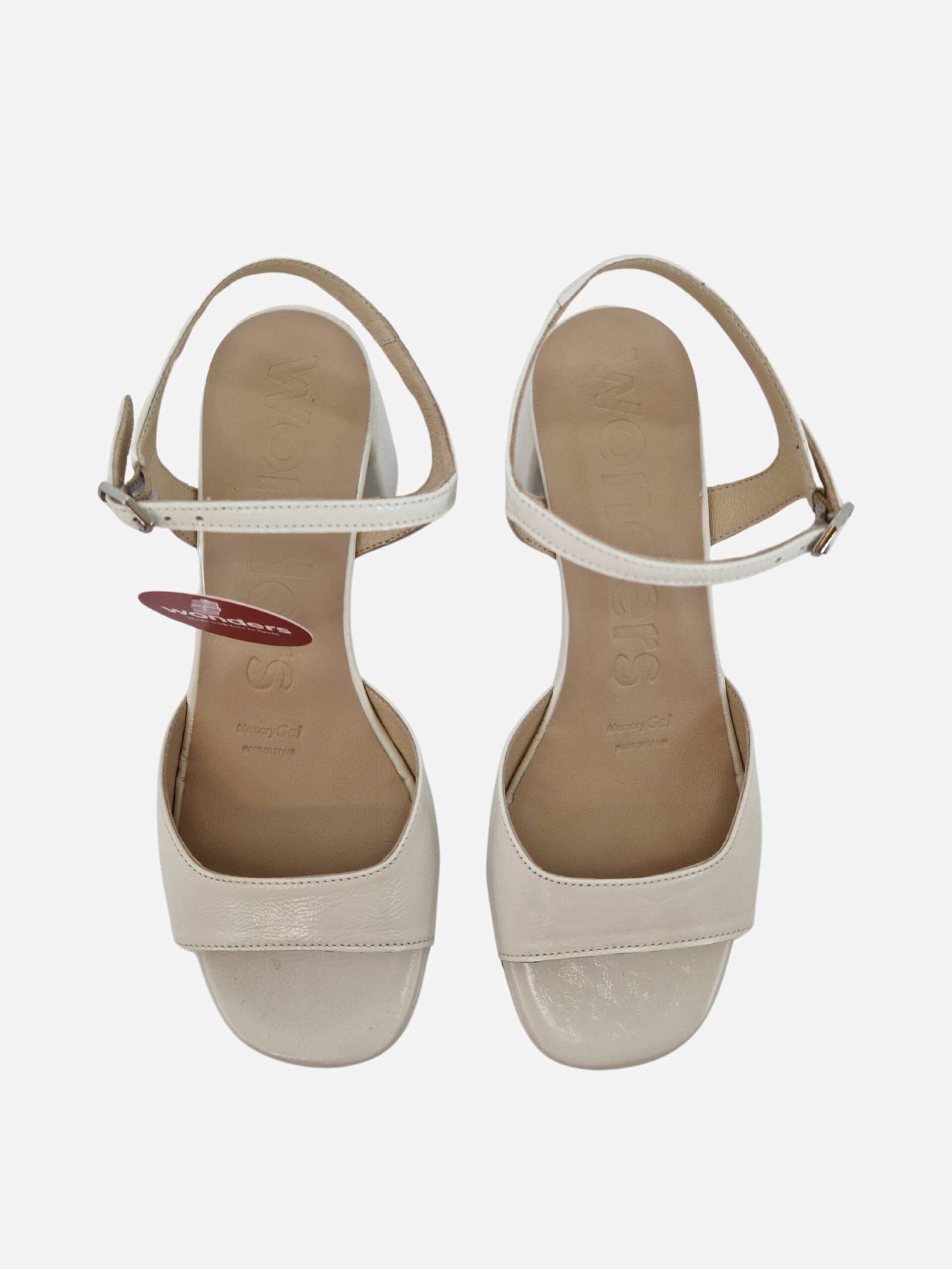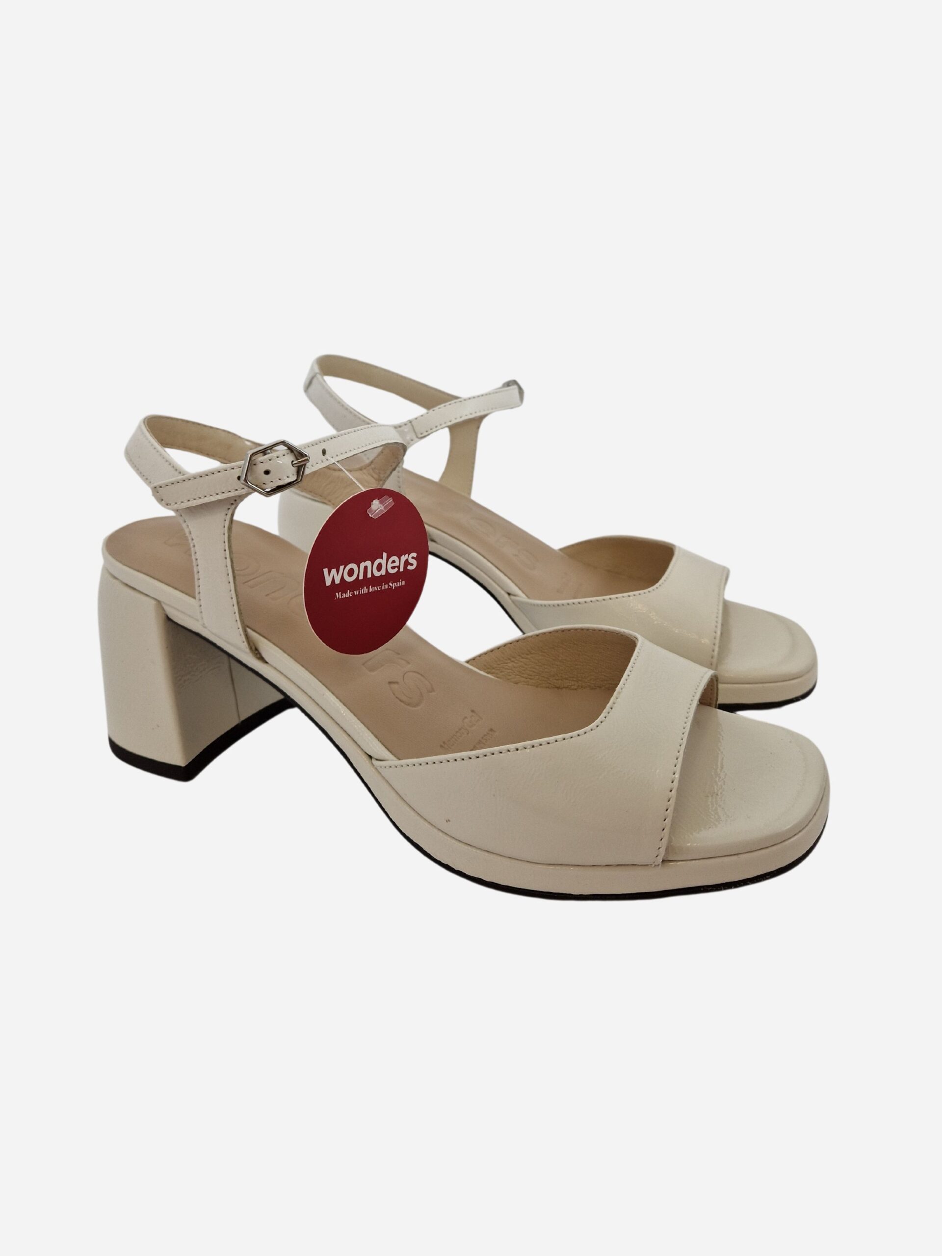 Sandali by Wonders. Scarpe realizzate in vera pelle con morbido fondo in cuoio e suola in gomma. Comodo tacco largo di 9 cm. Chiusura con cinturino alla caviglia.
