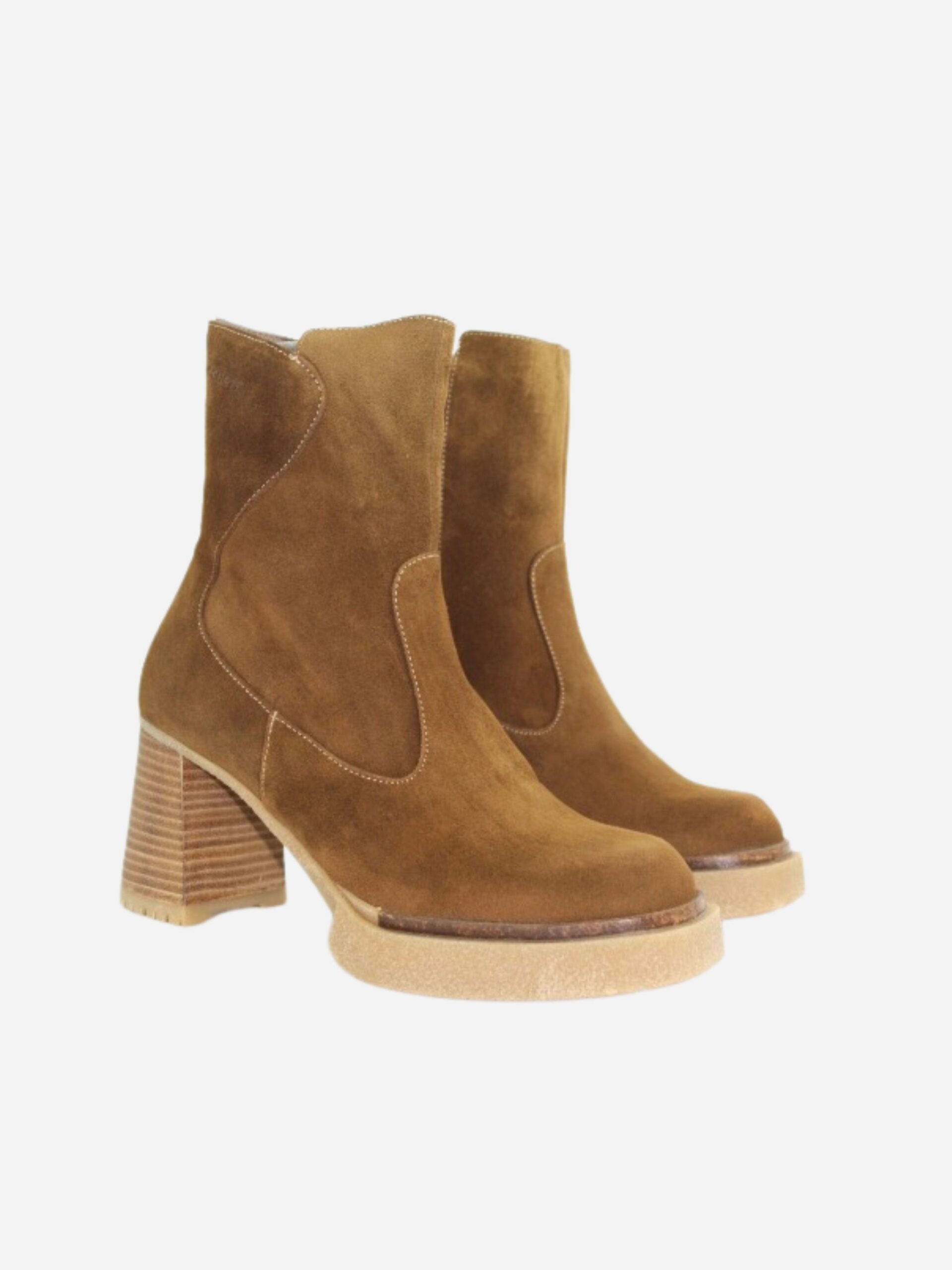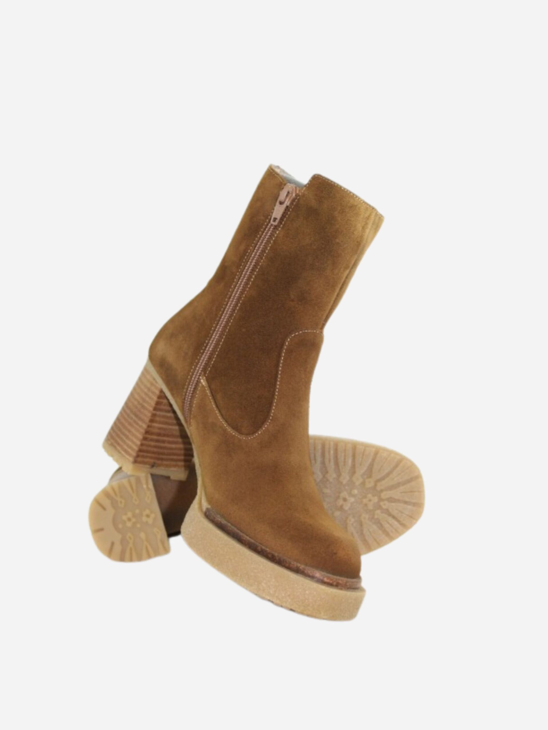 Tronchetto da donna by Wonders. Stivaletto realizzato in vera pelle scamosciata. Tacco largo di 8 cm. Chiusura con cerniera laterale.